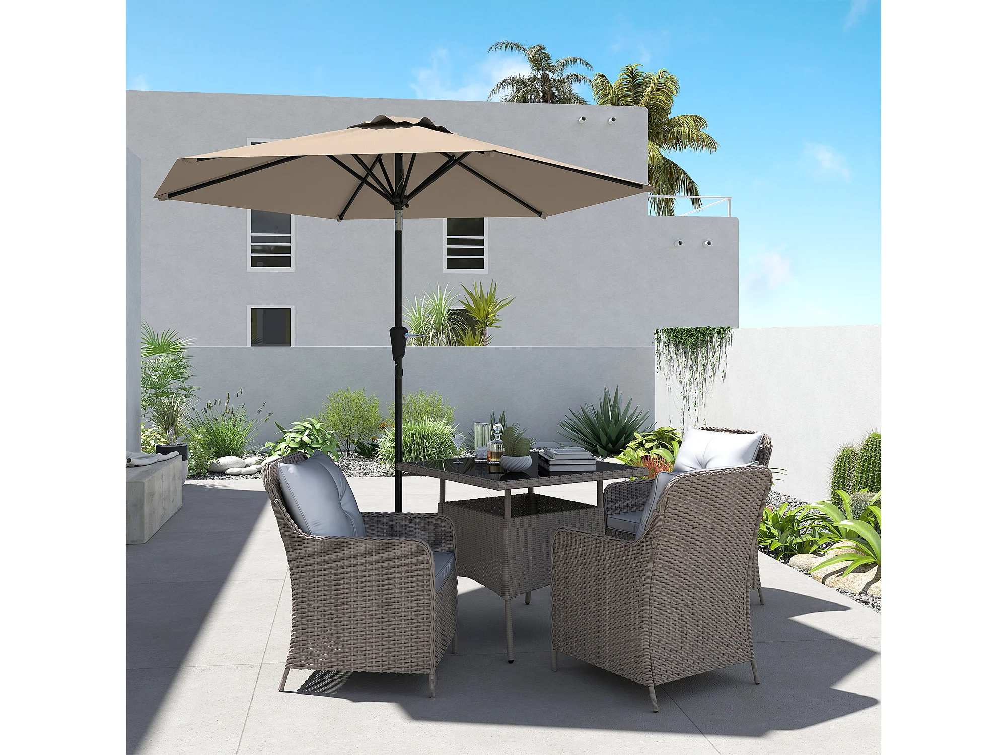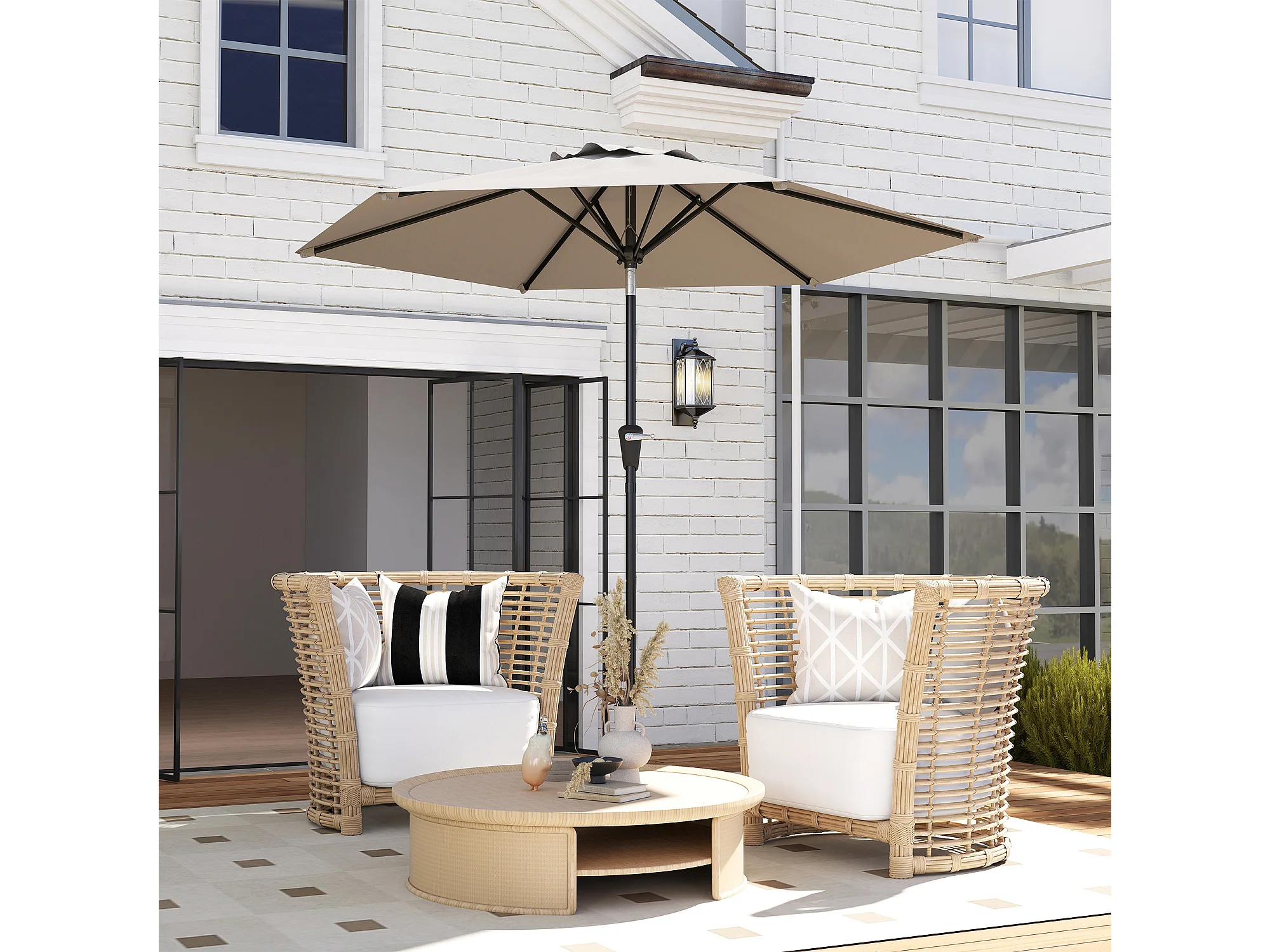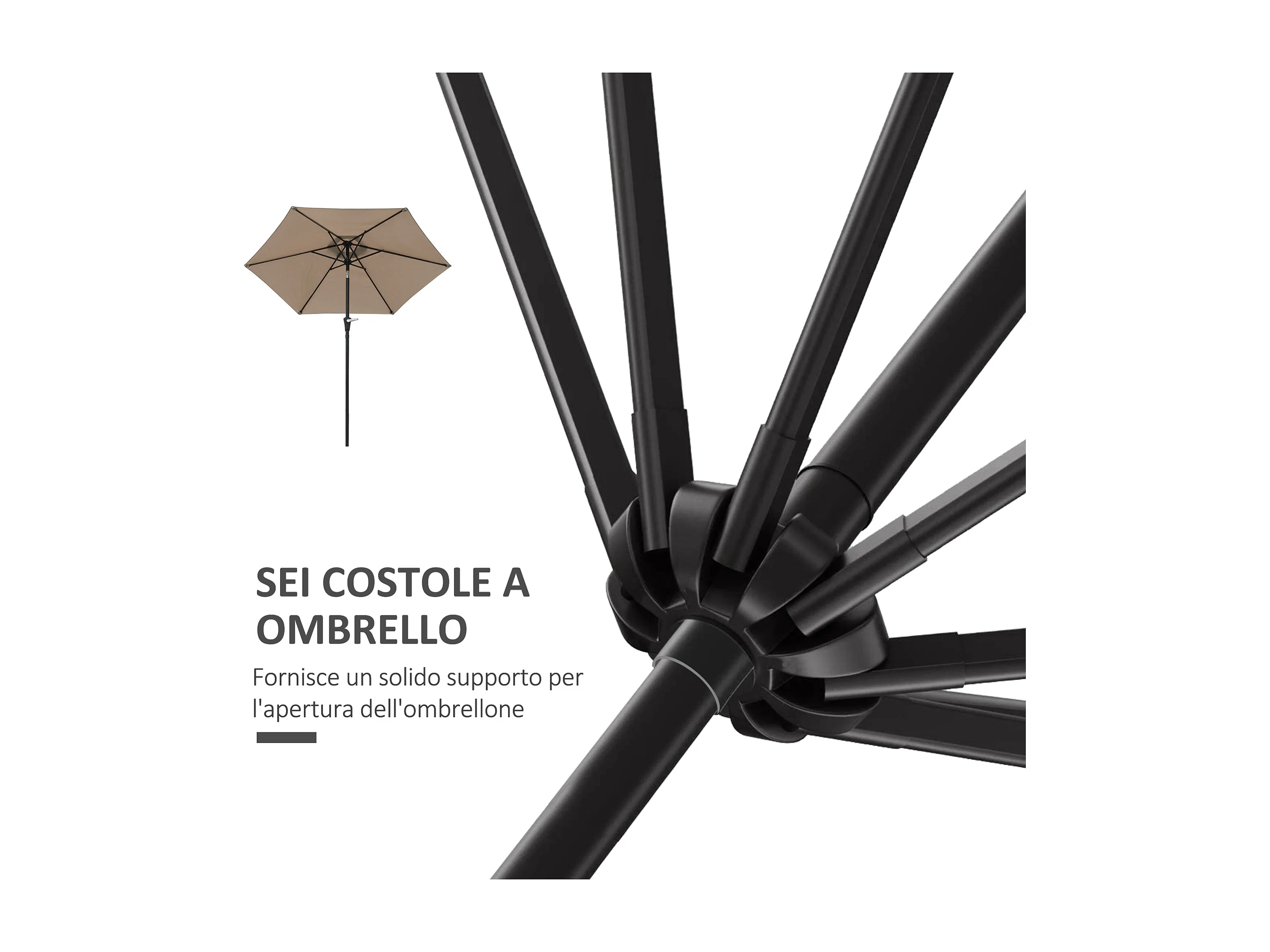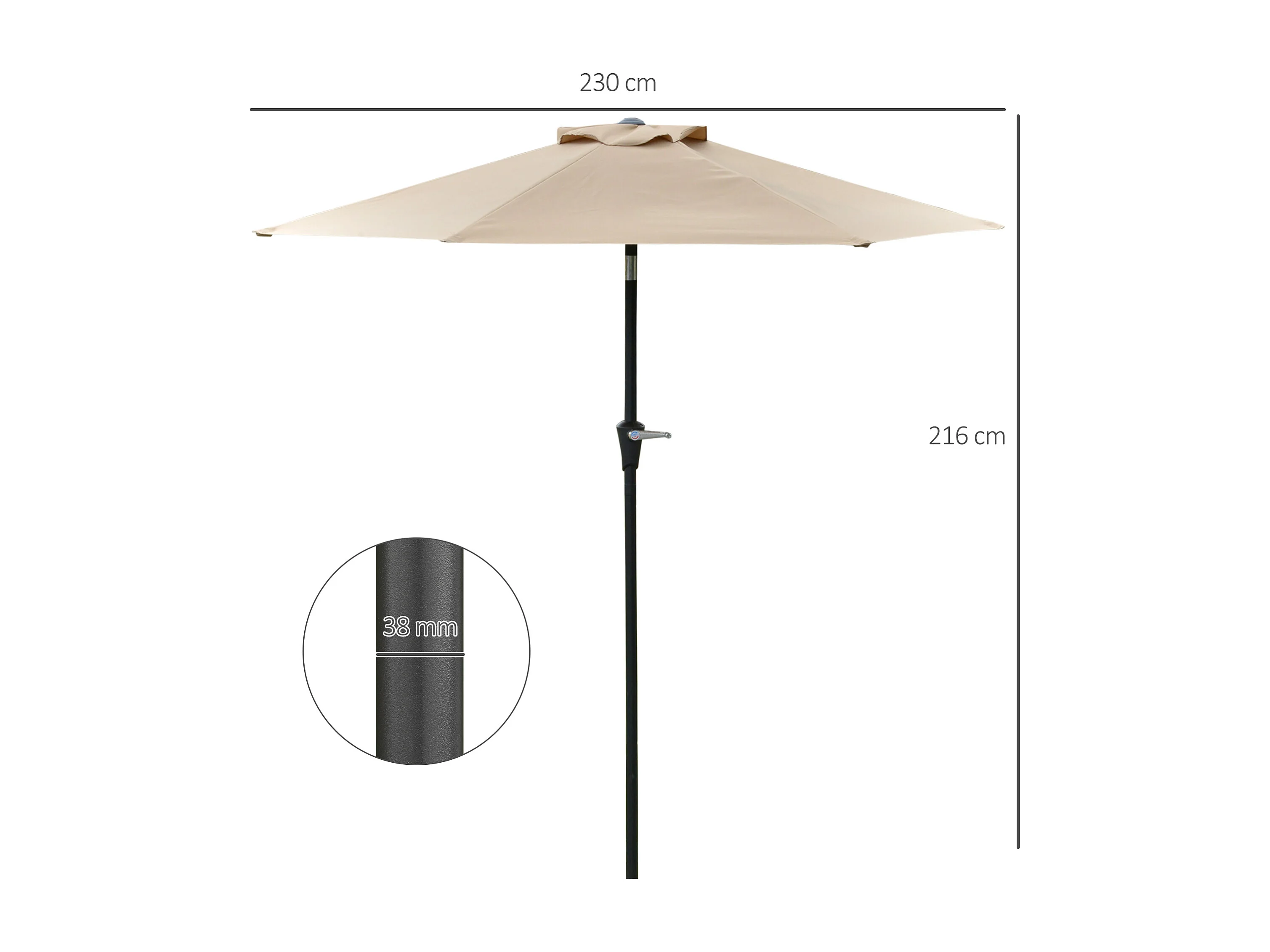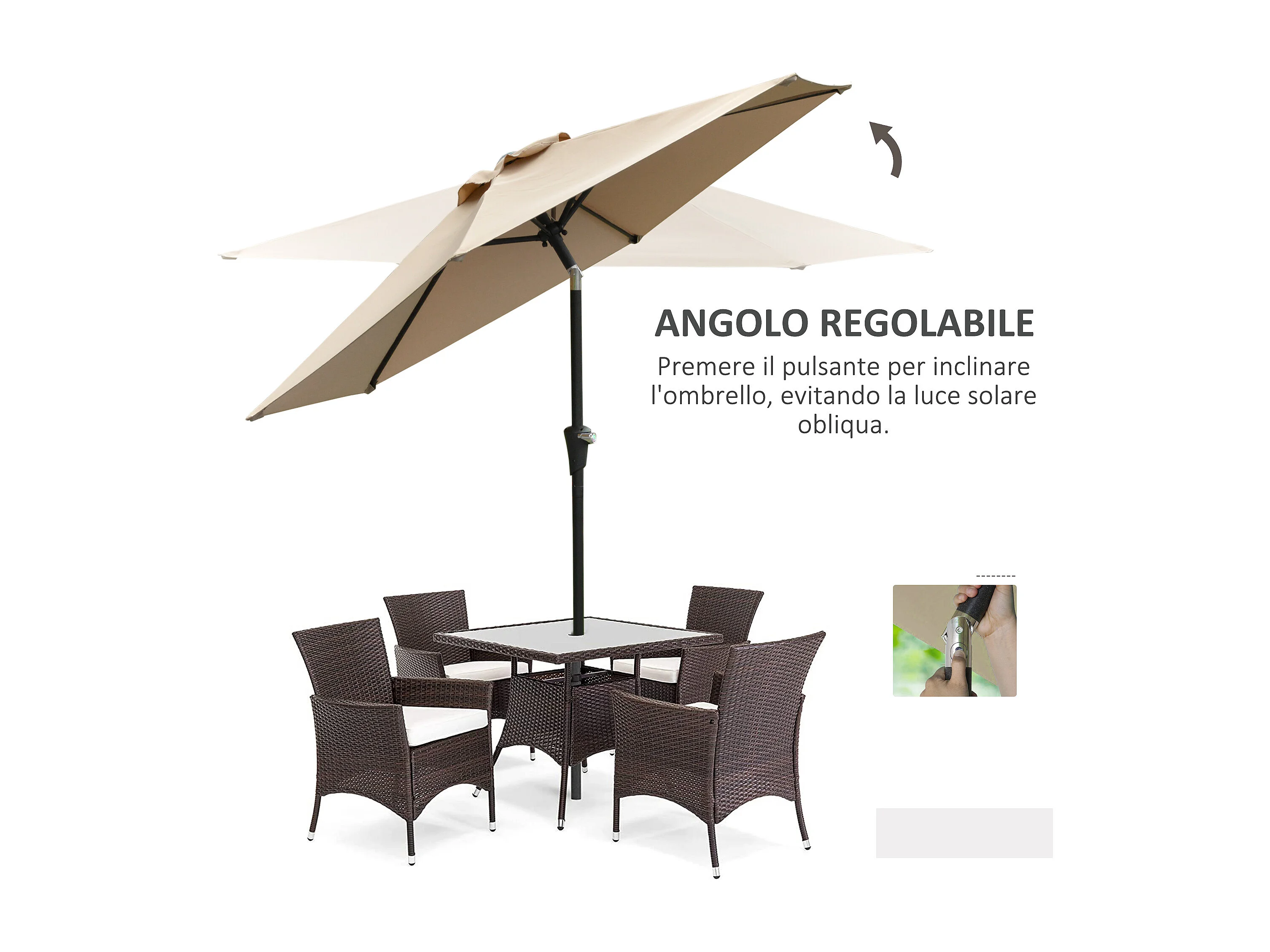 Ombrellone da giardino a manovella inclinabile 2.3x2m cachi