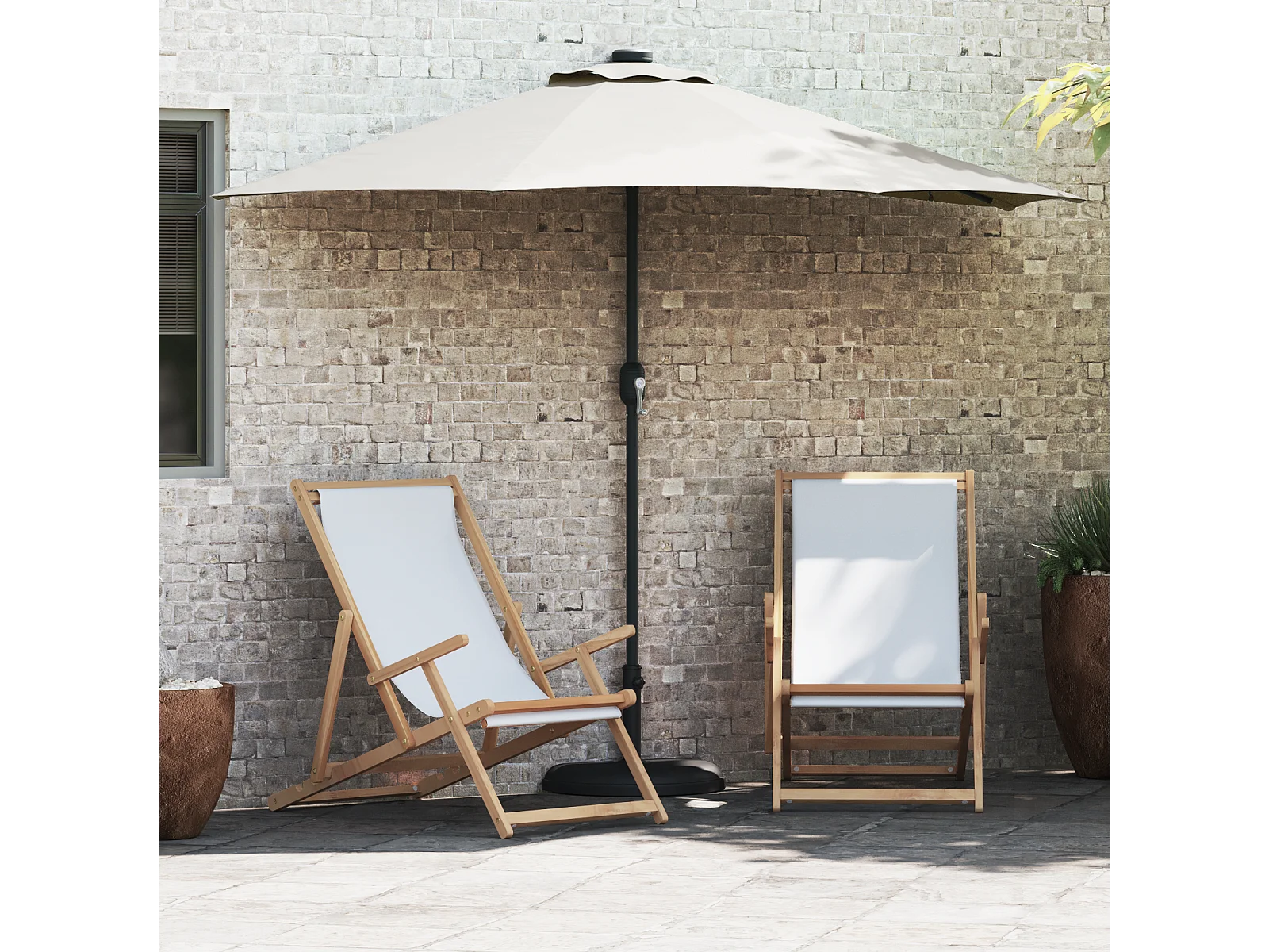 Set 2 lettini prendisole in legno multiposizione con ruote, beige