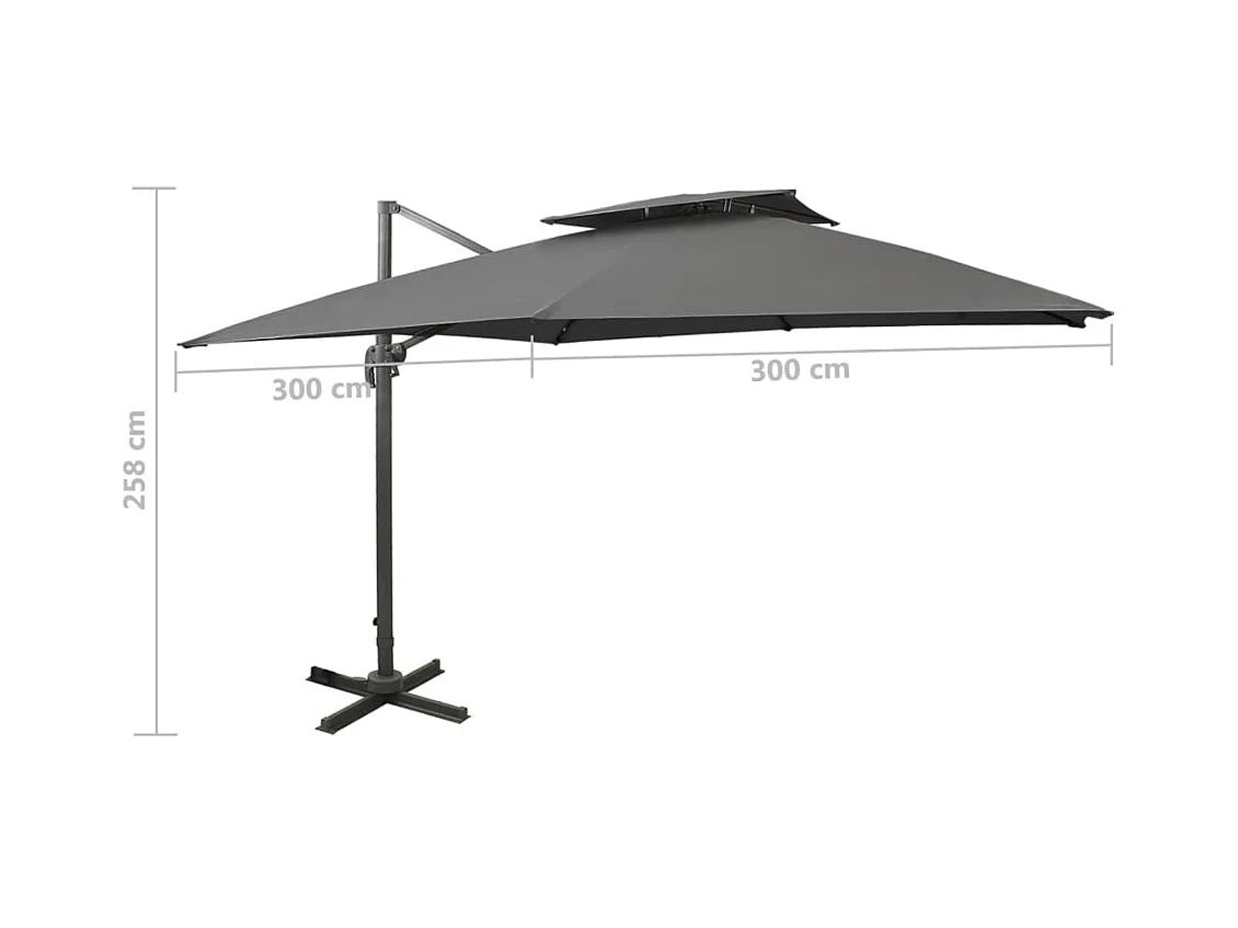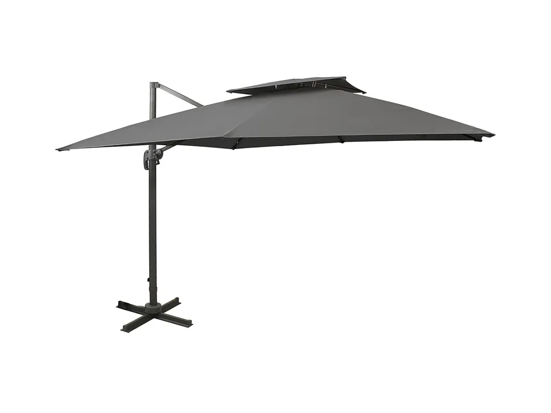 Ombrellone da giardino a sbalzo con doppio tetto in antracite