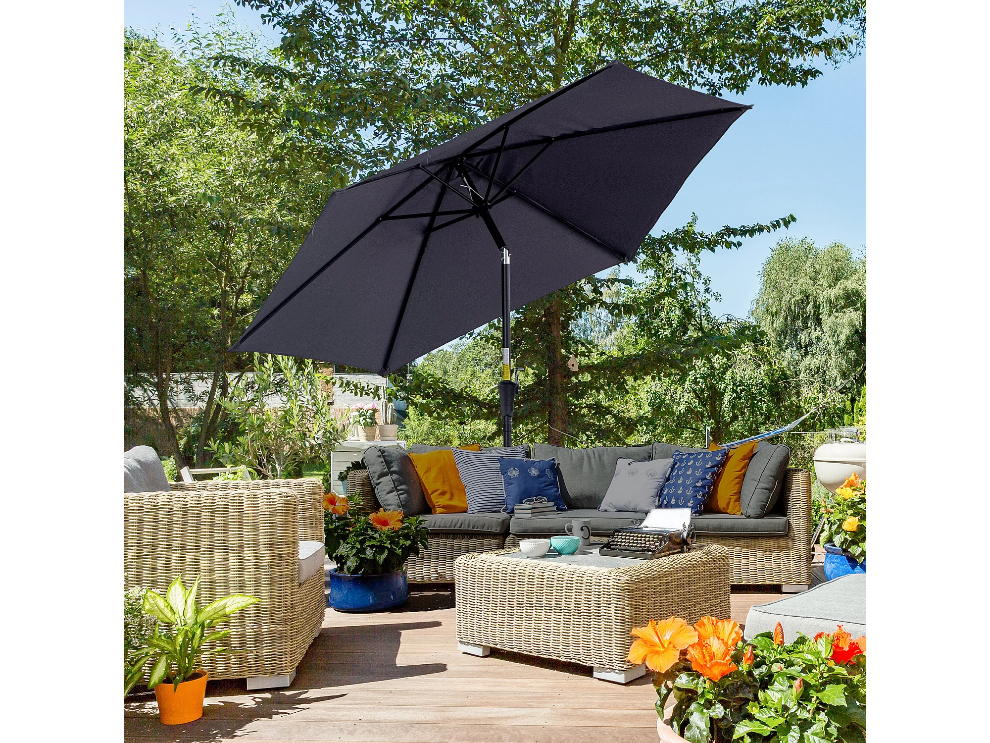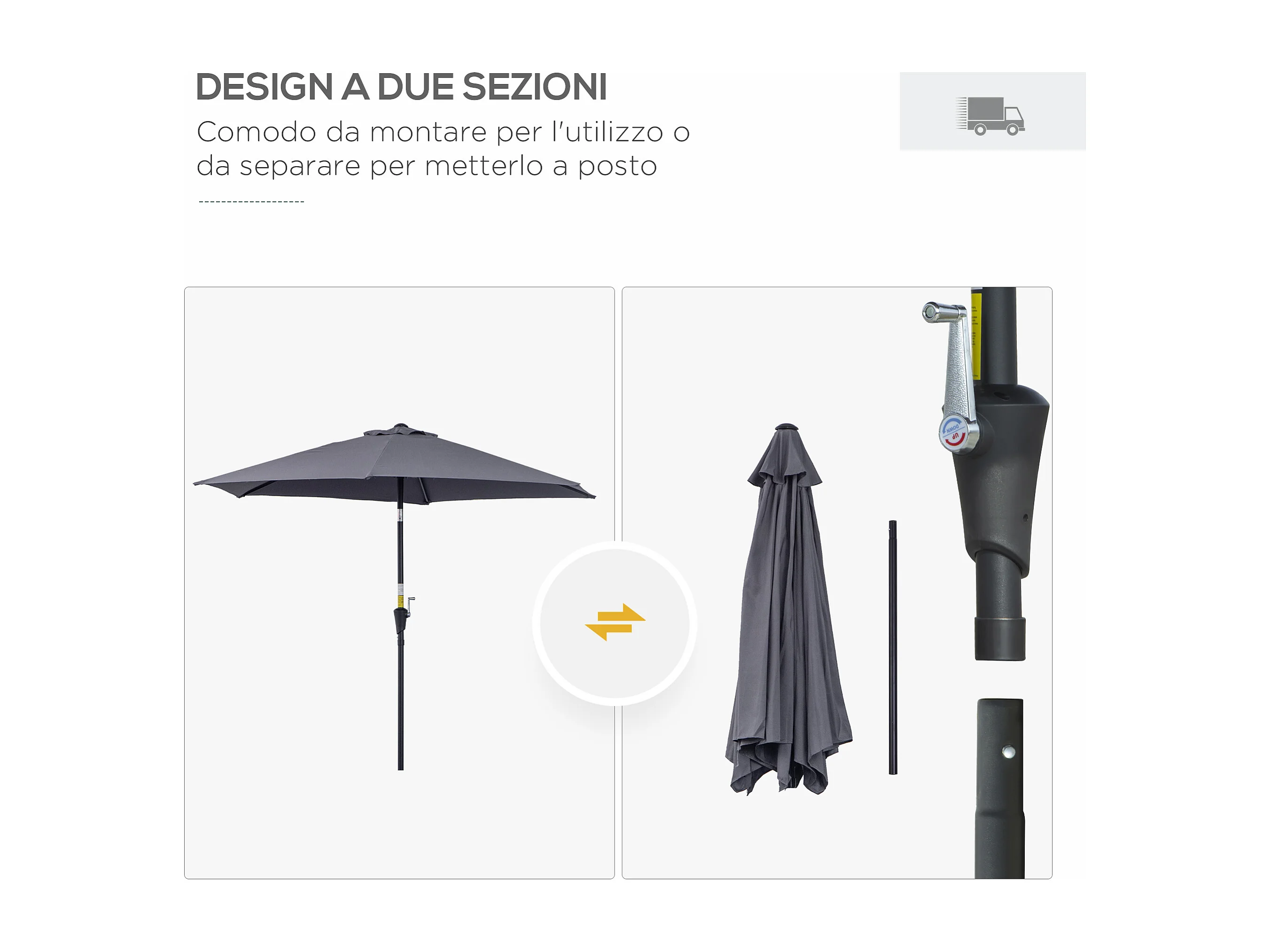 Ombrellone da giardino con apertura a manovella 2.6x2.4m