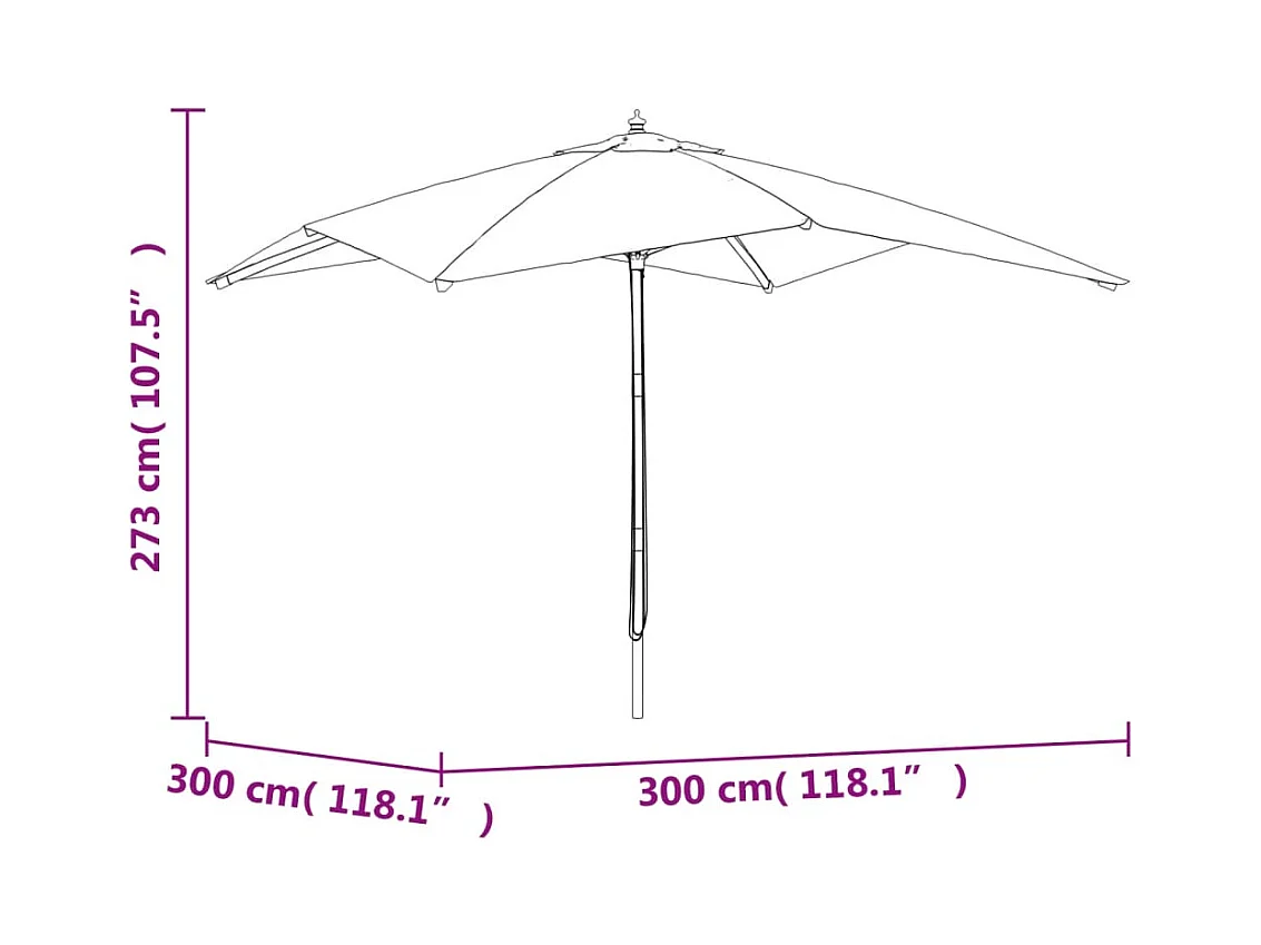 Ombrellone da giardino con palo in legno rosso bordeaux 300x300x273cm