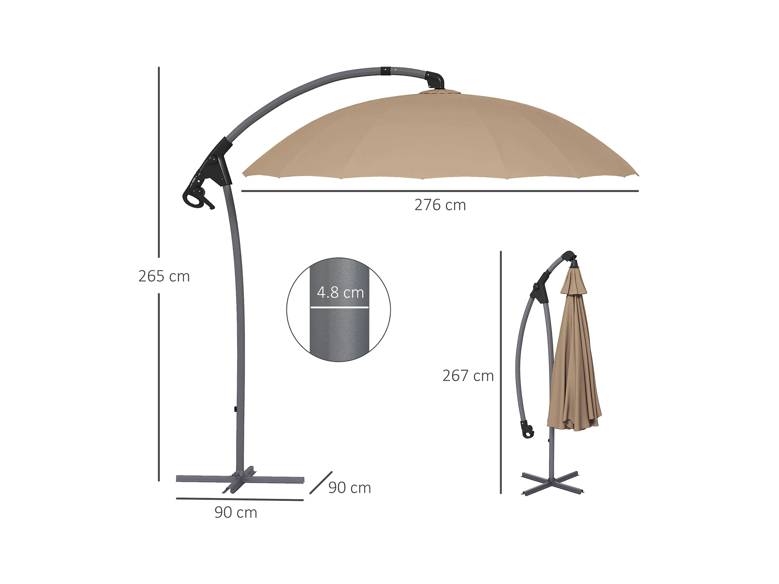 Ombrellone da giardino decentrato 2.7m con manovella cachi