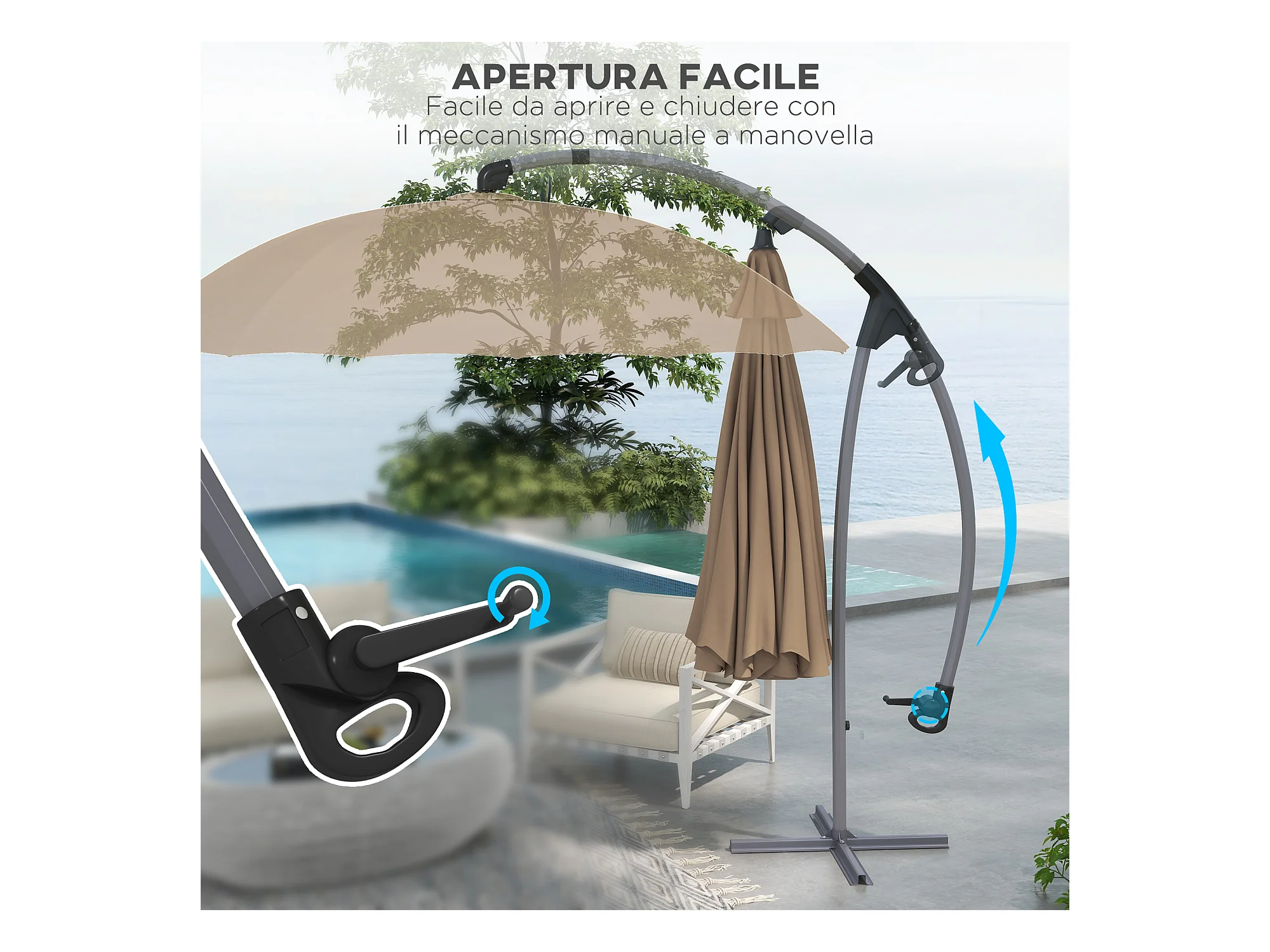 Ombrellone decentrato ø3x2.5 m con base a croce e manovella caffè