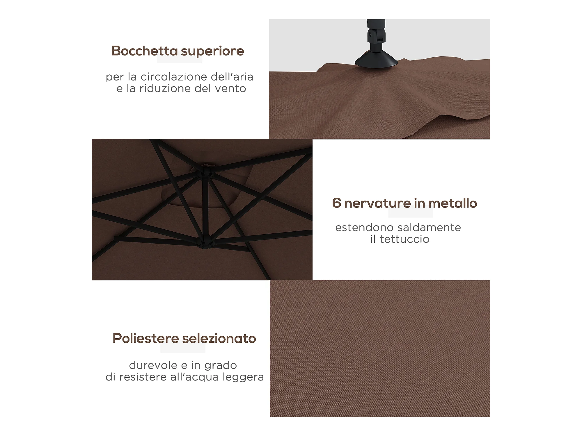Ombrellone 2x2 m da esterno con tettuccio quadrato caffè