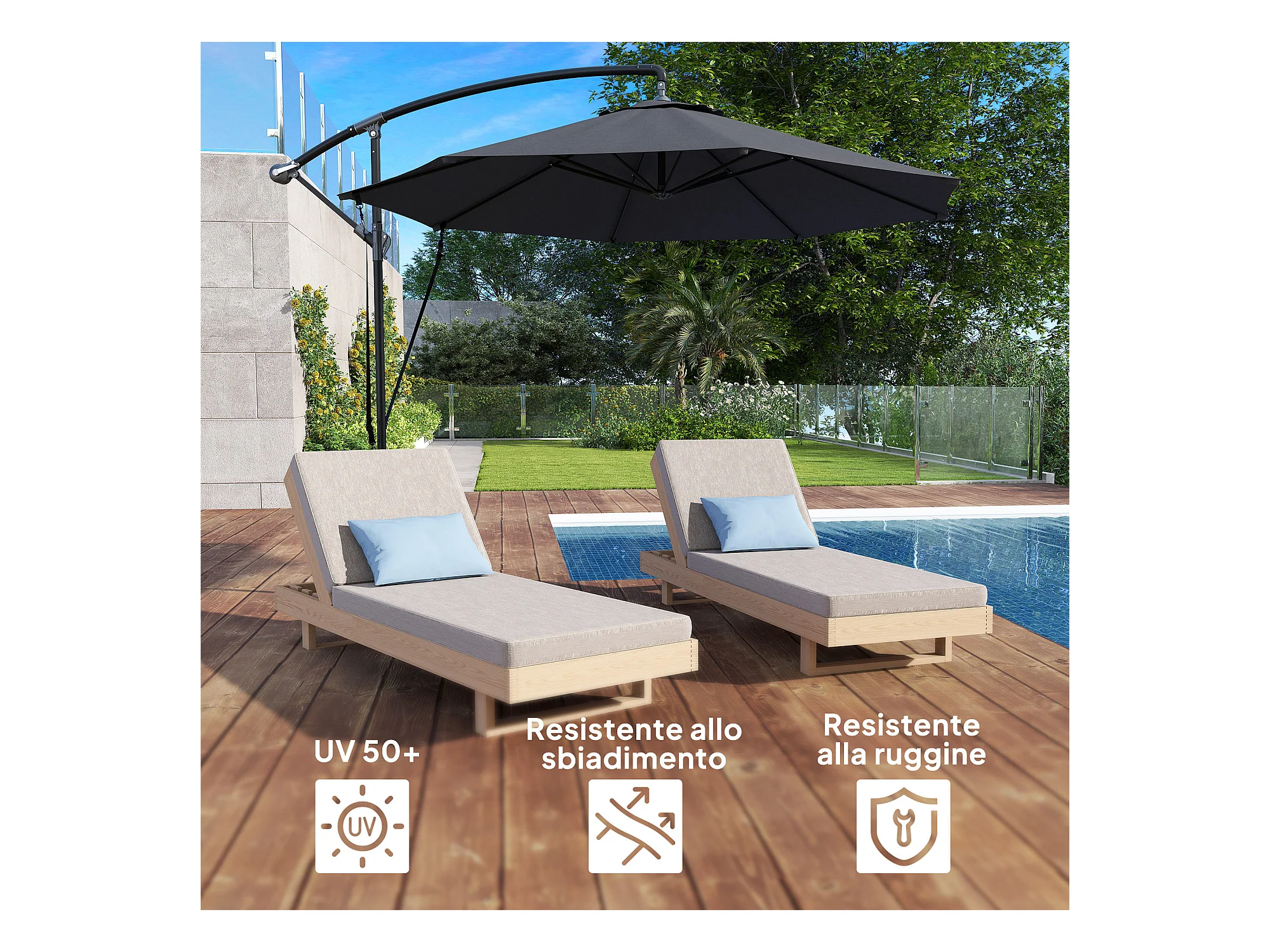 Ombrellone parasole da esterno tessuto poliestere acciaio grigio