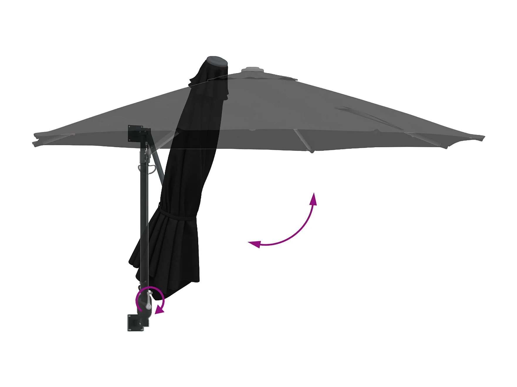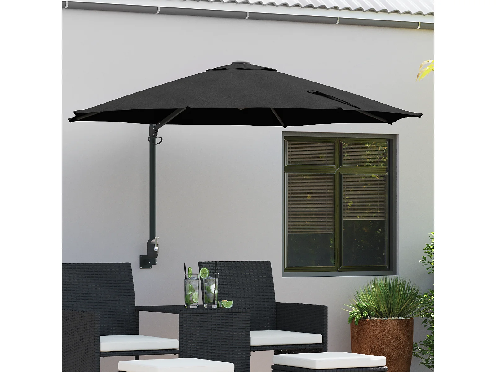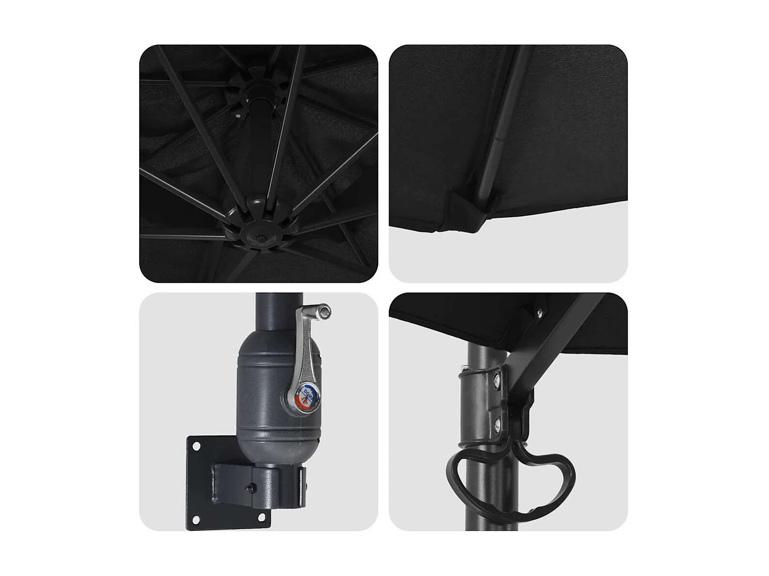 Ombrellone da giardino in poliestere nero, acciaio verniciato a polvere grande