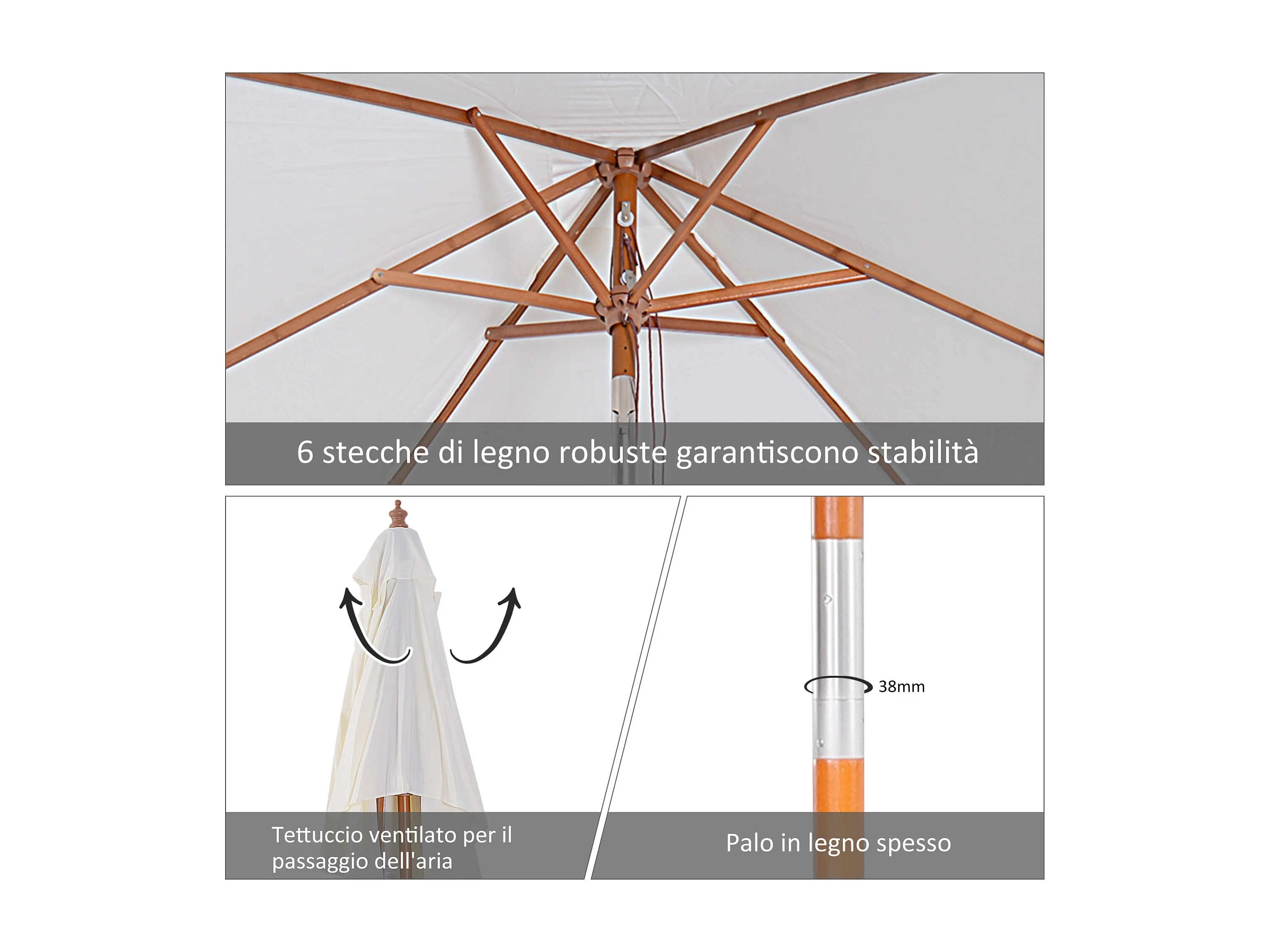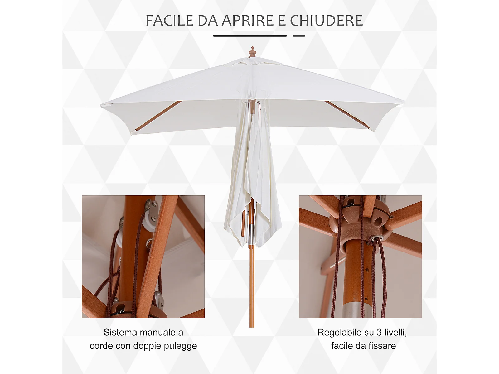 Ombrellone da giardino inclinabile 2x1.5m a 6 stecche beige