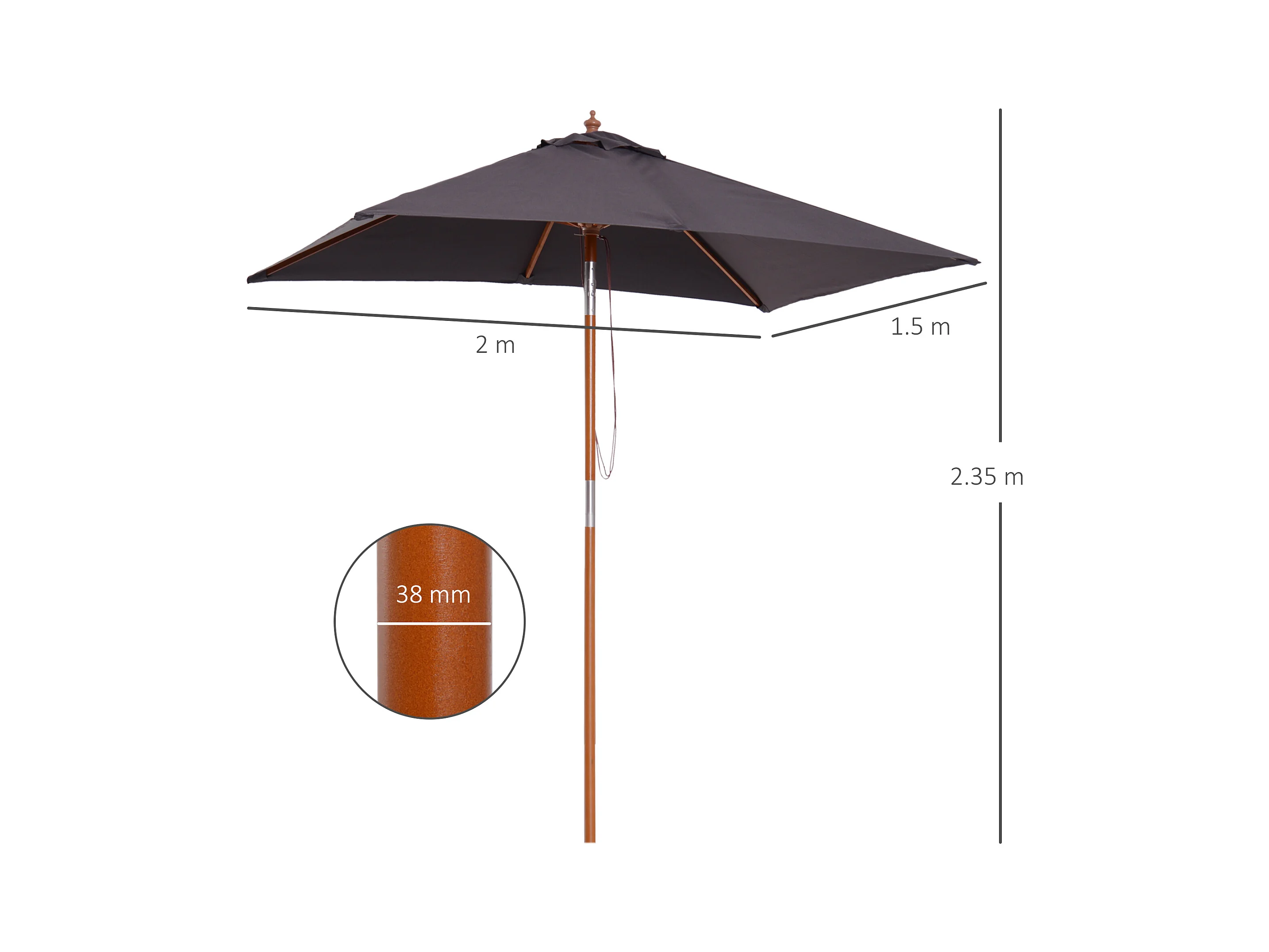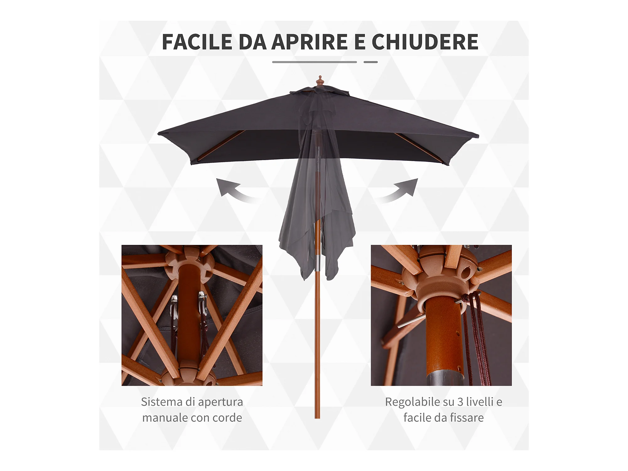Ombrellone da giardino in legno 2x3m con copertura poliestere grigio