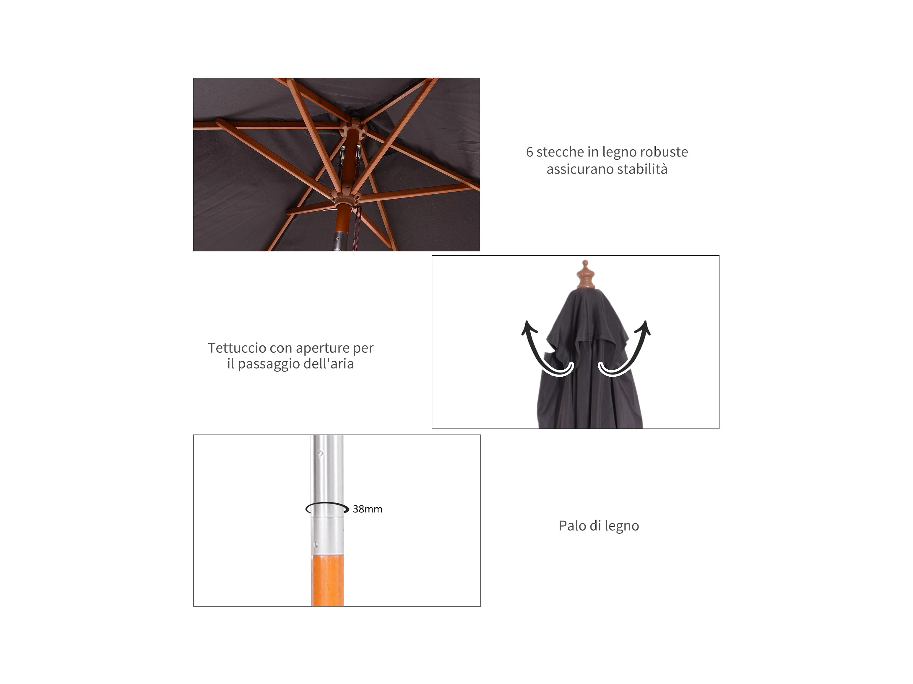 Ombrellone da giardino inclinabile 2x1.5m con palo in legno