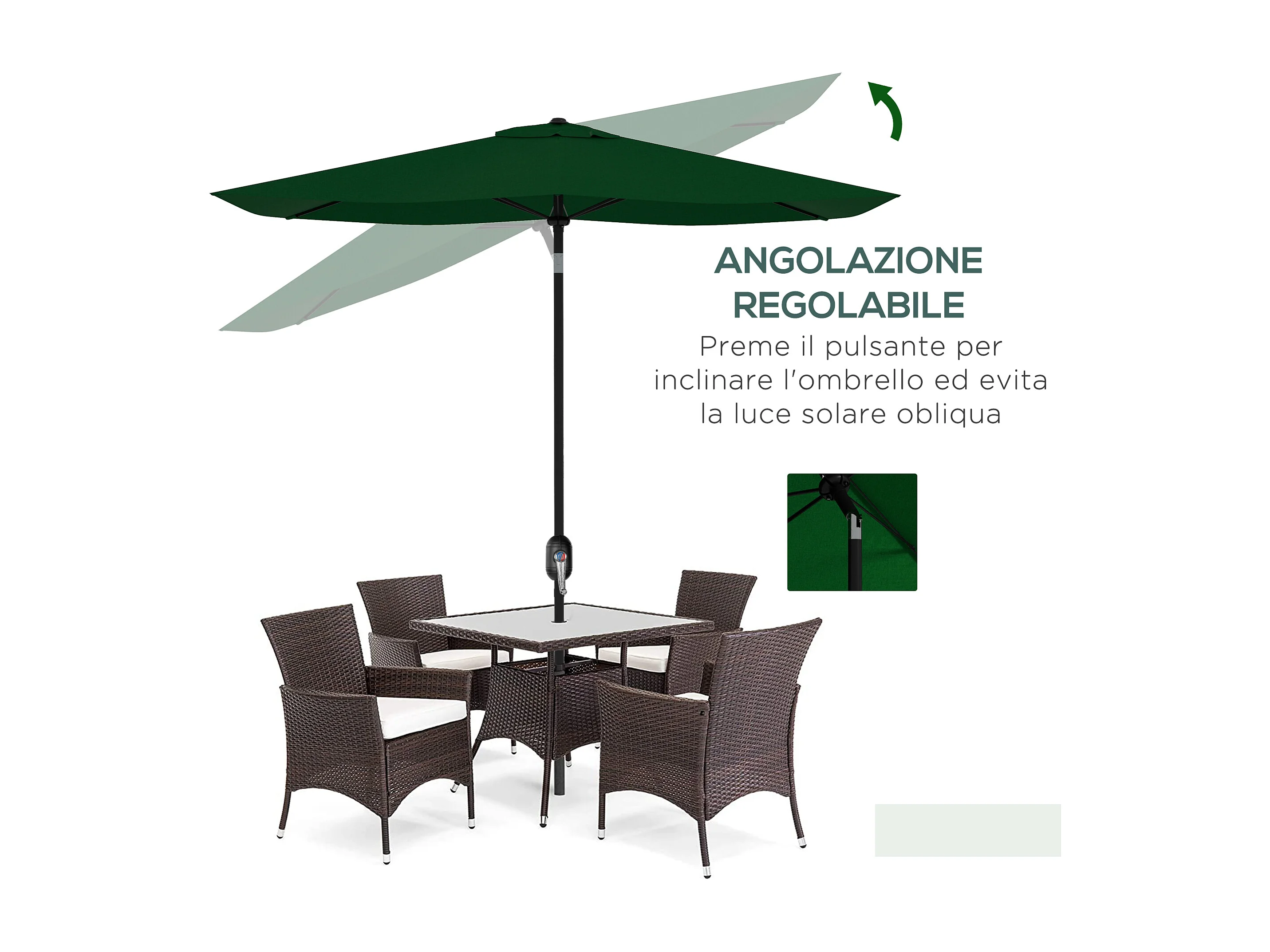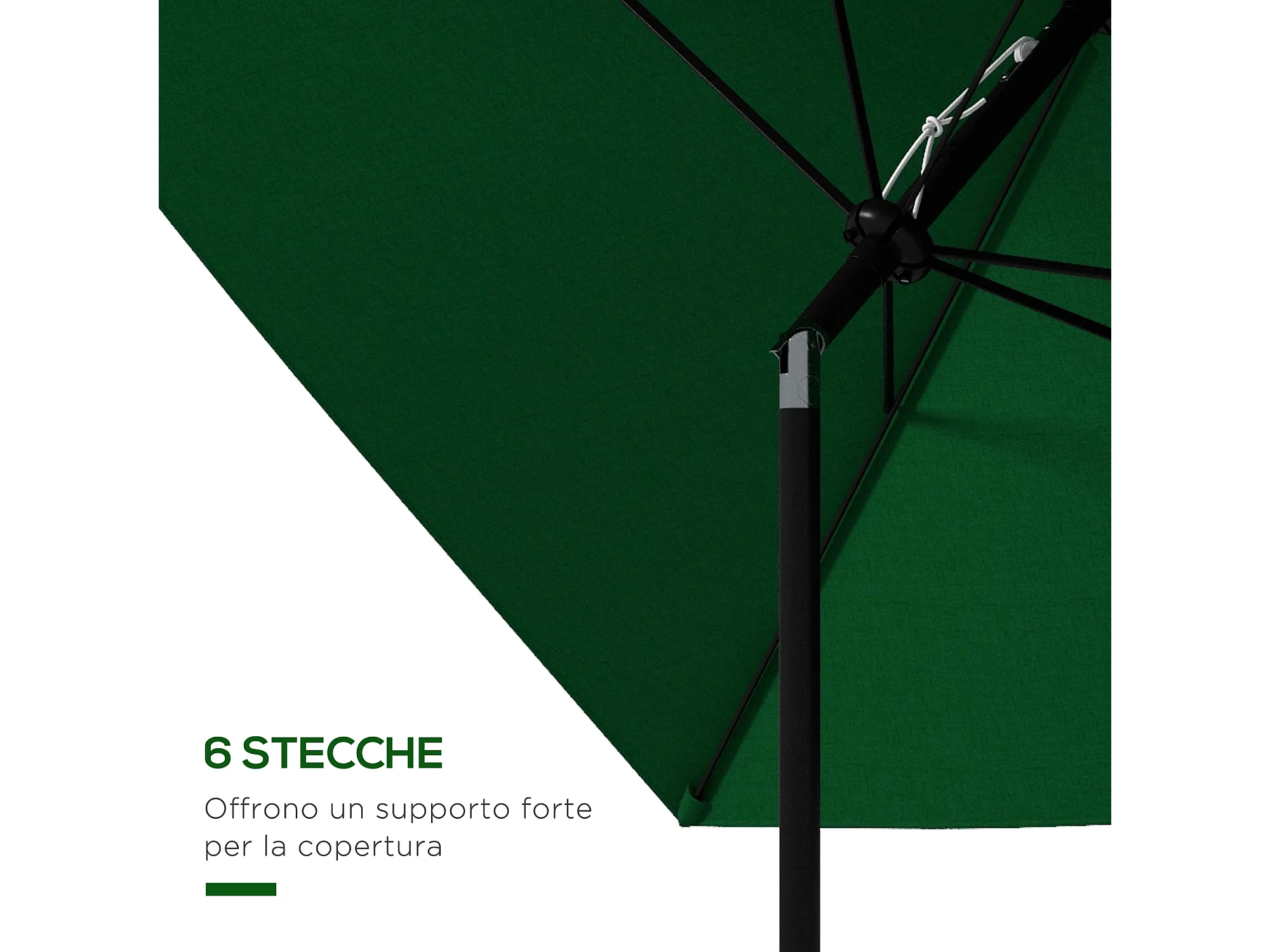 Ombrellone da giardino inclinabile con apertura manovella 2x3m verde