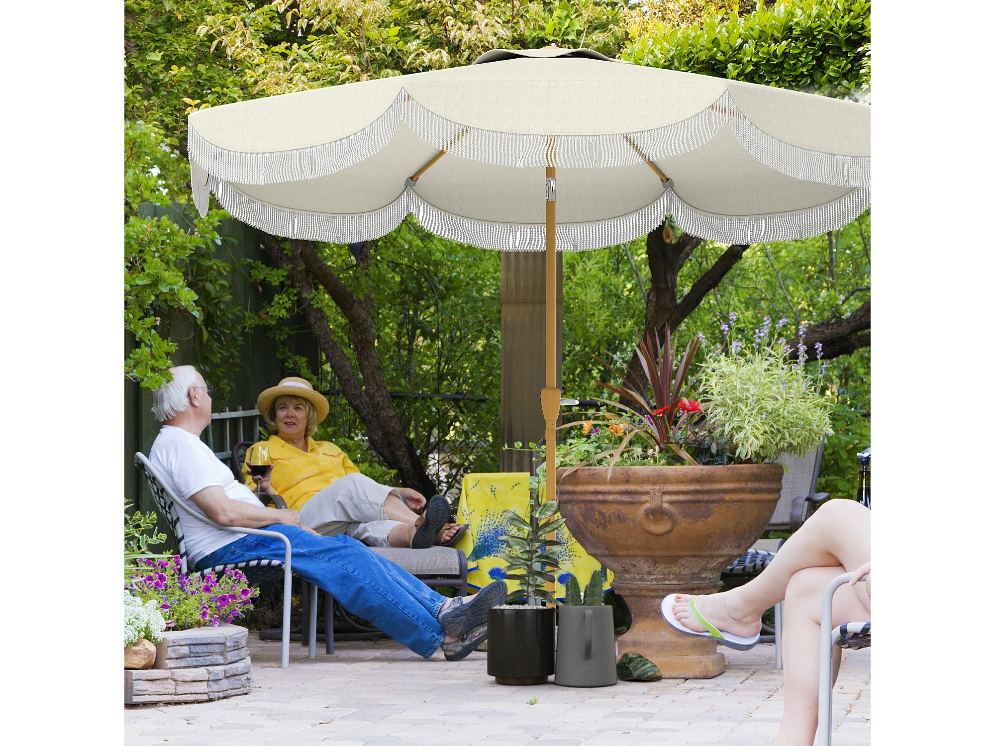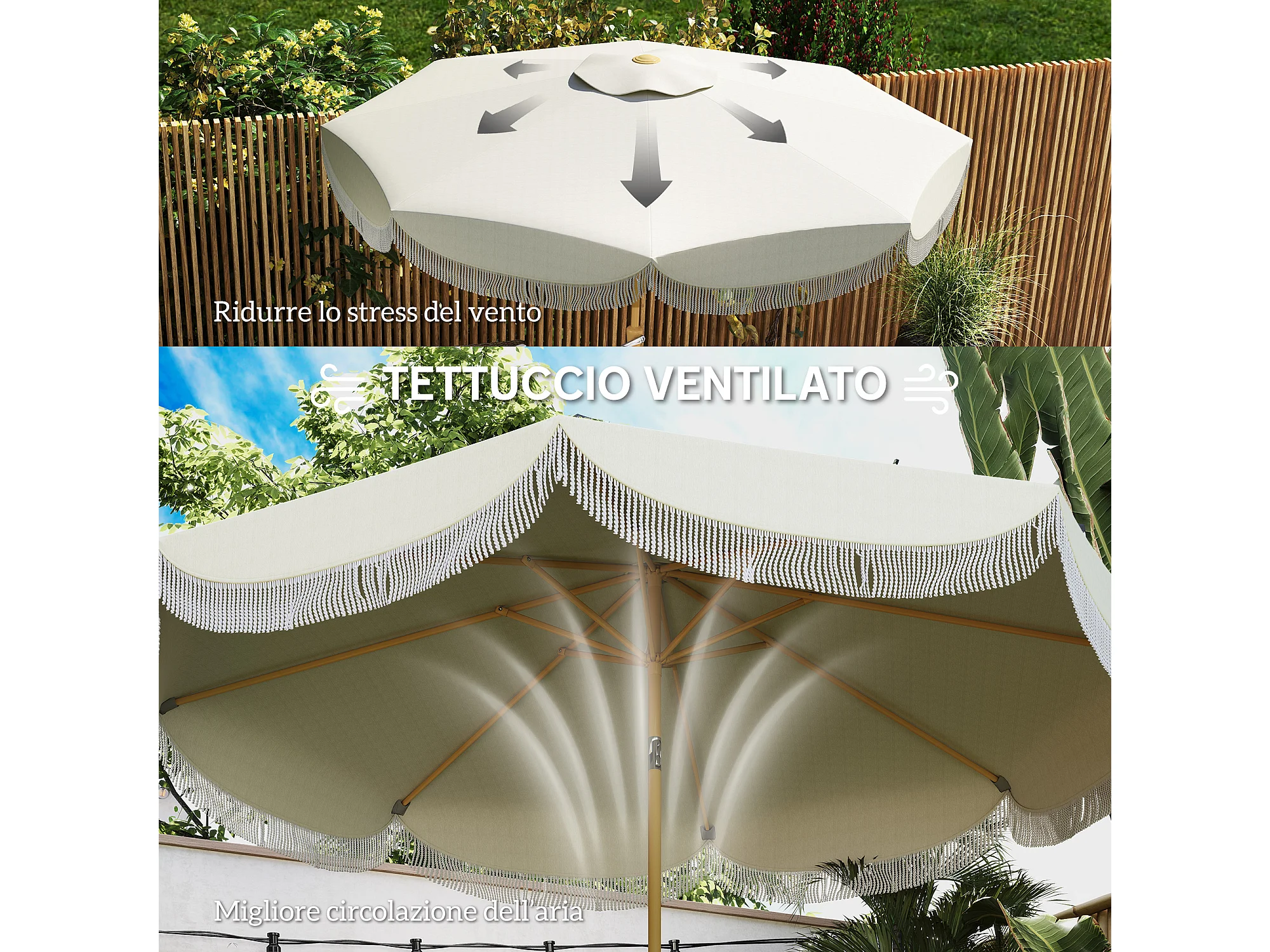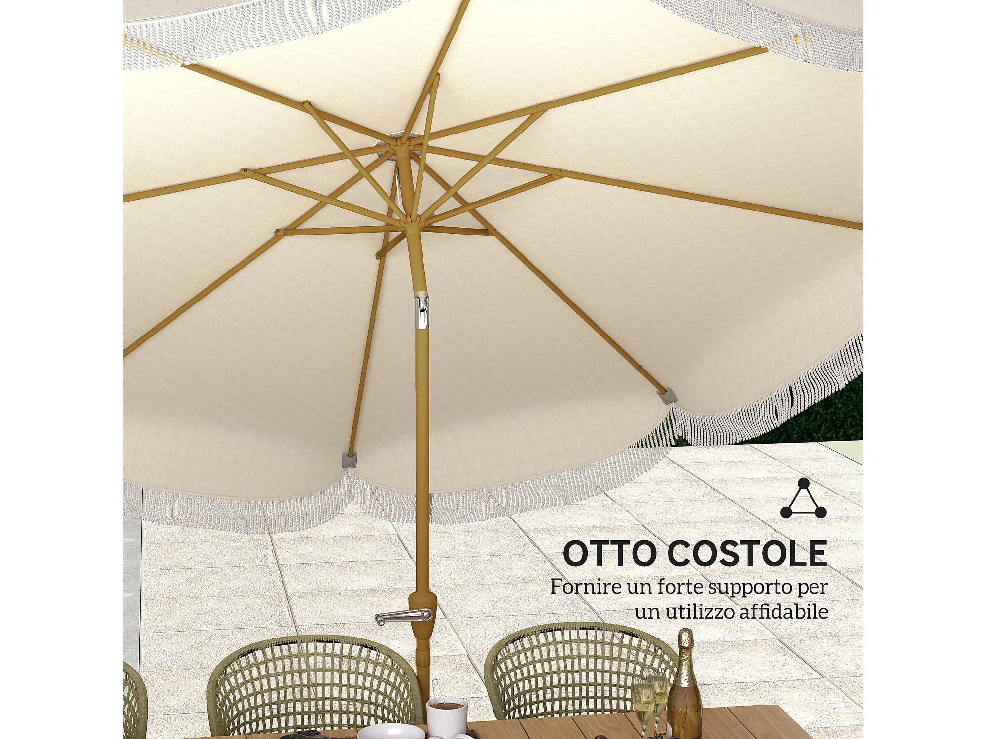 Ombrellone da giardino inclinabile in metallo e poliestere beige