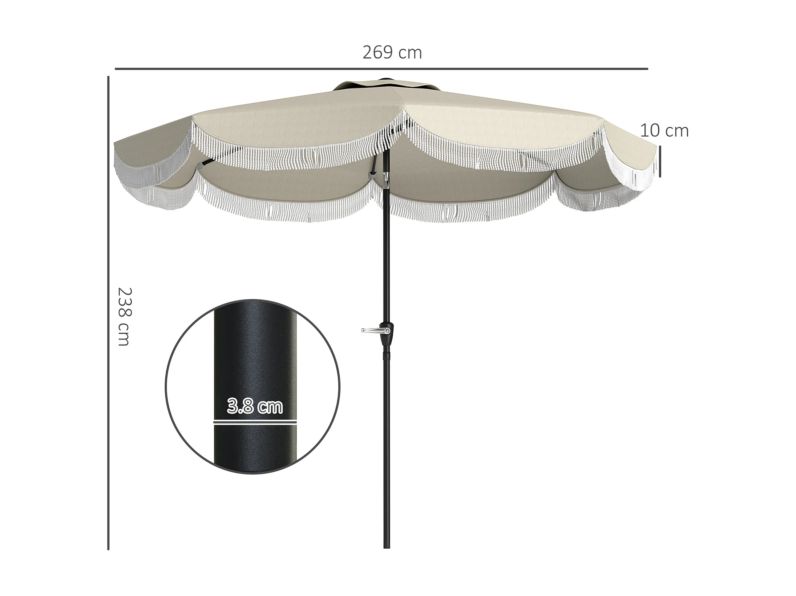 Ombrellone da giardino inclinabile in metallo poliestere grigio chiaro