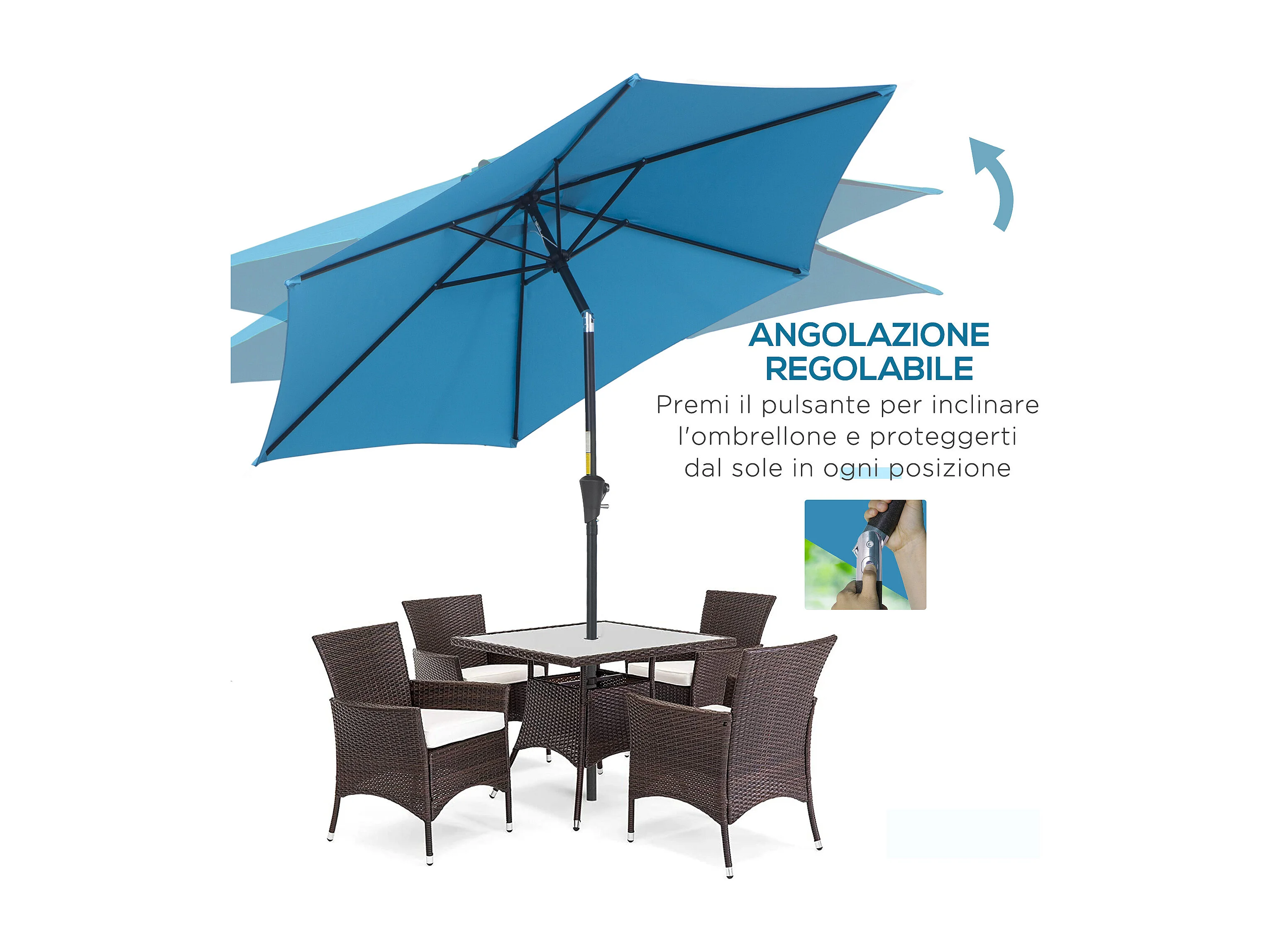 Ombrellone da giardino Ø2.6x2.4 m con manovella e inclinabile blu