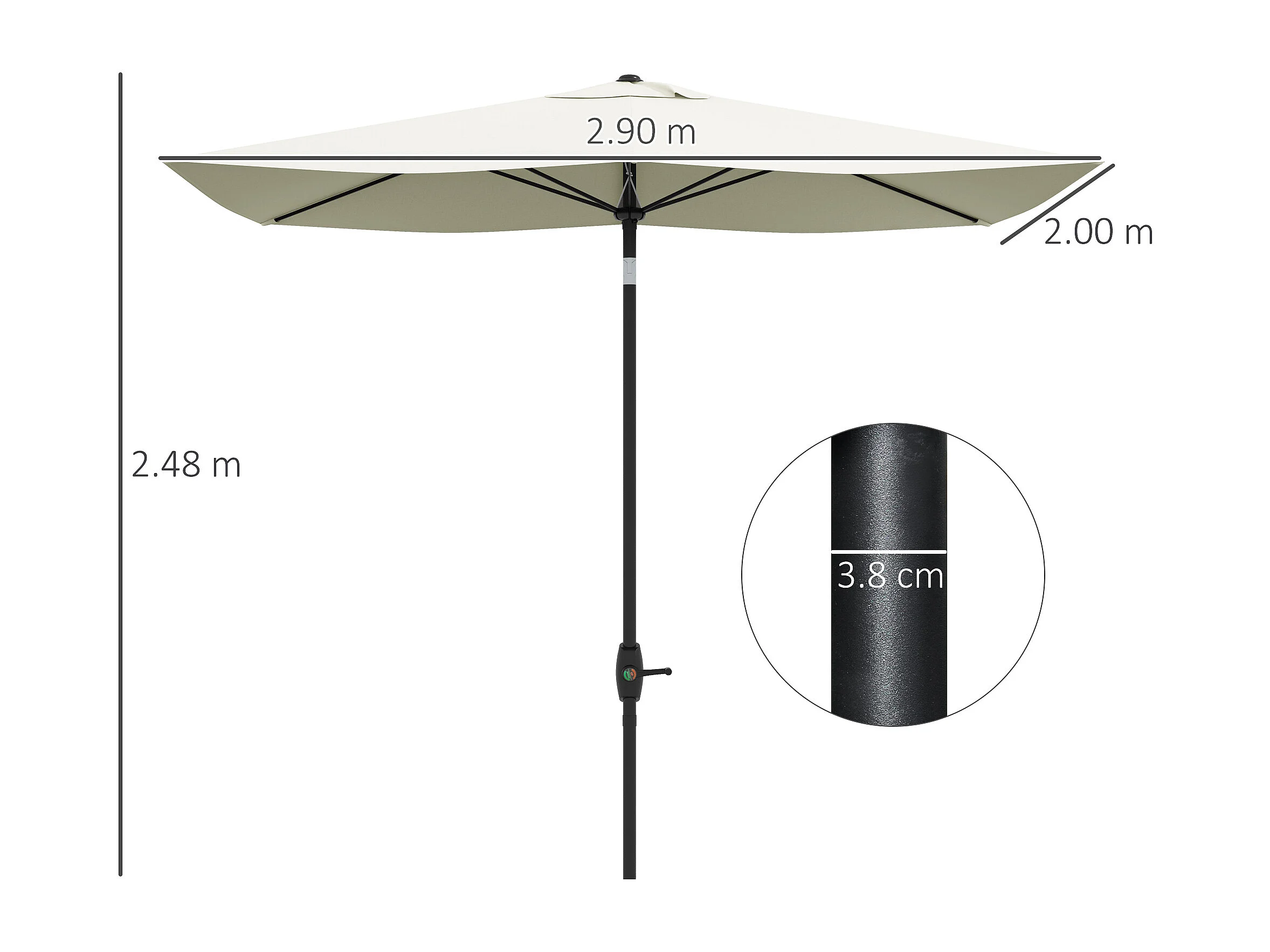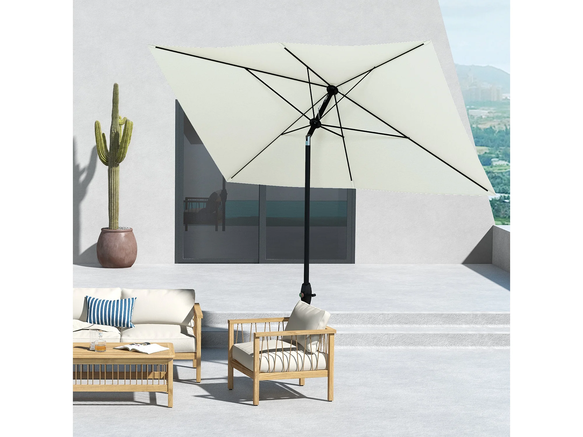 Ombrellone da giardino rettangolare 2x3m inclinabile beige