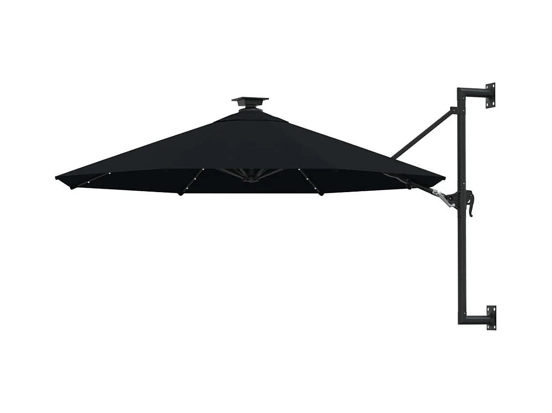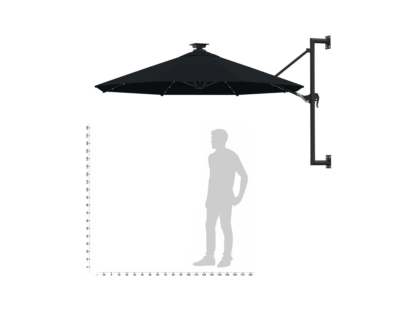 Ombrellone da parete con palo in metallo e LED 300 cm nero 02_0008693