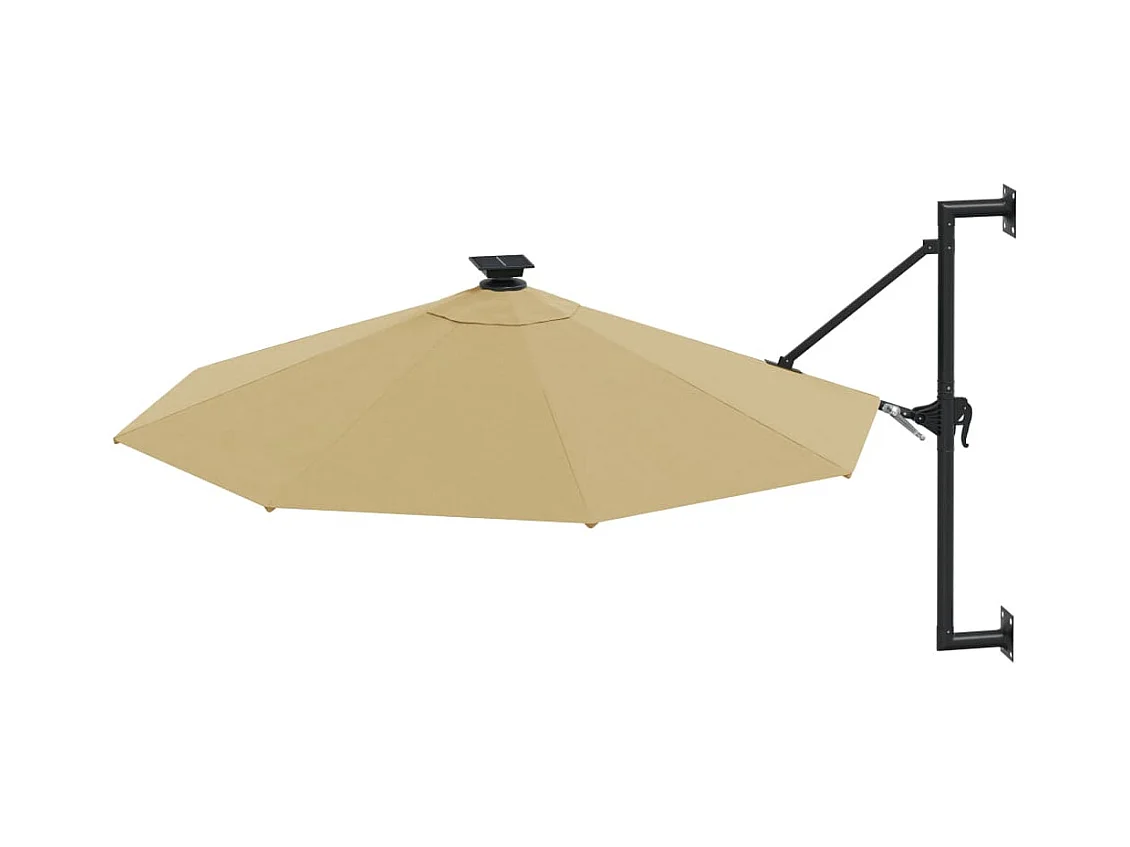 Ombrellone da parete con palo in metallo e LED 300 cm tortora 02_0008695