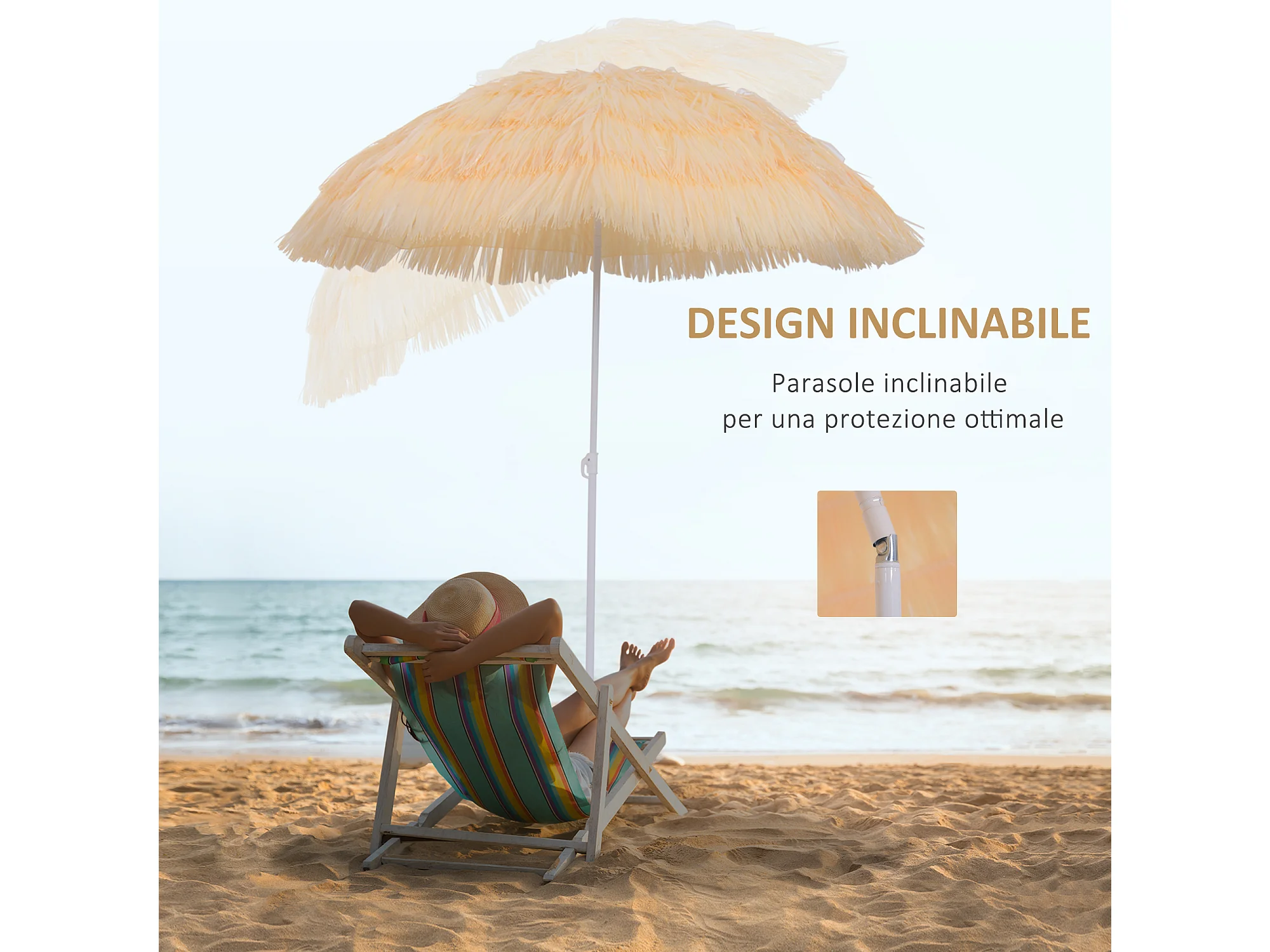 Ombrellone da spiaggia e giardino 1.6x2 m beige a 8 stecche