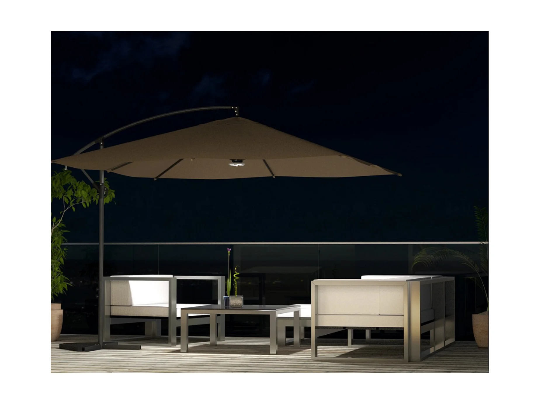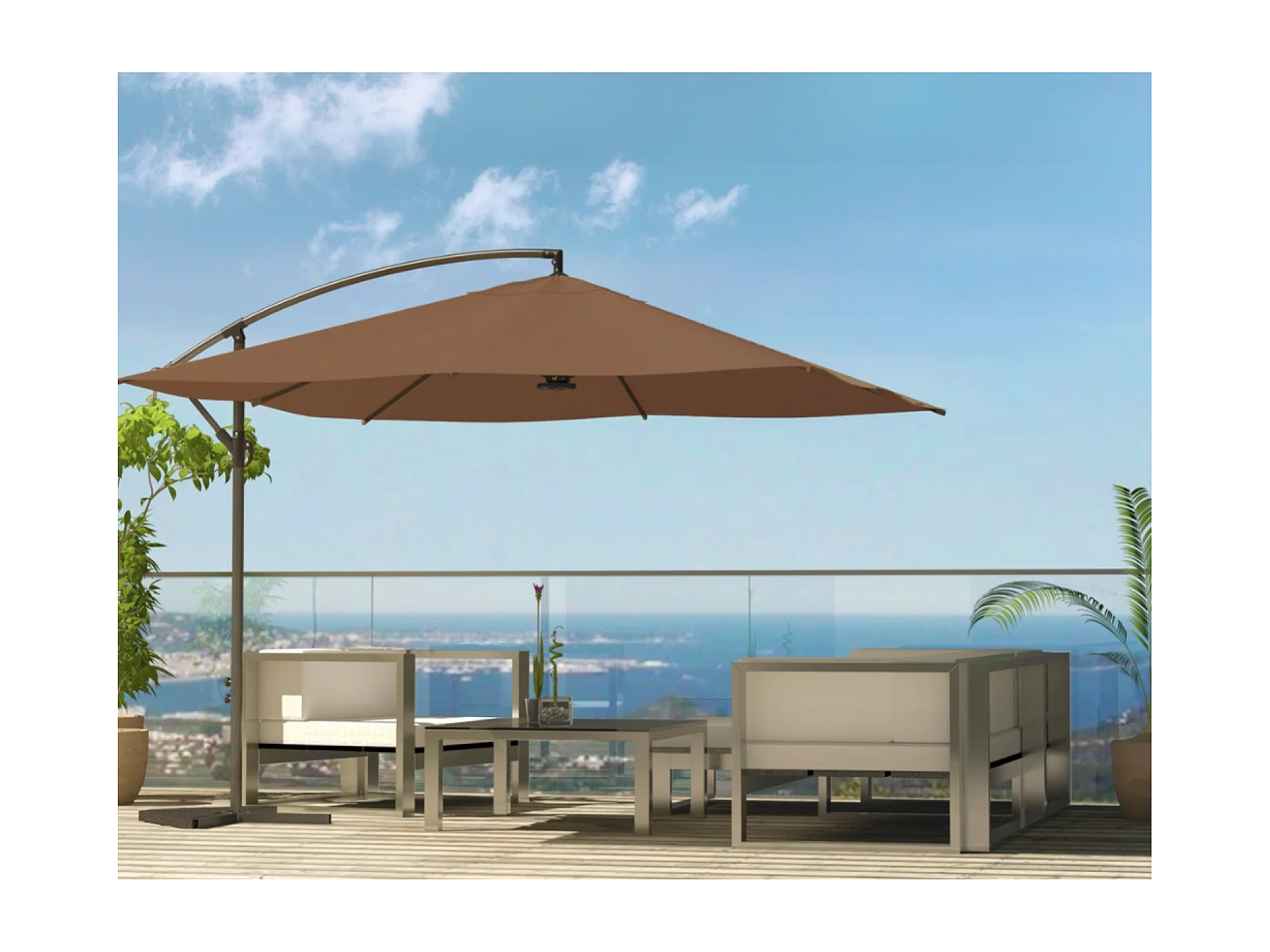 Ombrellone decentrato con LED cioccolato 3 x 3 m SOLENZARA