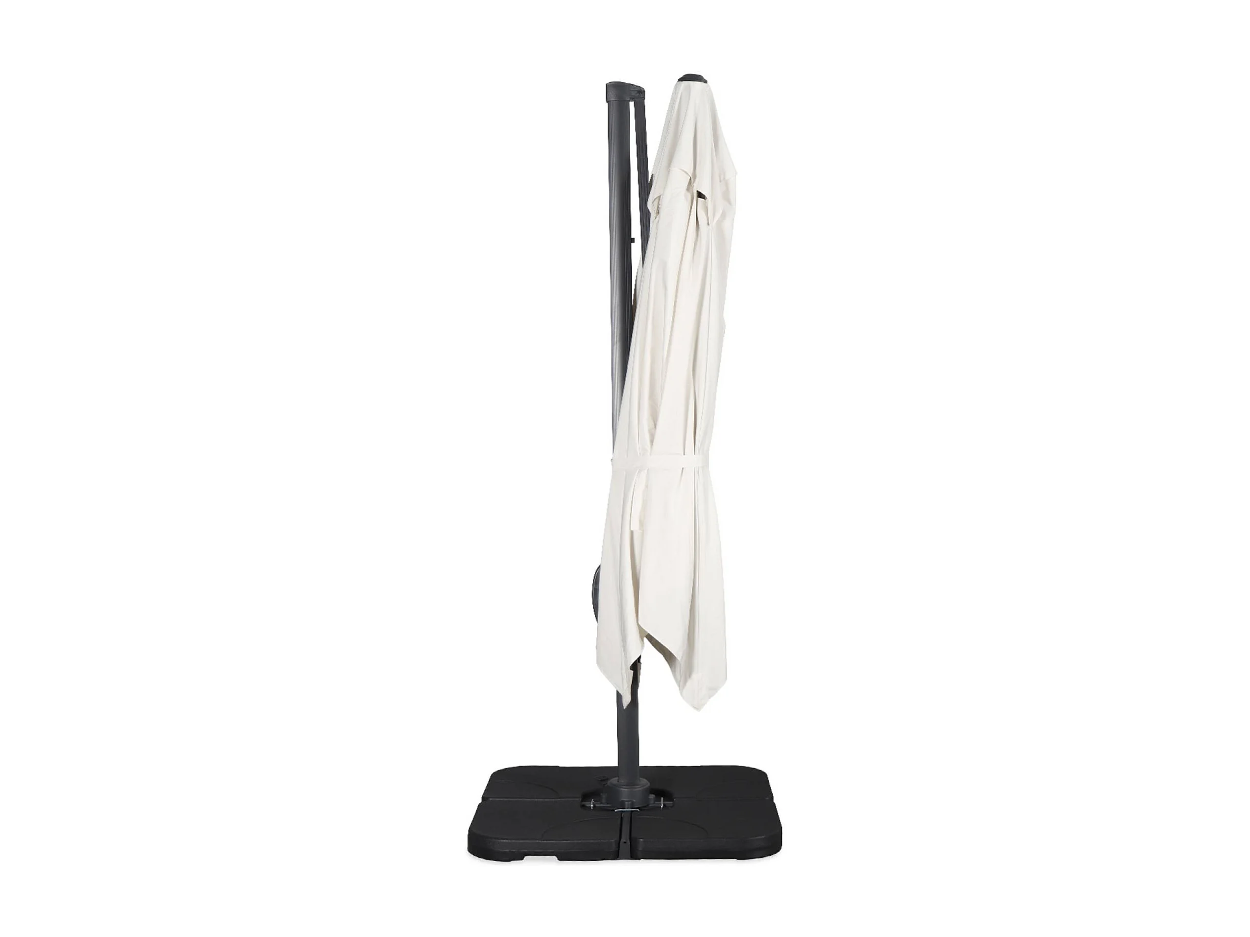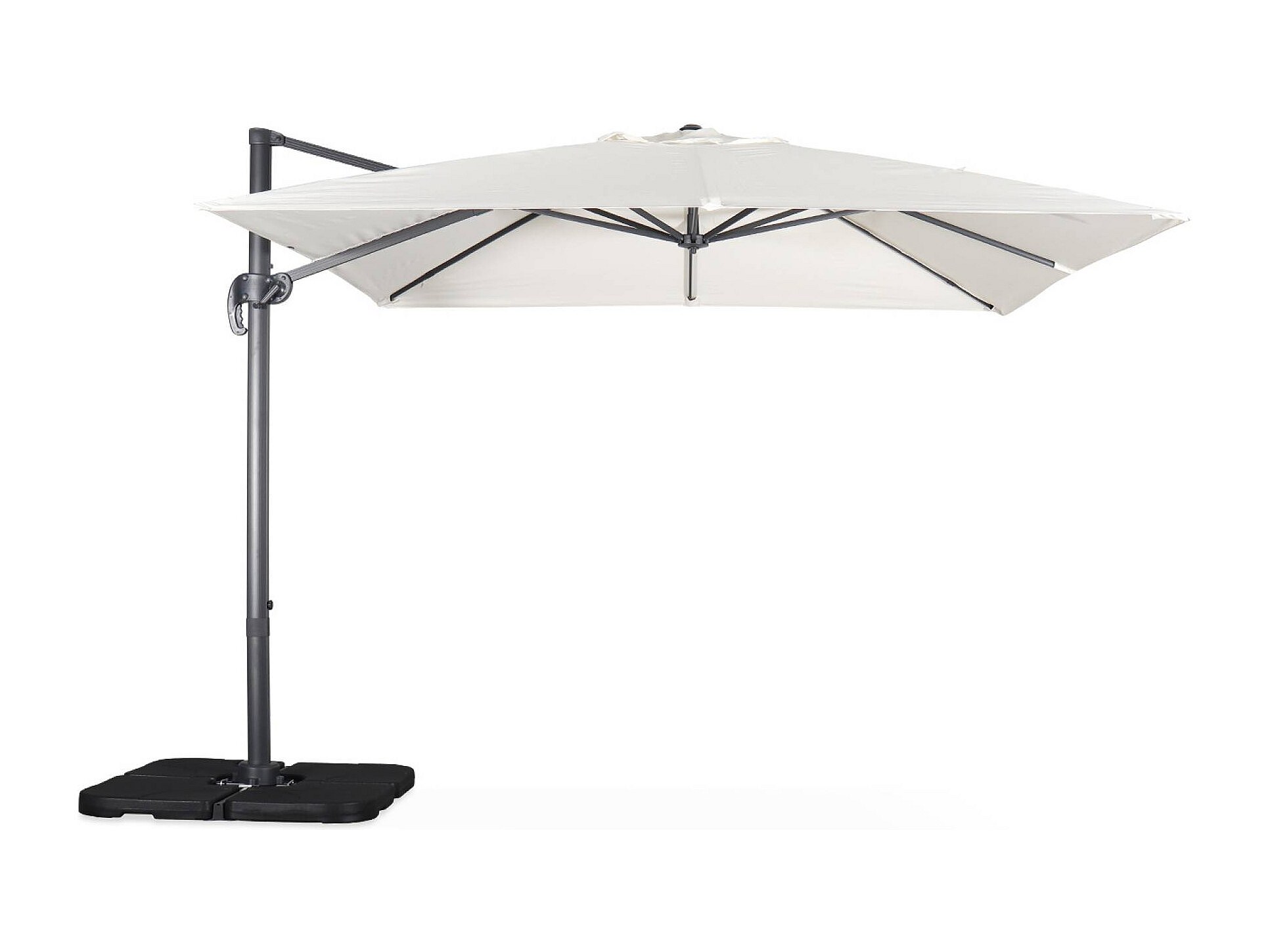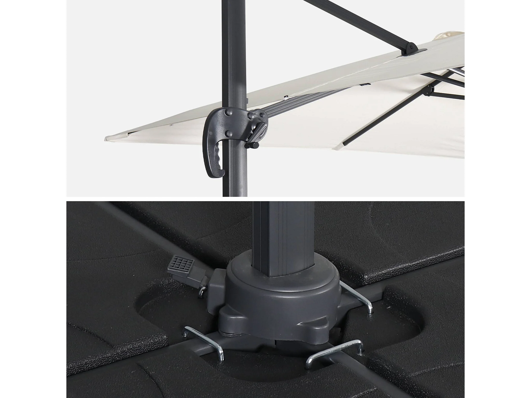 Ombrellone decentrato quadrato 3x3m + set di 4 piastrelle 50x50cm,