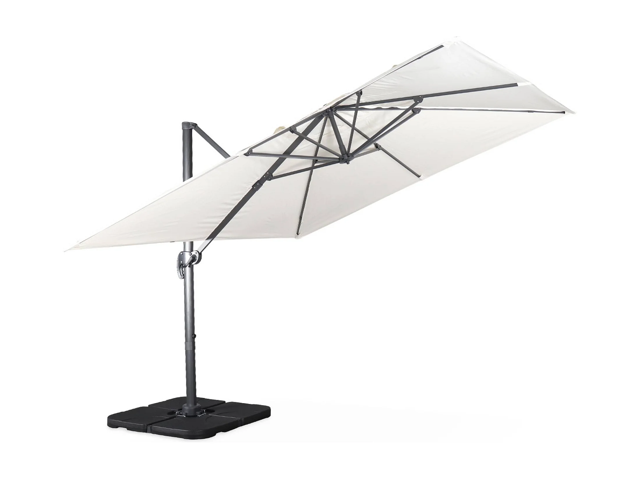 Ombrellone parasole decentrato MCW-A96 3,5x3,5m avorio grigio senza base