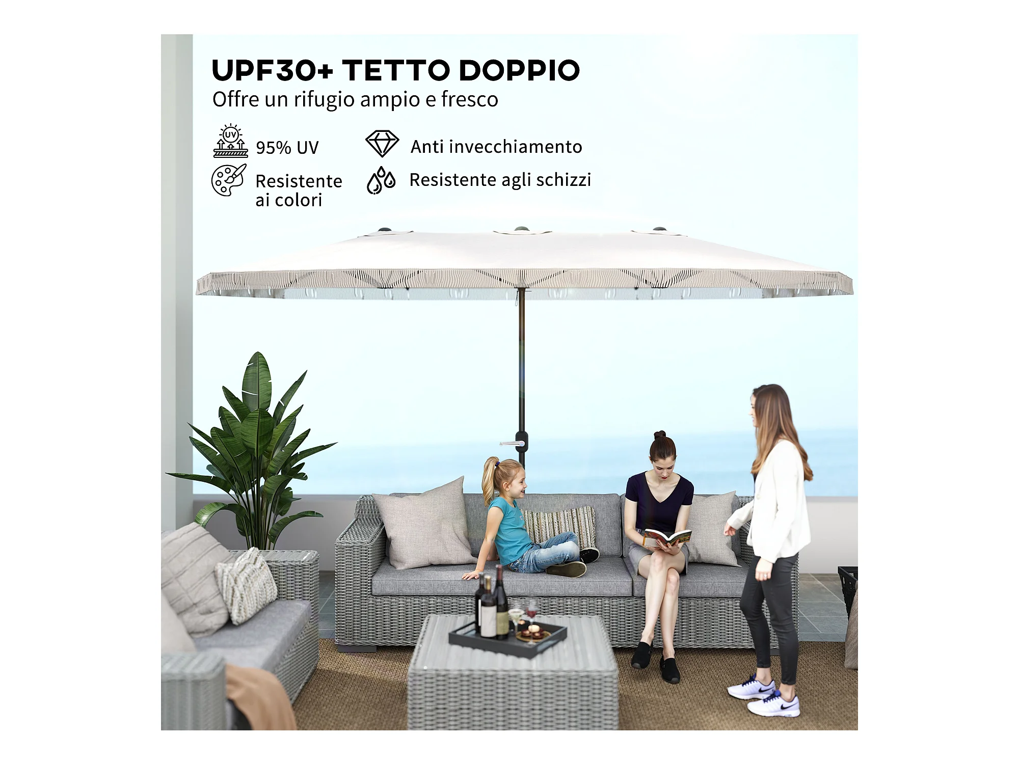 Ombrellone giardino doppio e manovella 285x147x227cm beige