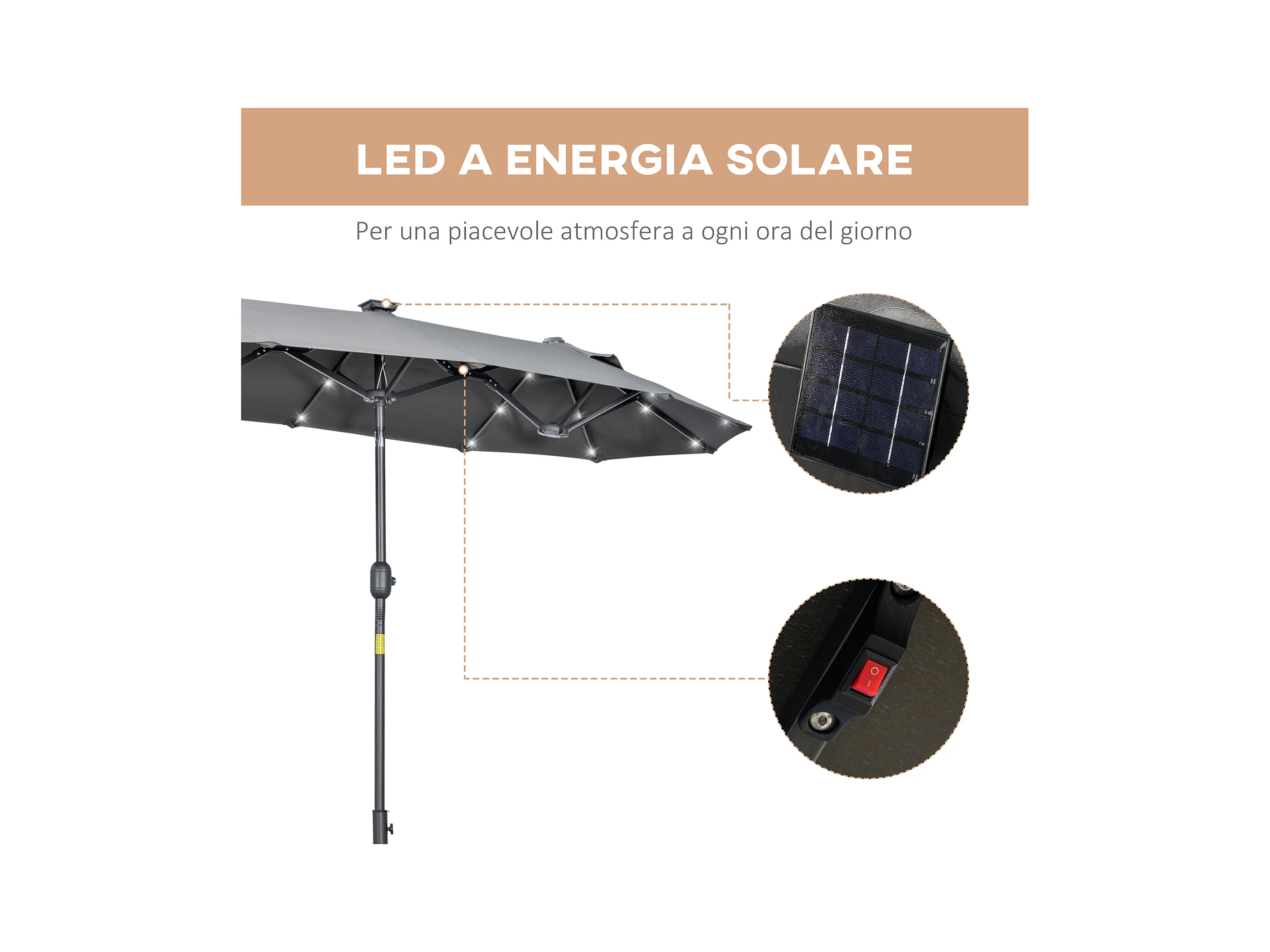 Ombrellone doppio con luci solari 295x150x219cm grigio