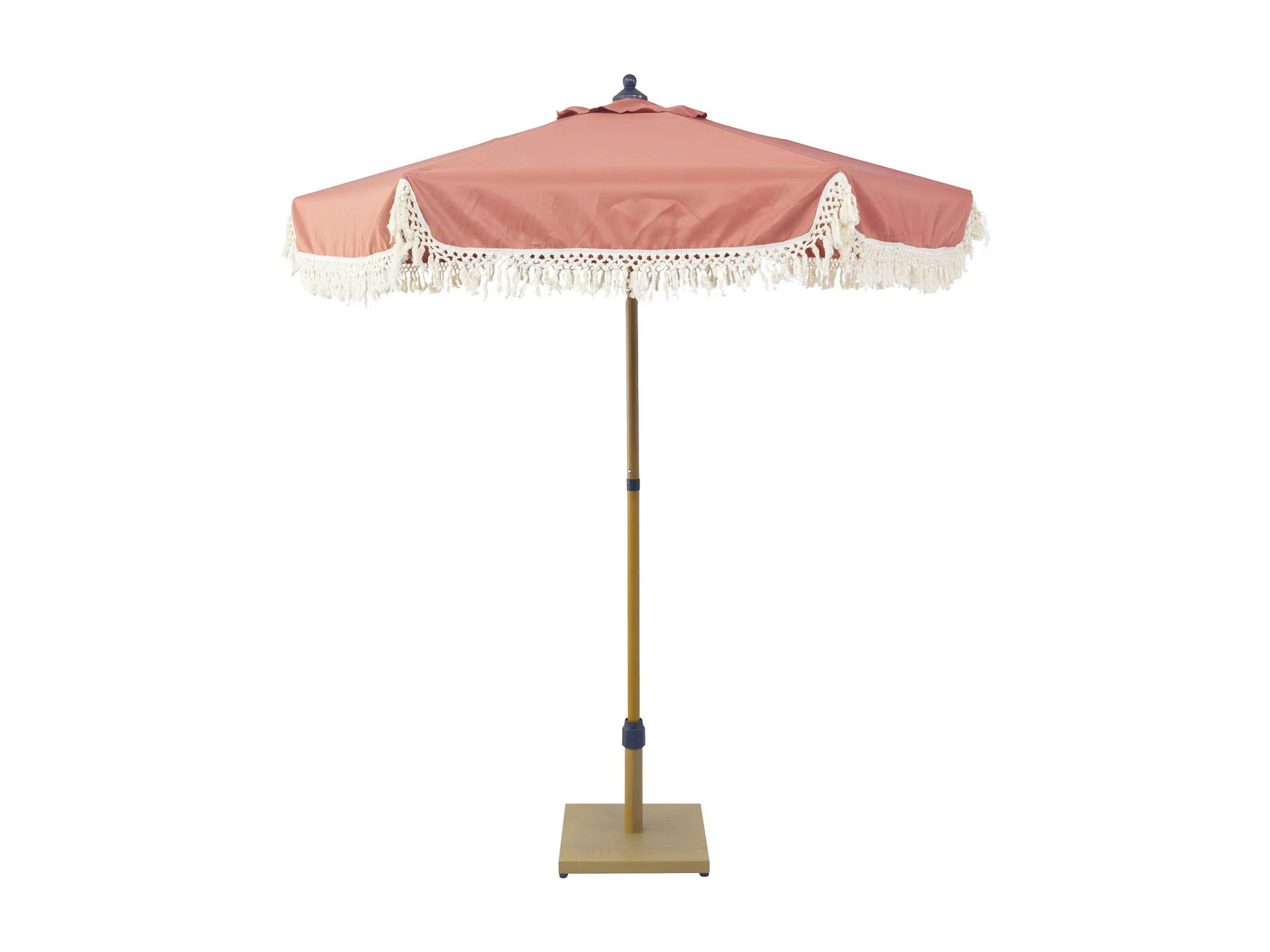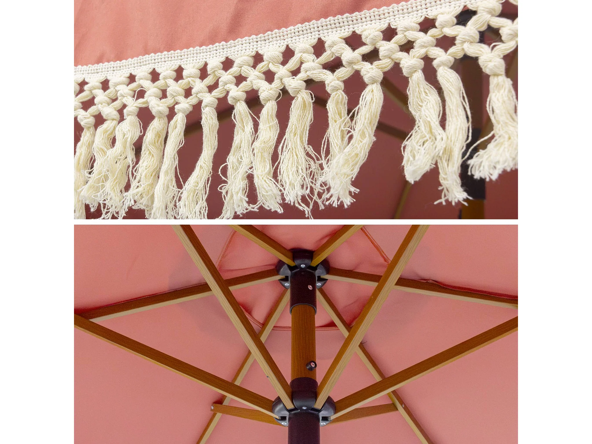 Ombrellone rotondo retto con frange, ø2m, terracotta