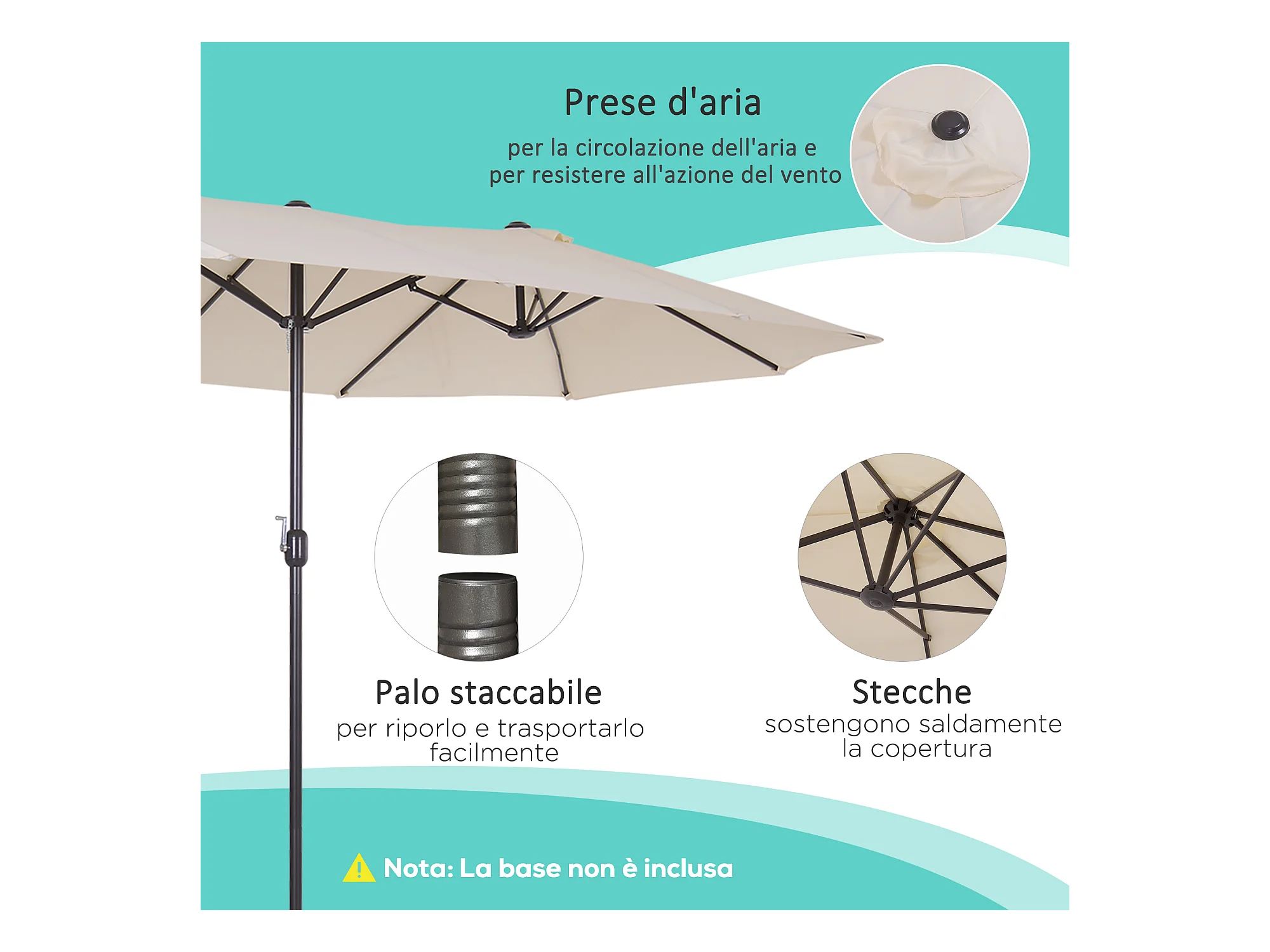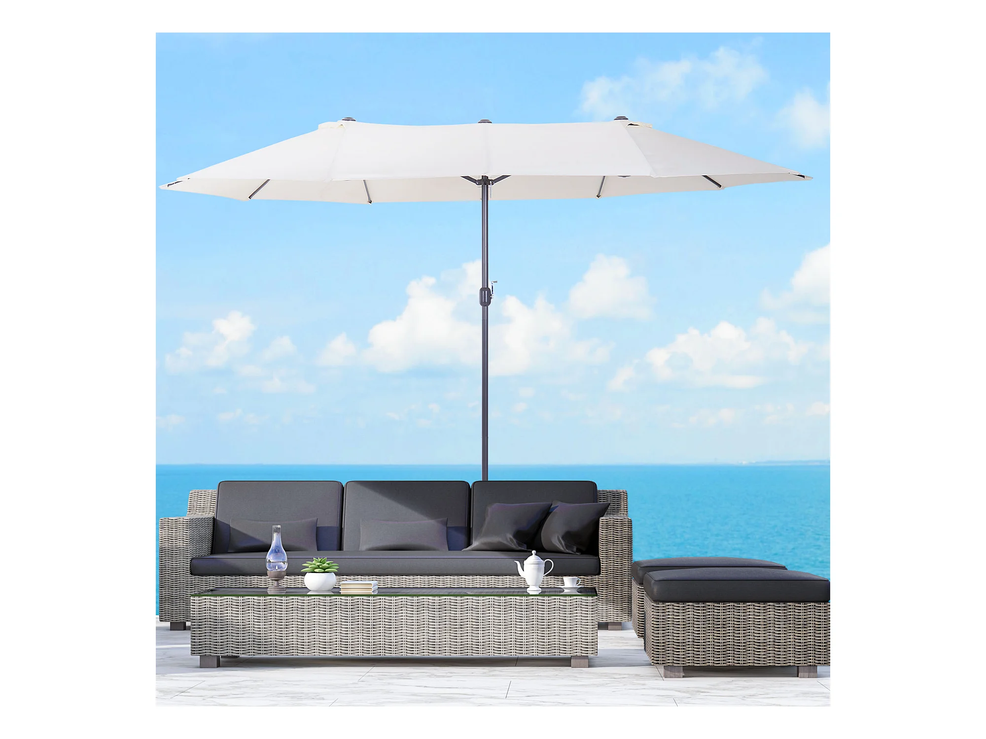 Ombrellone doppio a 12 stecche con manovella bianco crema