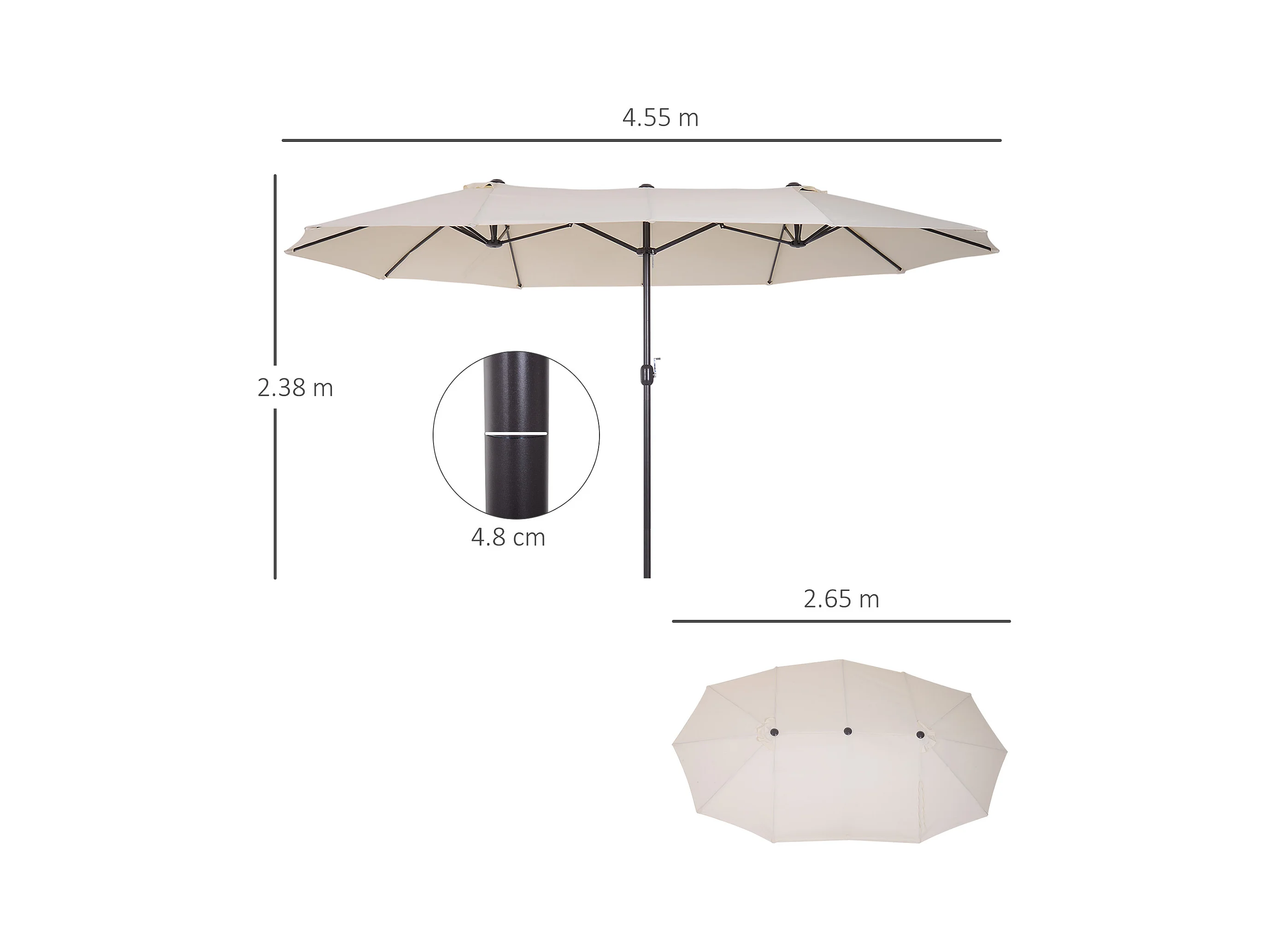 Ombrellone doppio con apertura a manovella 455x265x238 cm beige