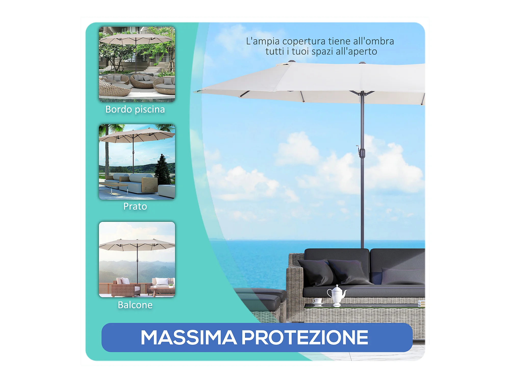 Ombrellone giardino doppio e manovella 285x147x227cm beige