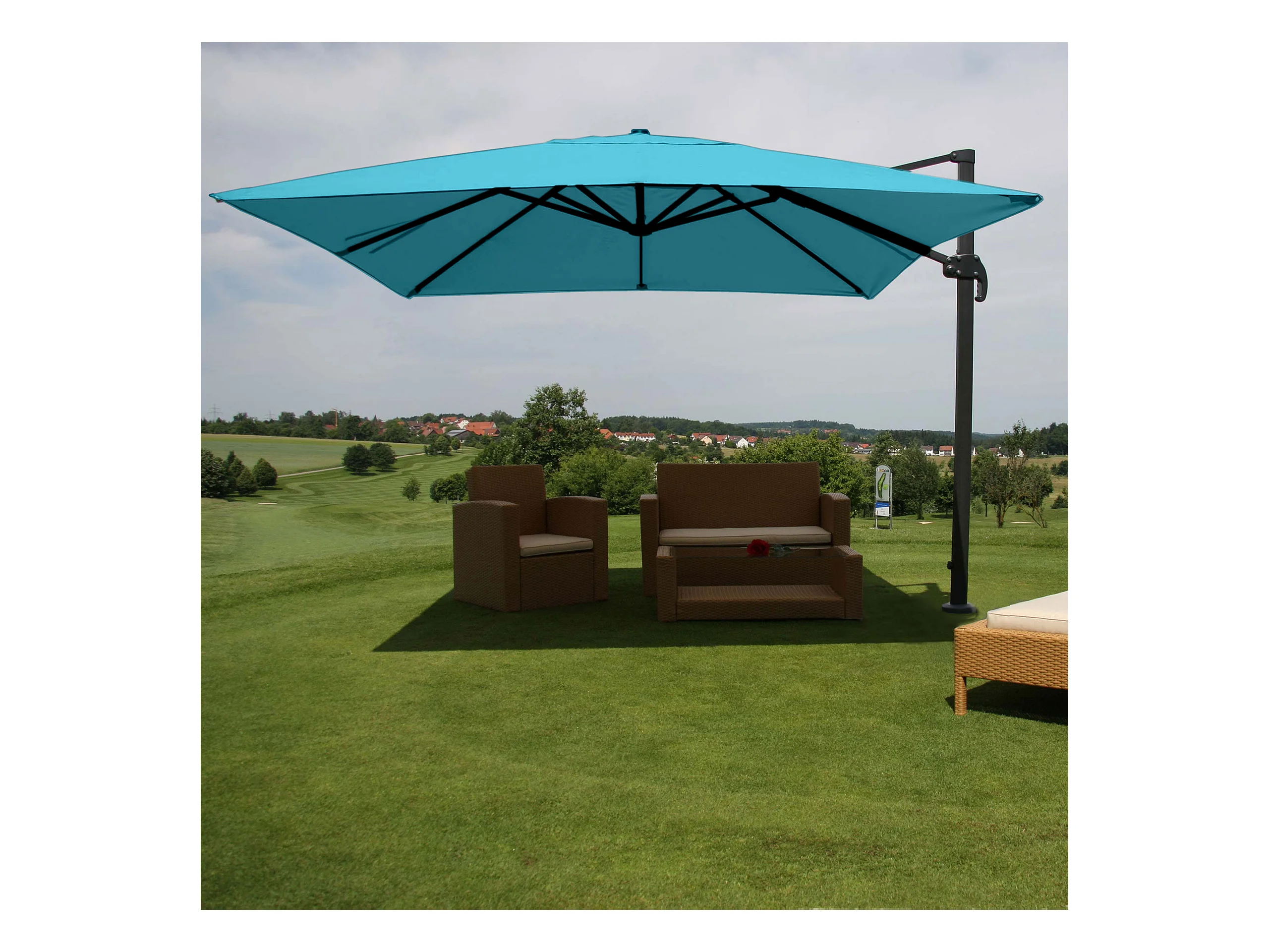 Ombrellone parasole decentrato MCW-A96 3x4m azzurro girevole senza base