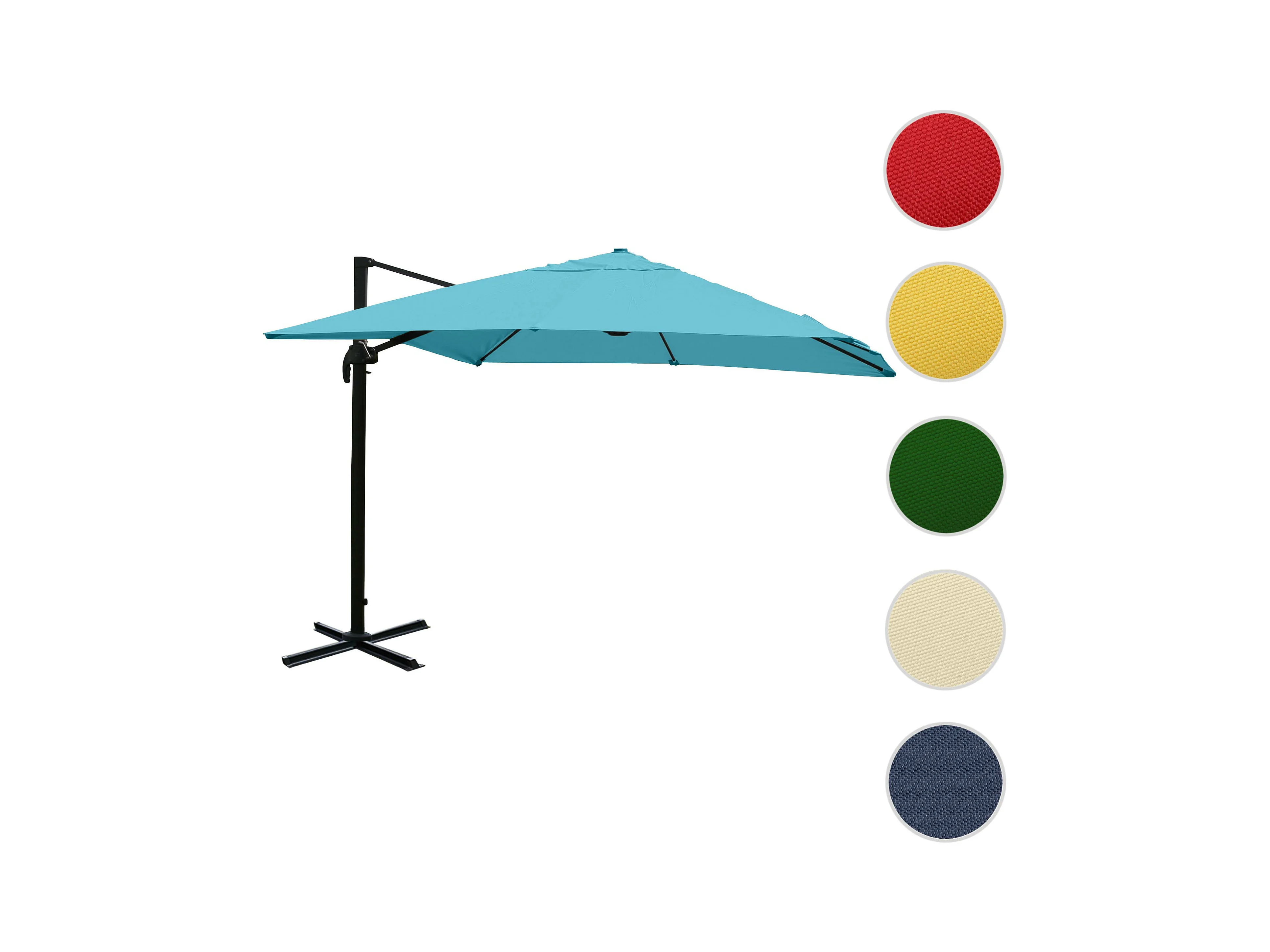 Ombrellone parasole decentrato MCW-A96 3,5x3,5m alluminio azzurro girevole con base