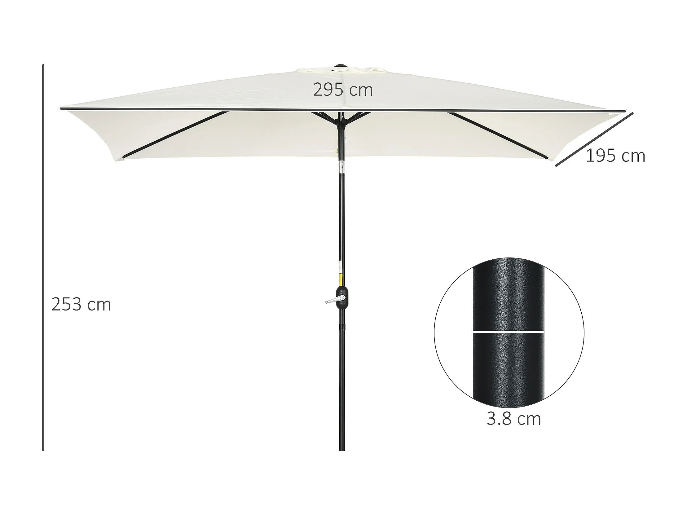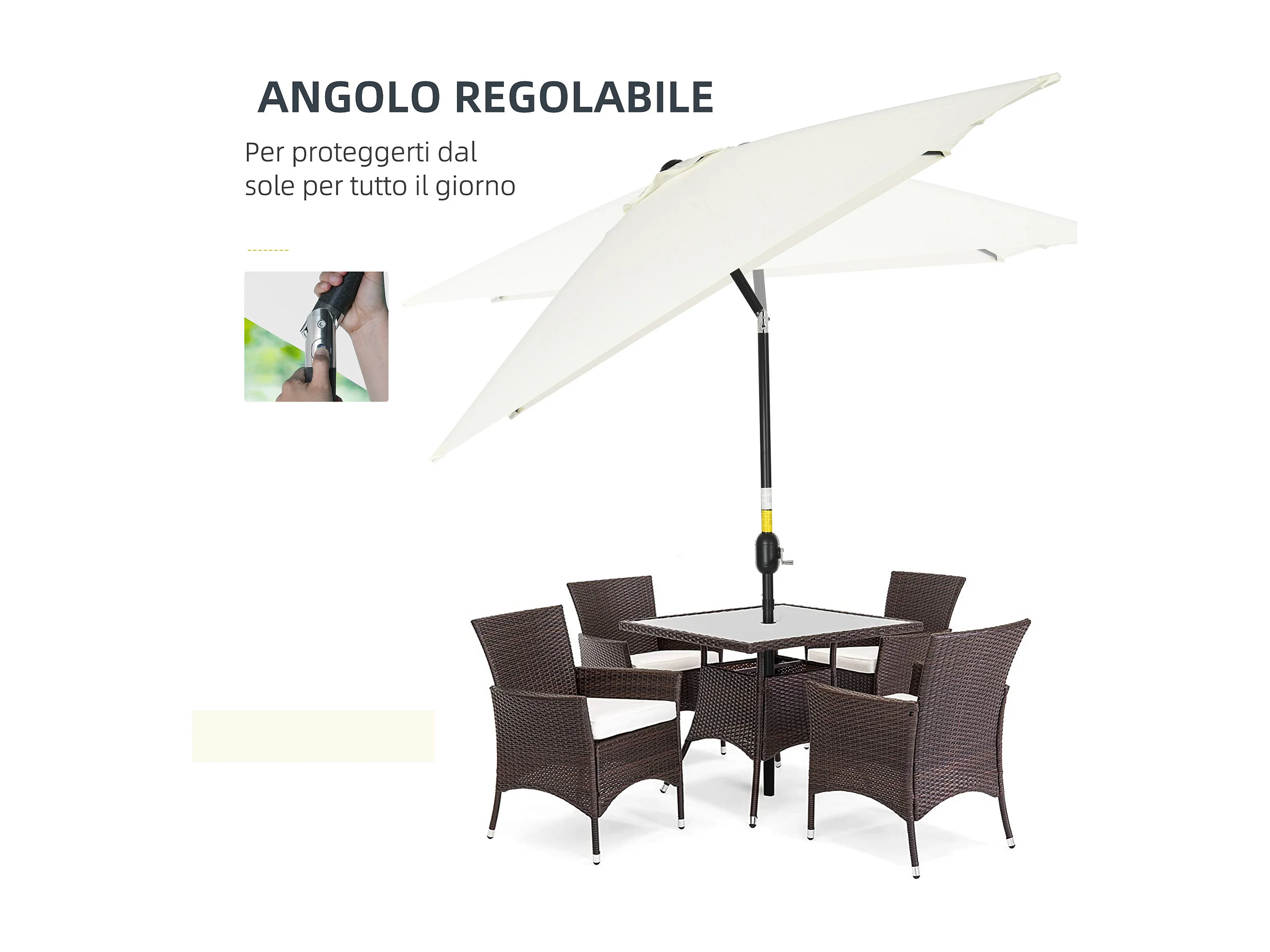 Ombrellone rettangolare 2x3 m pieghevole con manovella bianco crema