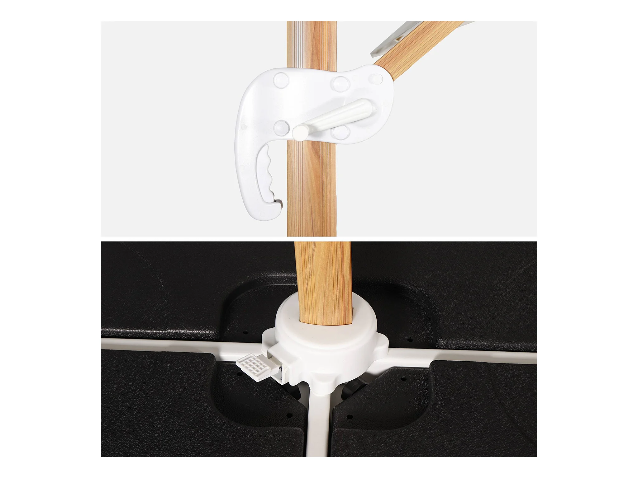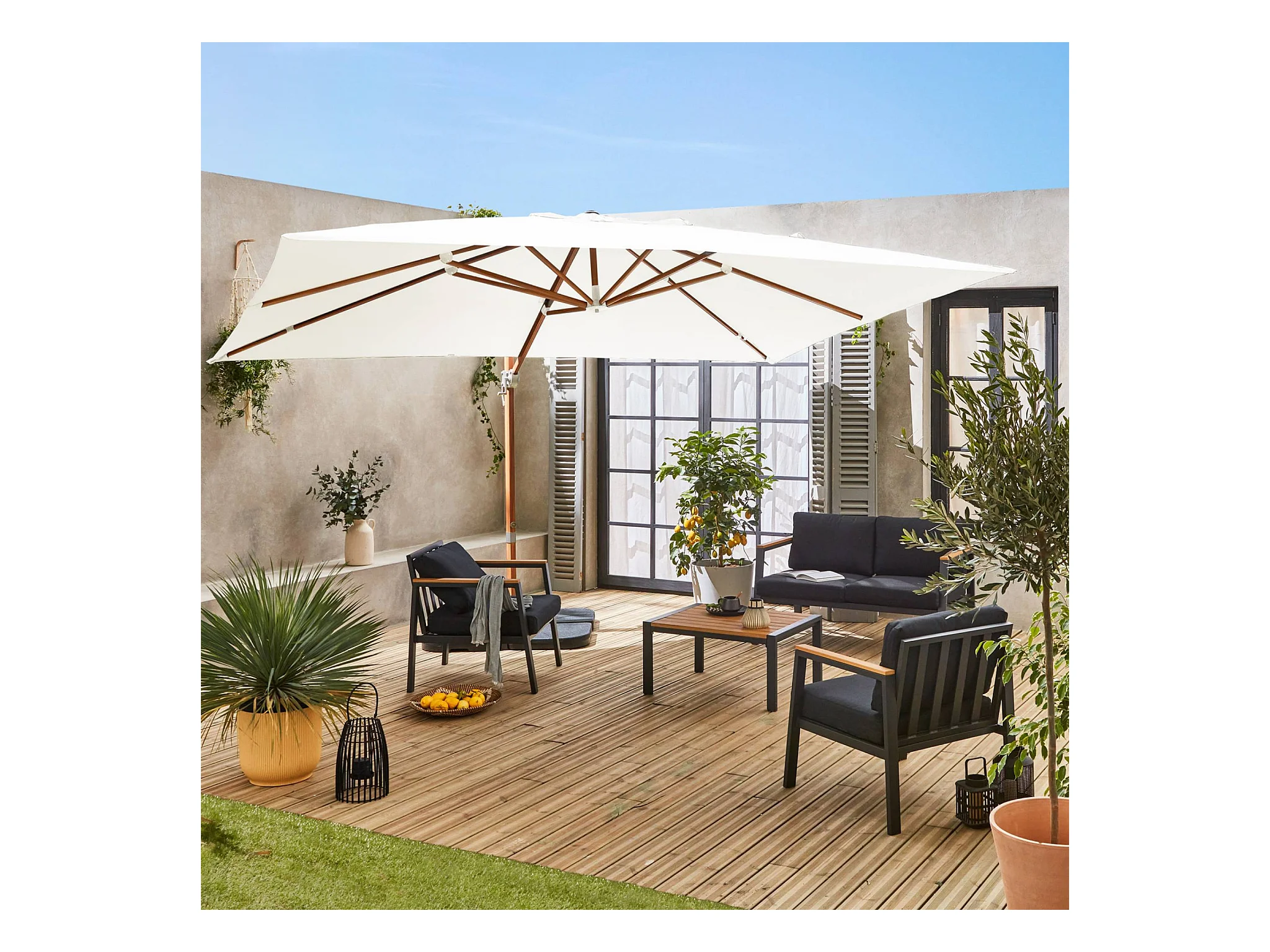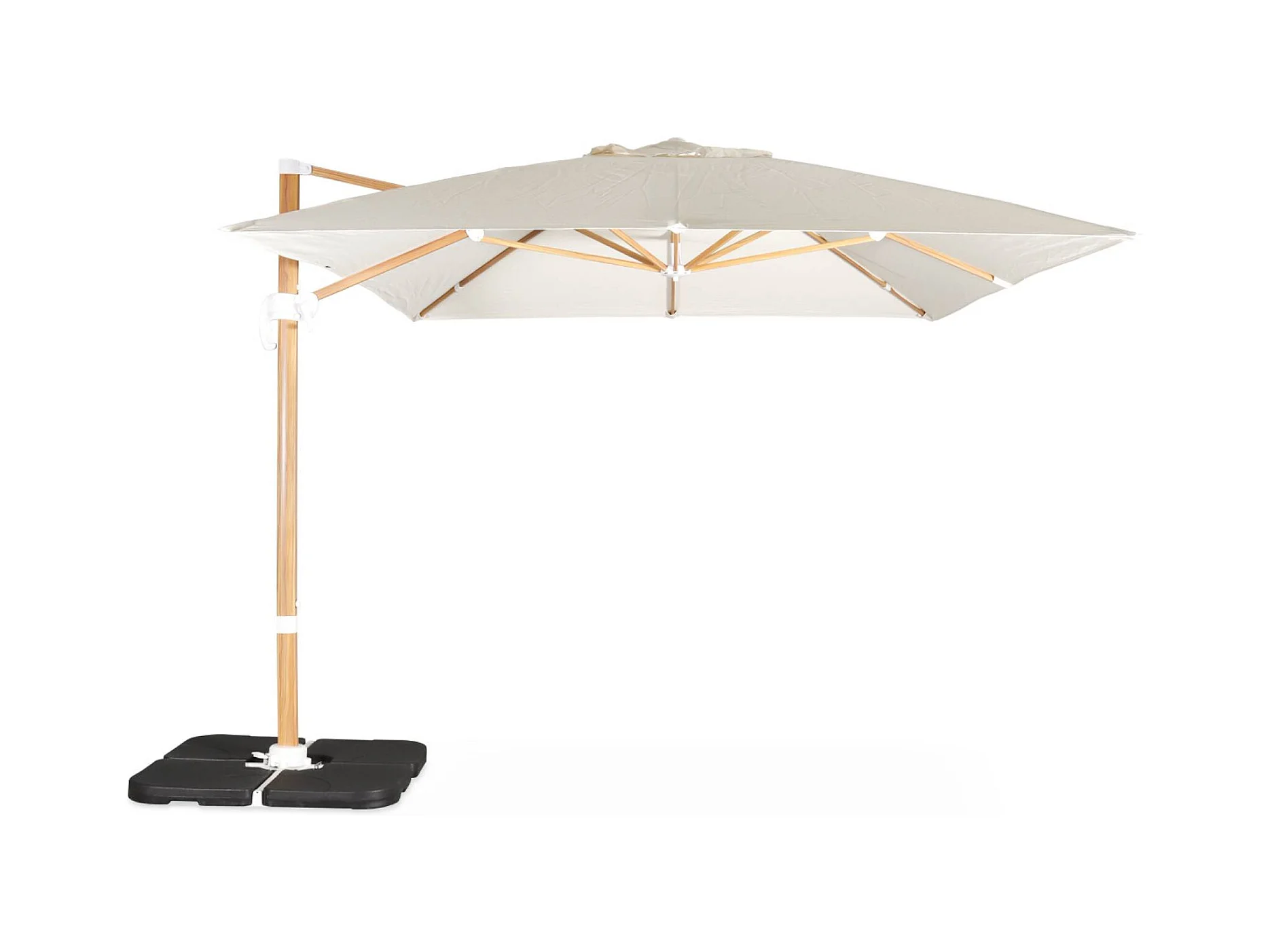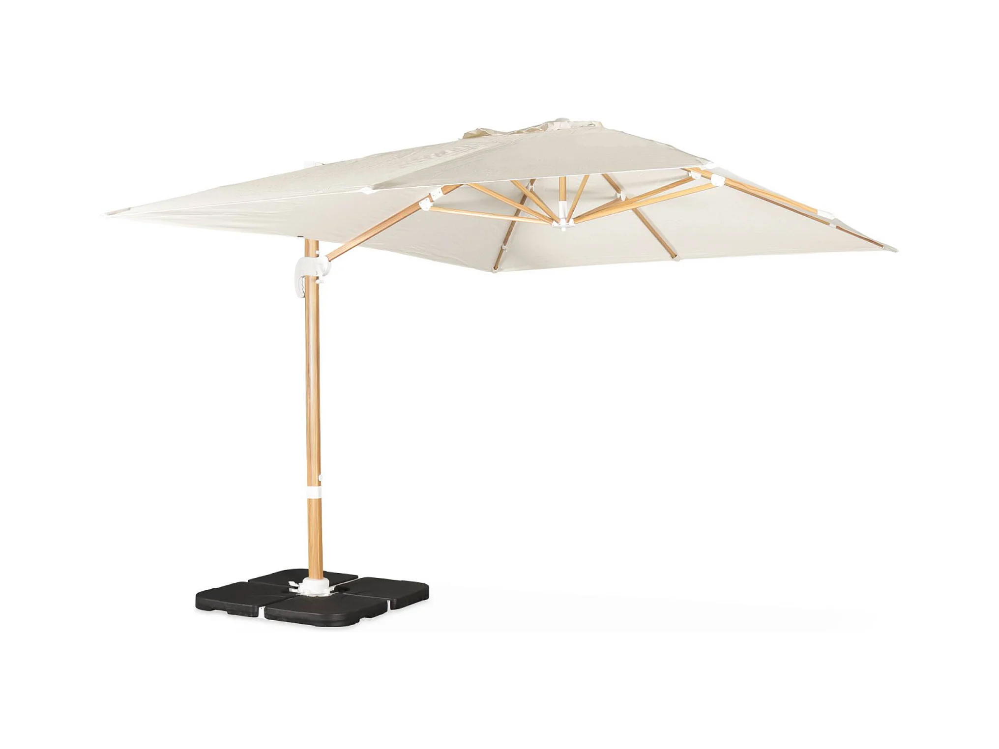 Ombrellone rettangolare decentrato 3x4 m con palo effetto legno e basi