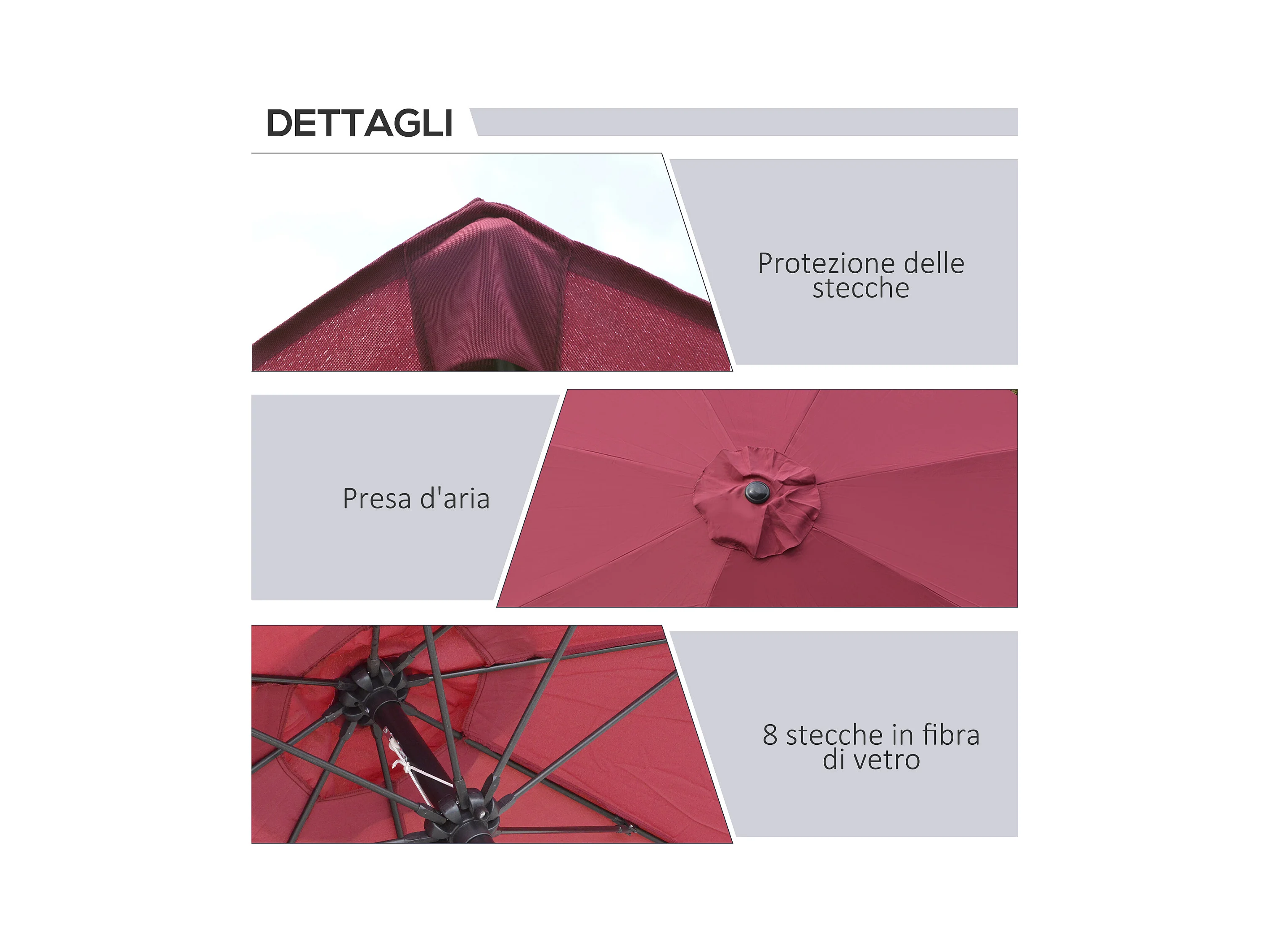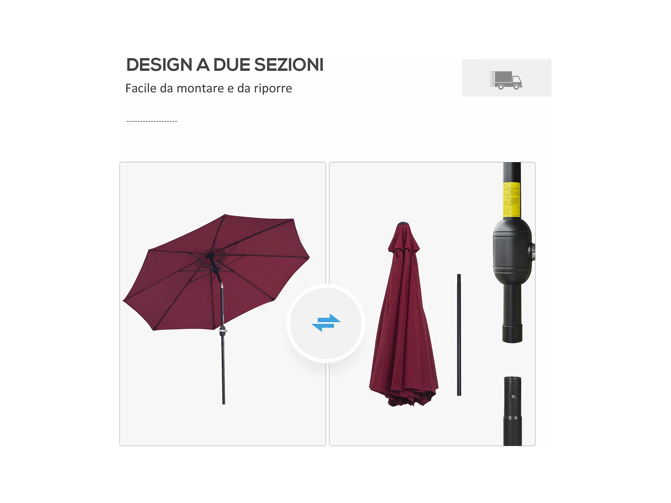 Ombrellone rotondo e regolabile su 3 angolazioni rosso vino e nero