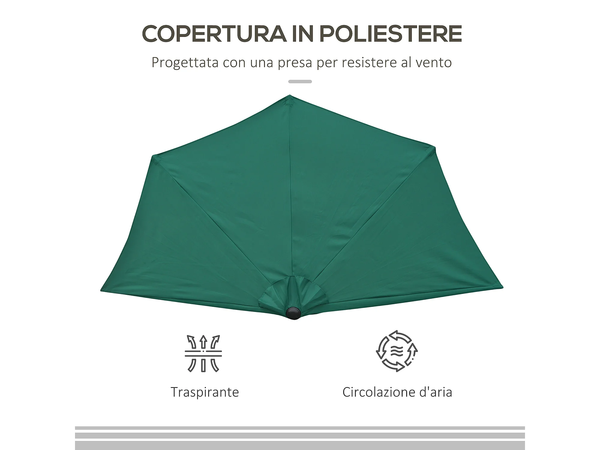 Ombrellone semicircolare con apertura a manovella 2.7x2.4 m