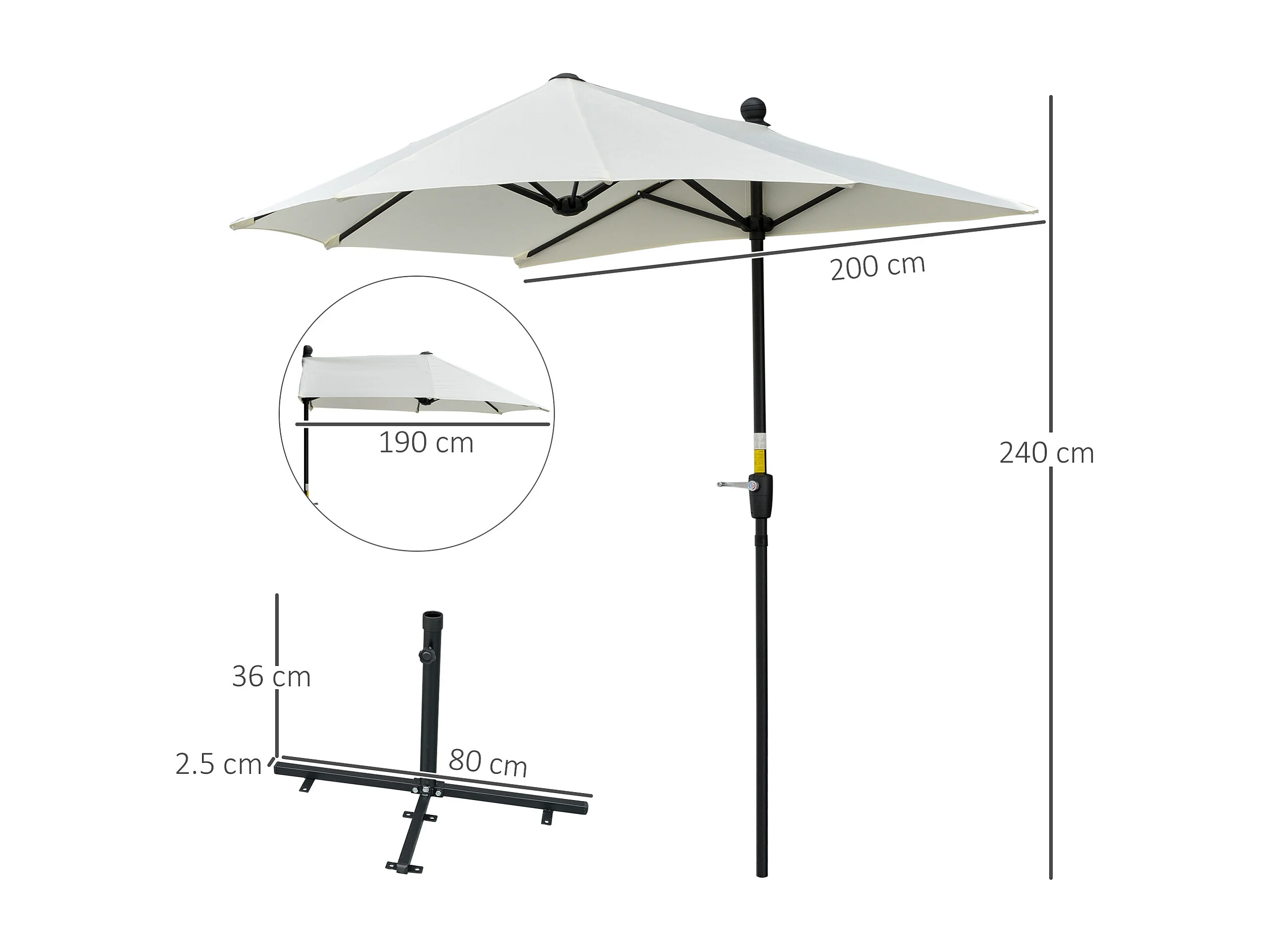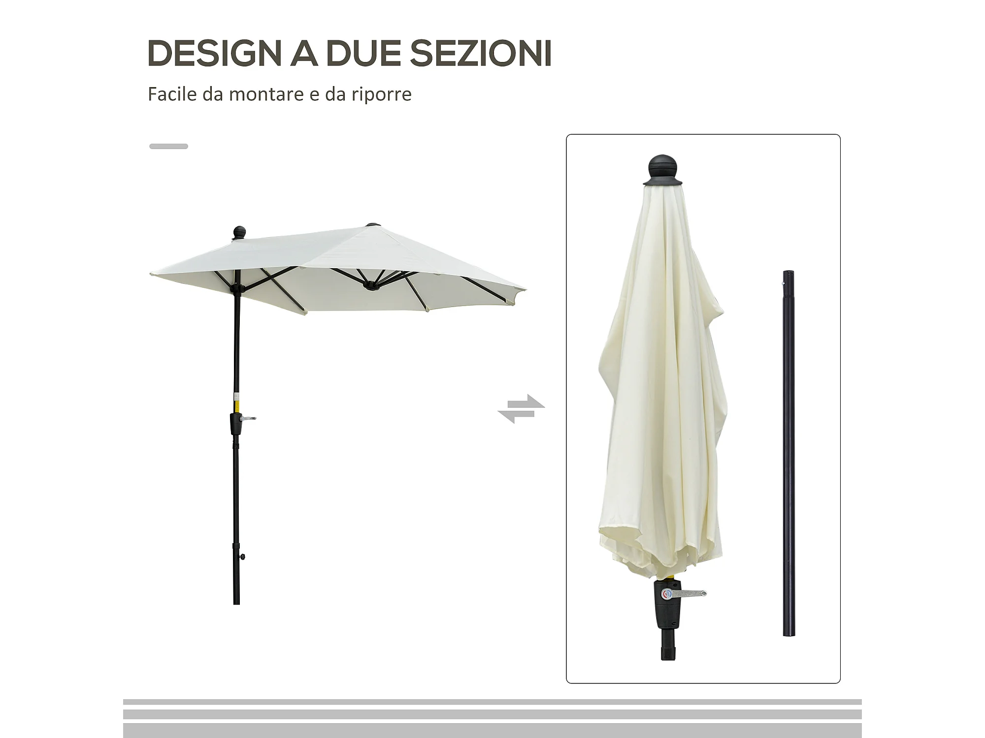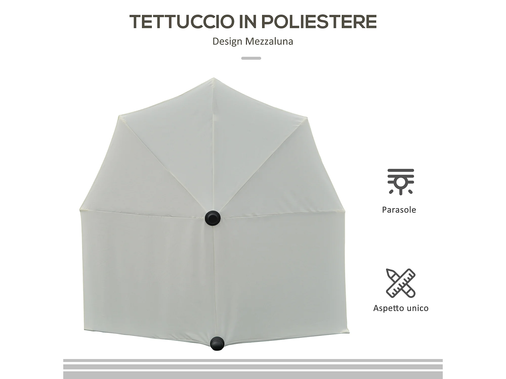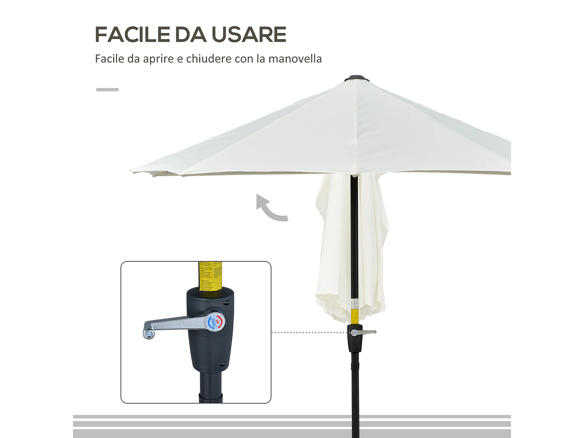 Ombrellone semicircolare con manovella e telo anti uv crema