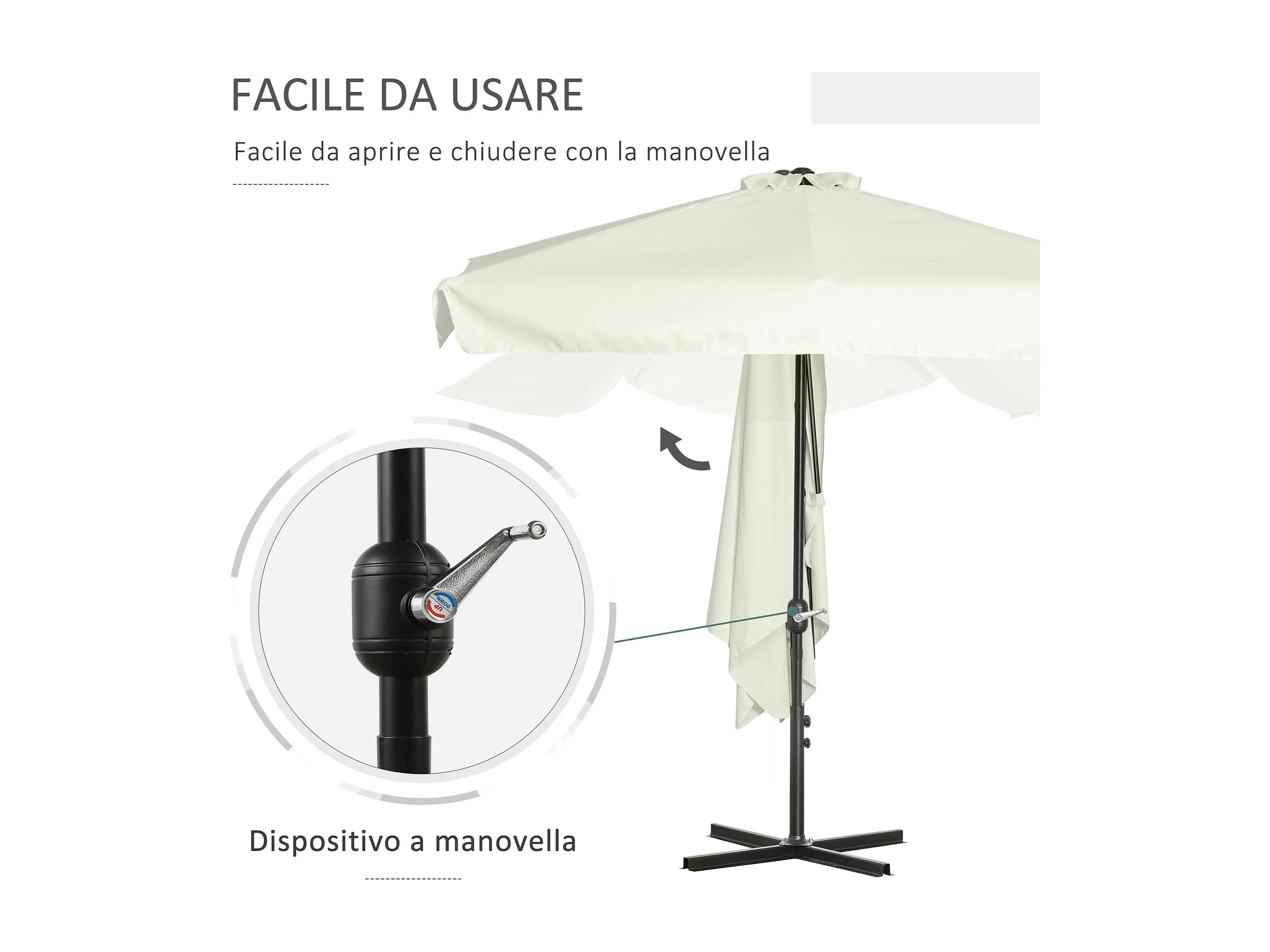 Ombrellone rotondo inclinabile da giardino con manovella bianco crema