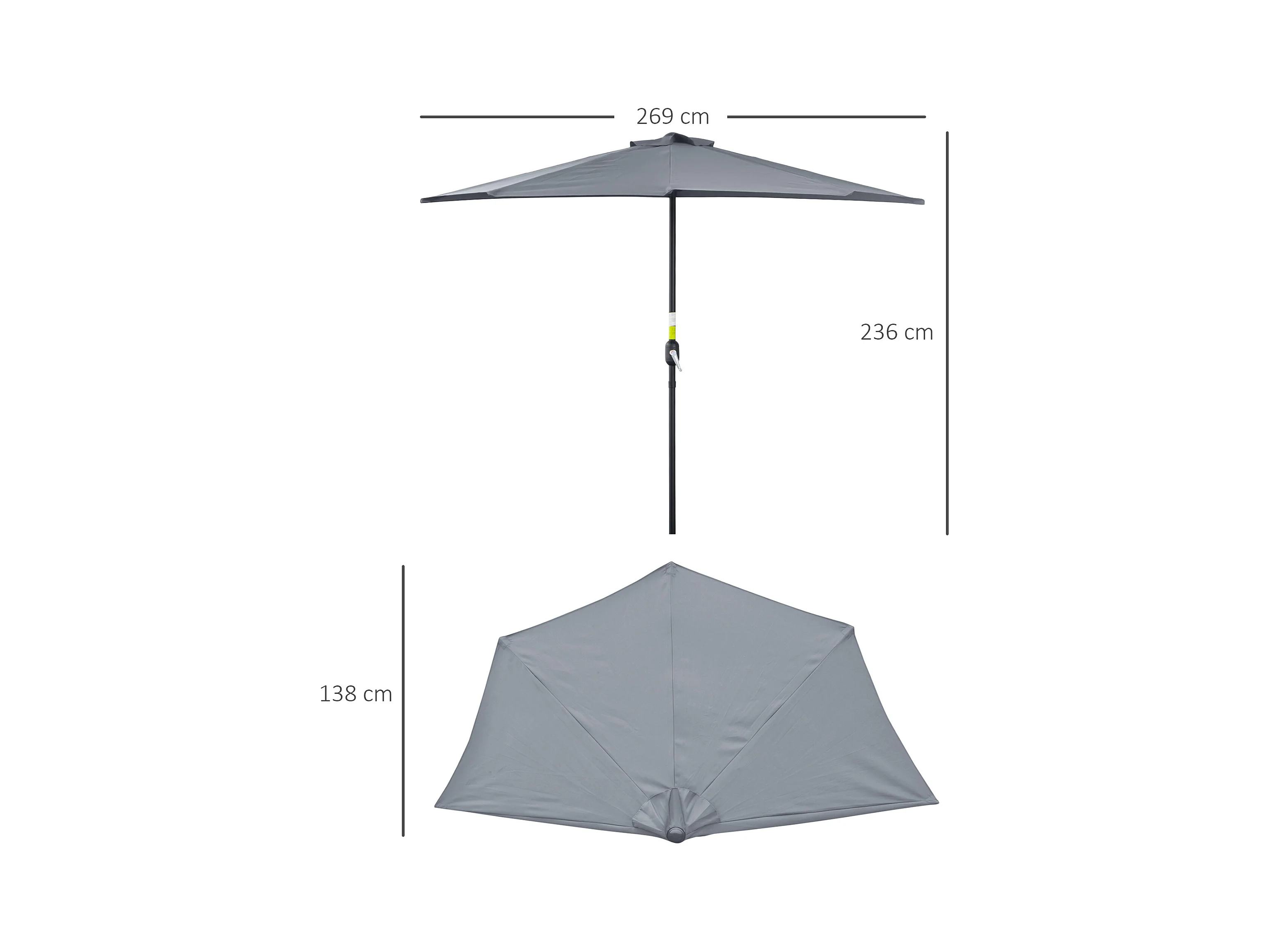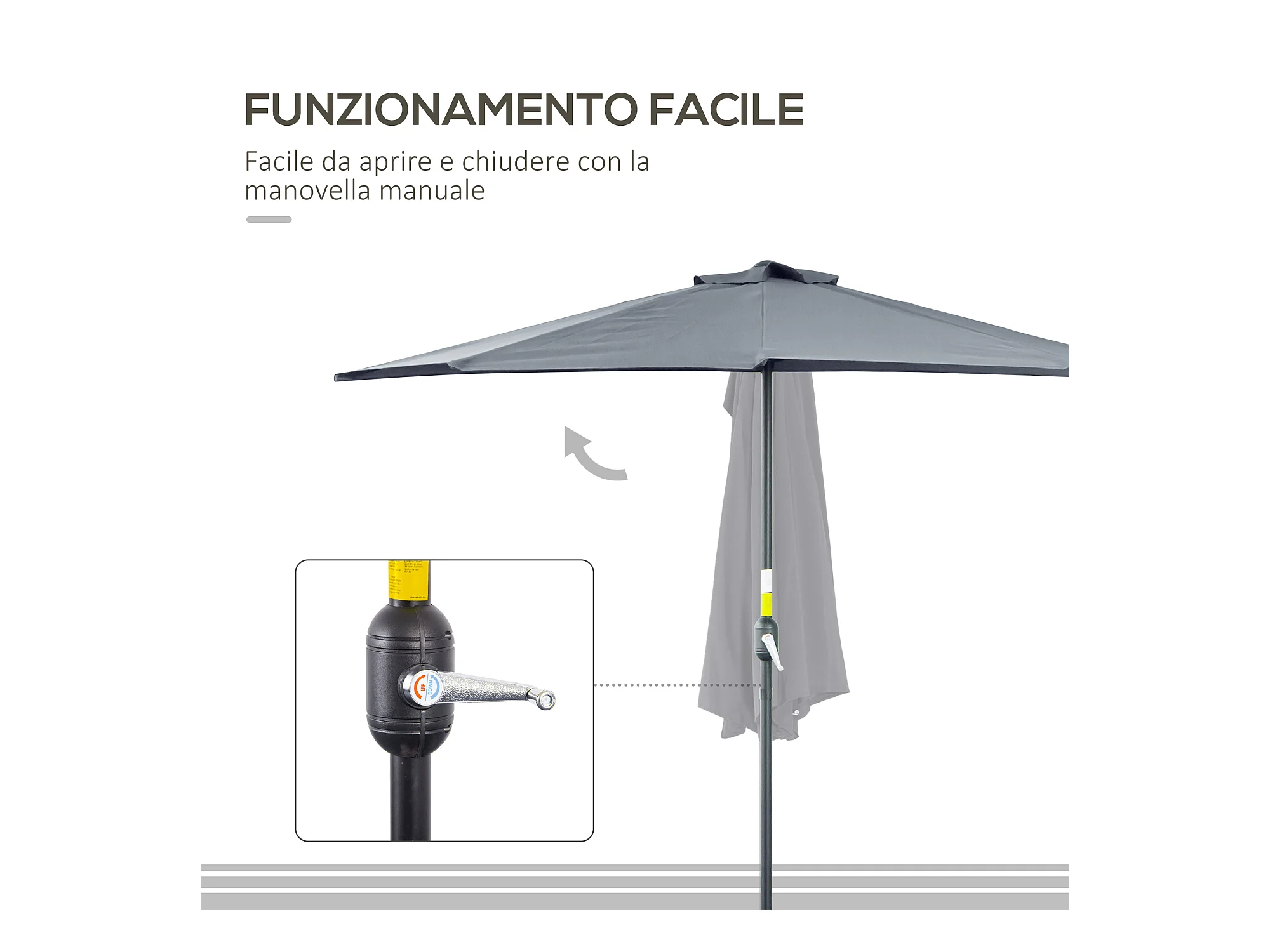 Ombrellone semicircolare impermeabile anti uv 269x138x236cm grigio