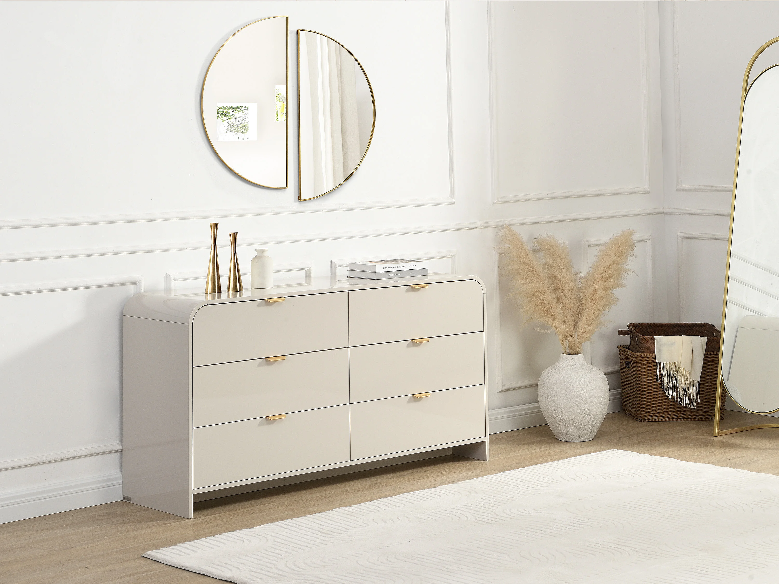 Cassettiera 6 cassetti MDF Beige e dorato - ORALINO