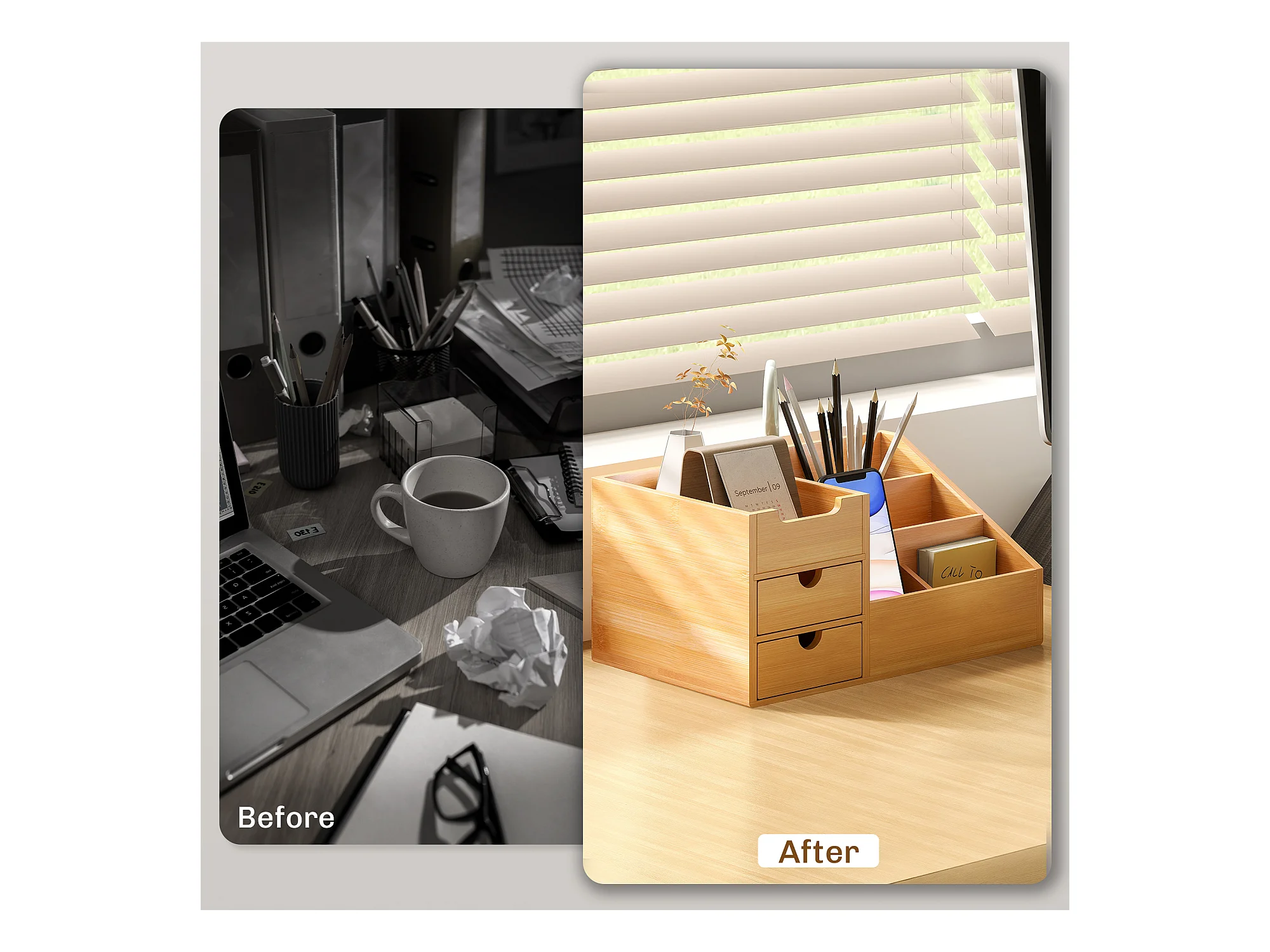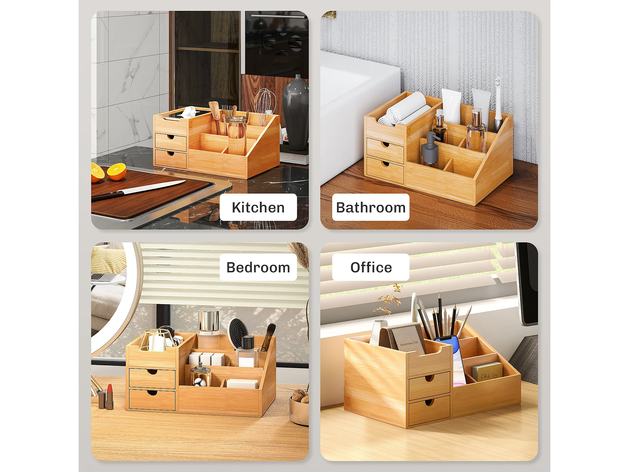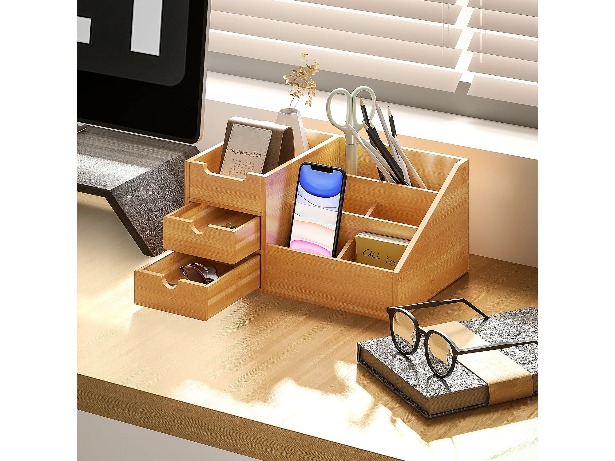 Organizer da scrivania con 2 cassetti e 7 scomparti in bambù