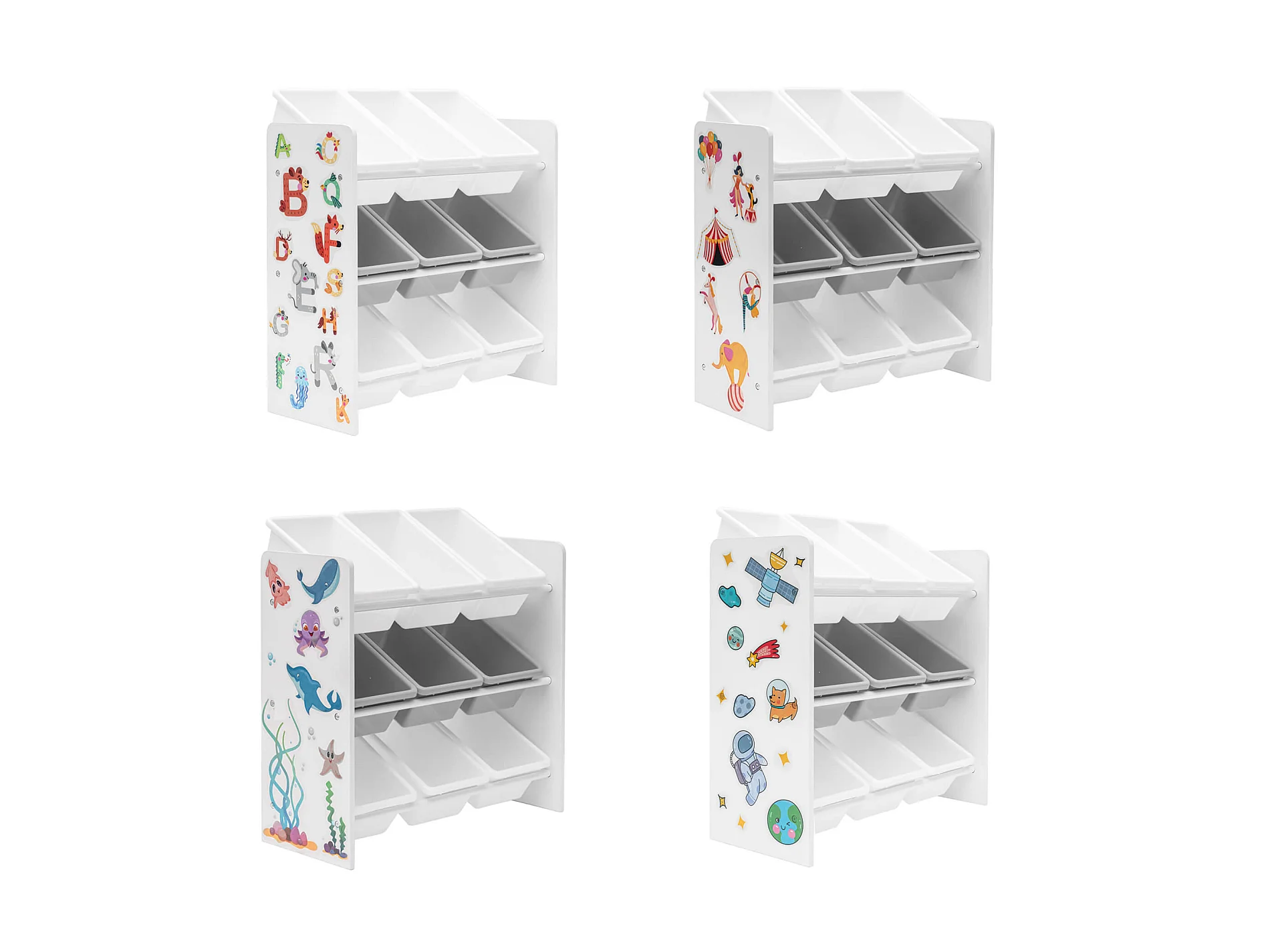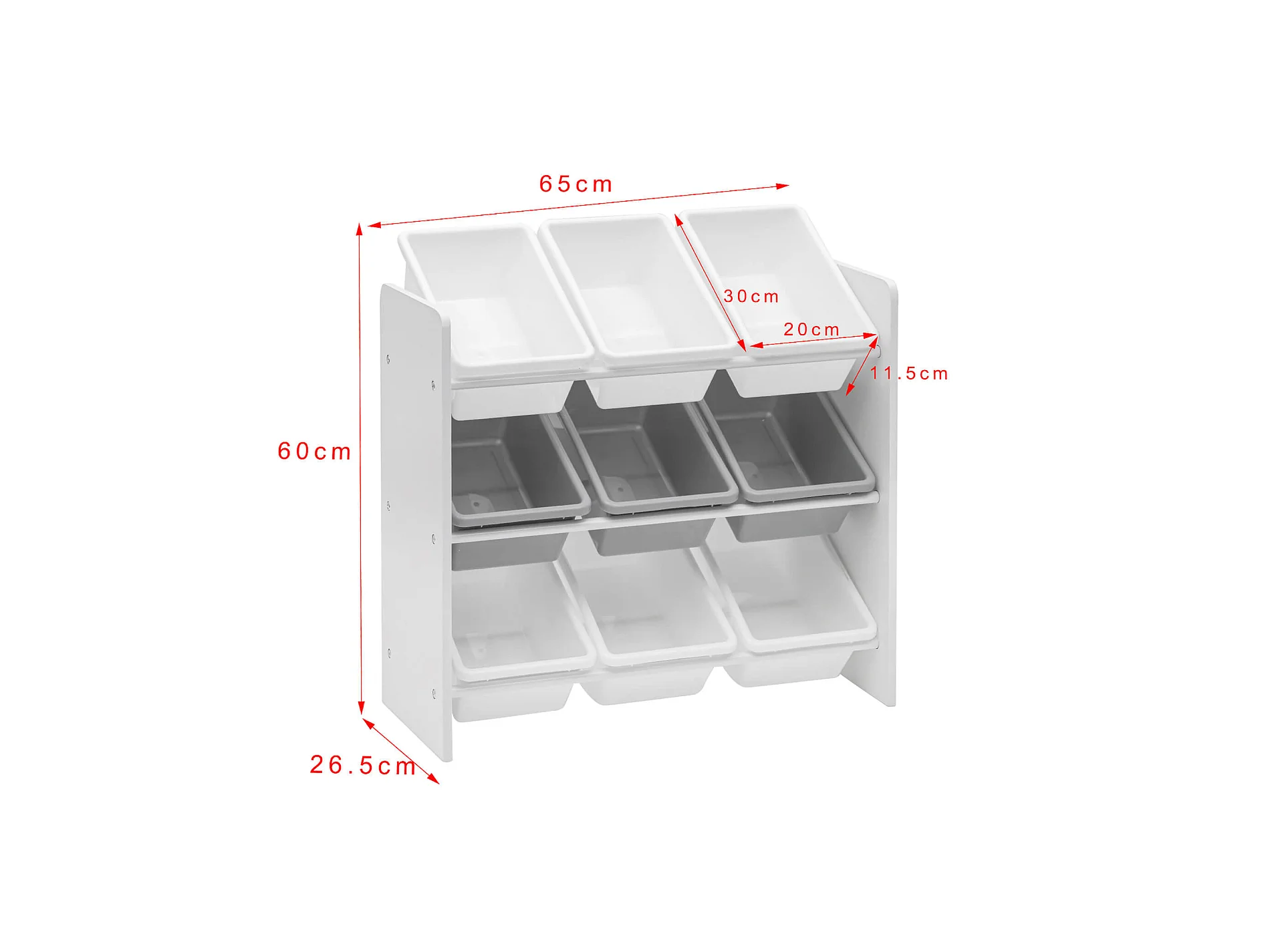 Organizer per Giocattoli Scaffale per Cameretta MDF Bianco con 9 Scatole Rimovibili