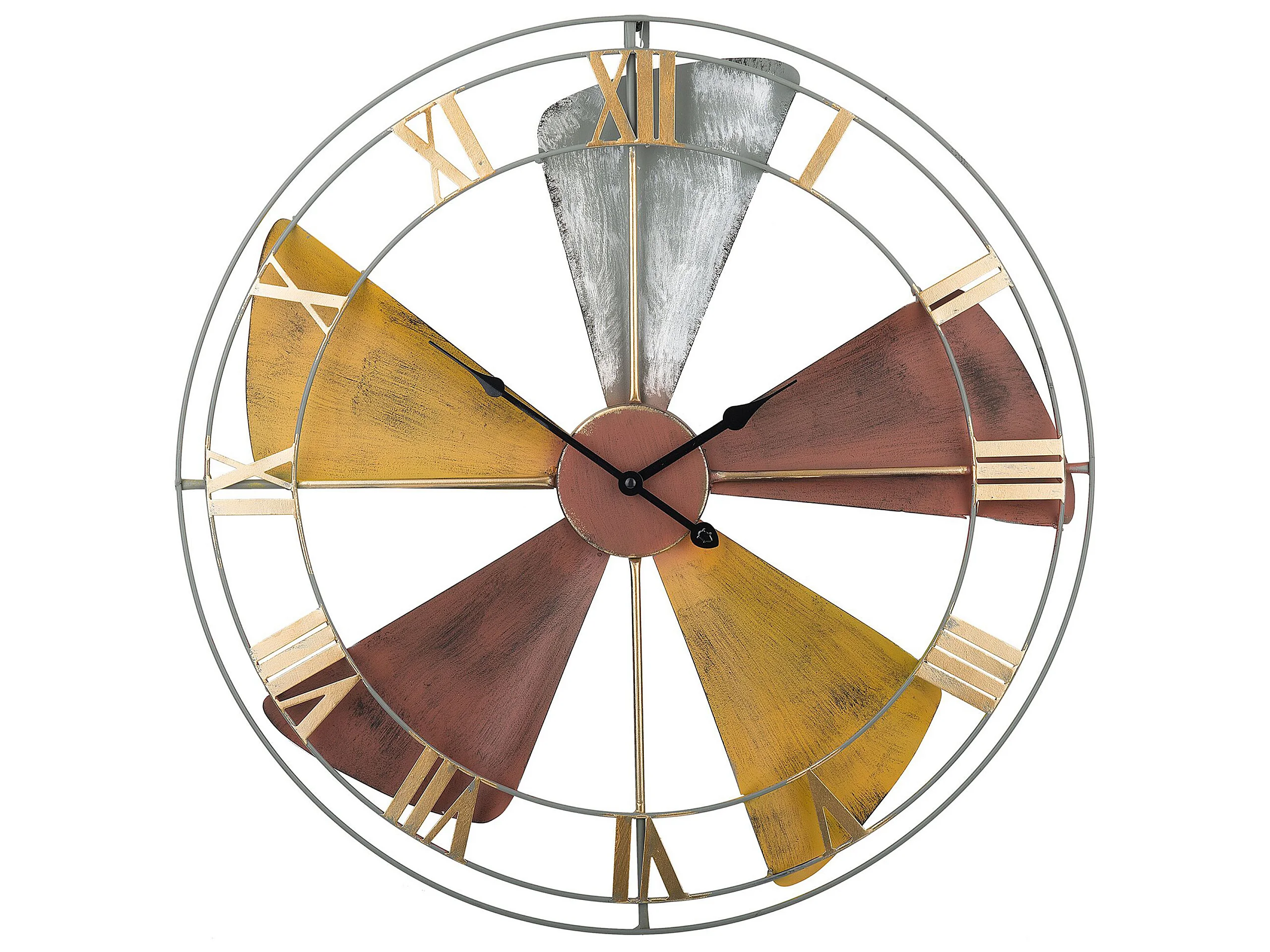 Grande Orologio da Parete Silenzioso in Metallo e Legno D 90 cm Multicolore