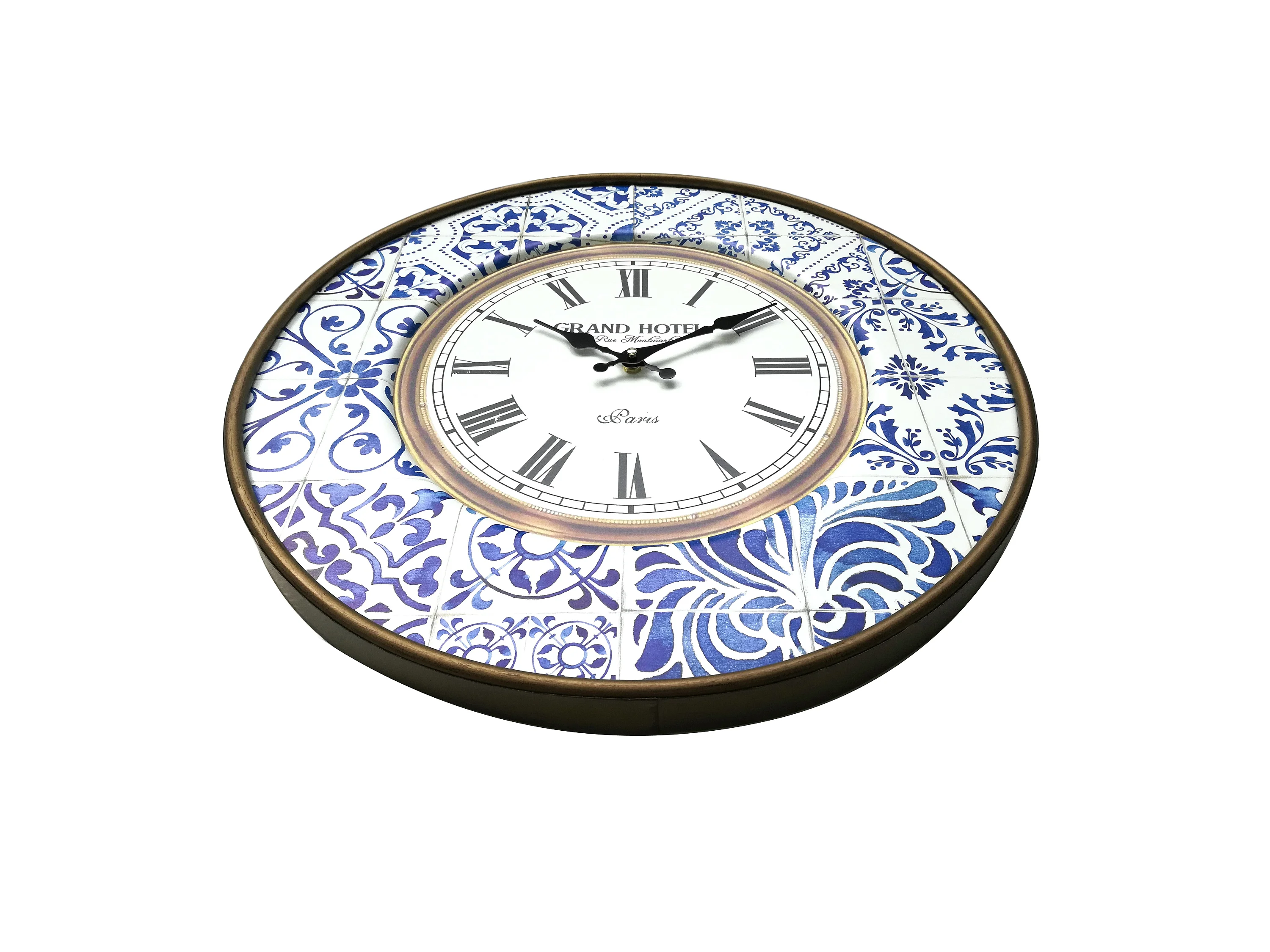 Orologio Decorativo Metallo Bianco Blu Analogico 50x50x4,5