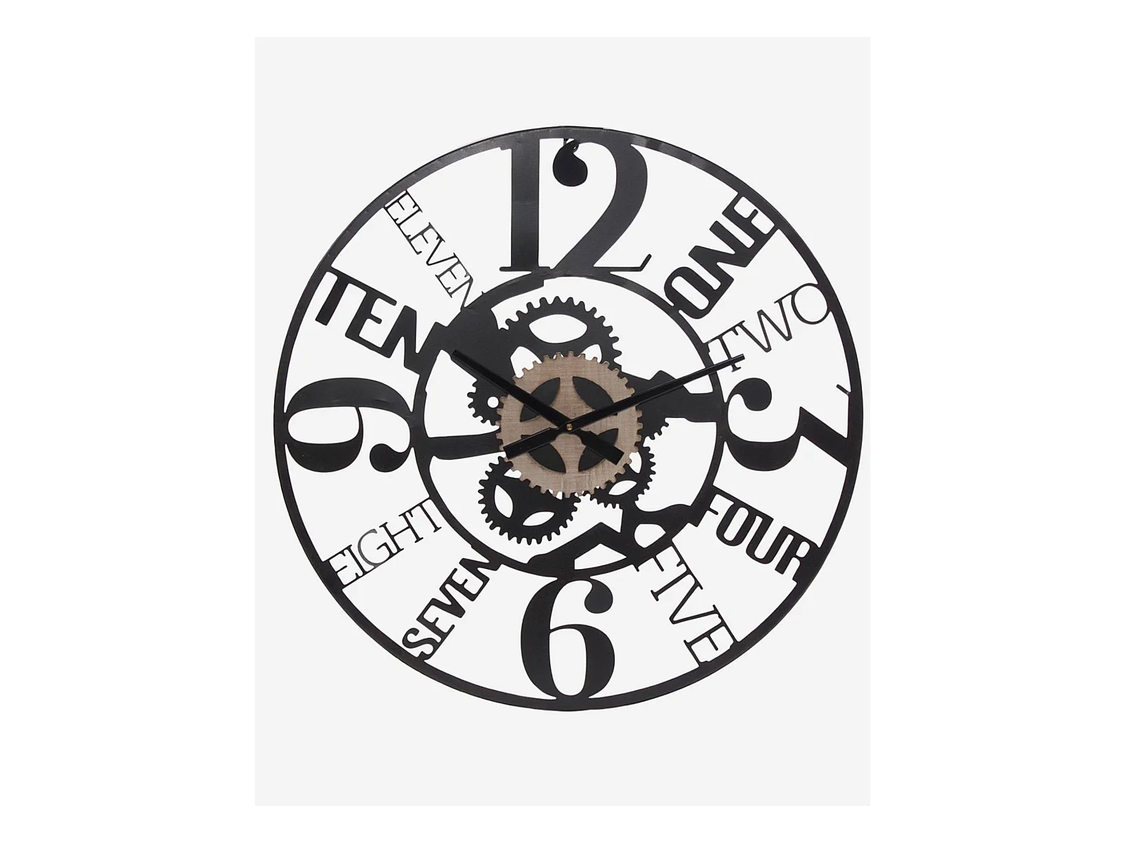 Orologio da parete in metallo e legno nero Ø cm 60x4,5