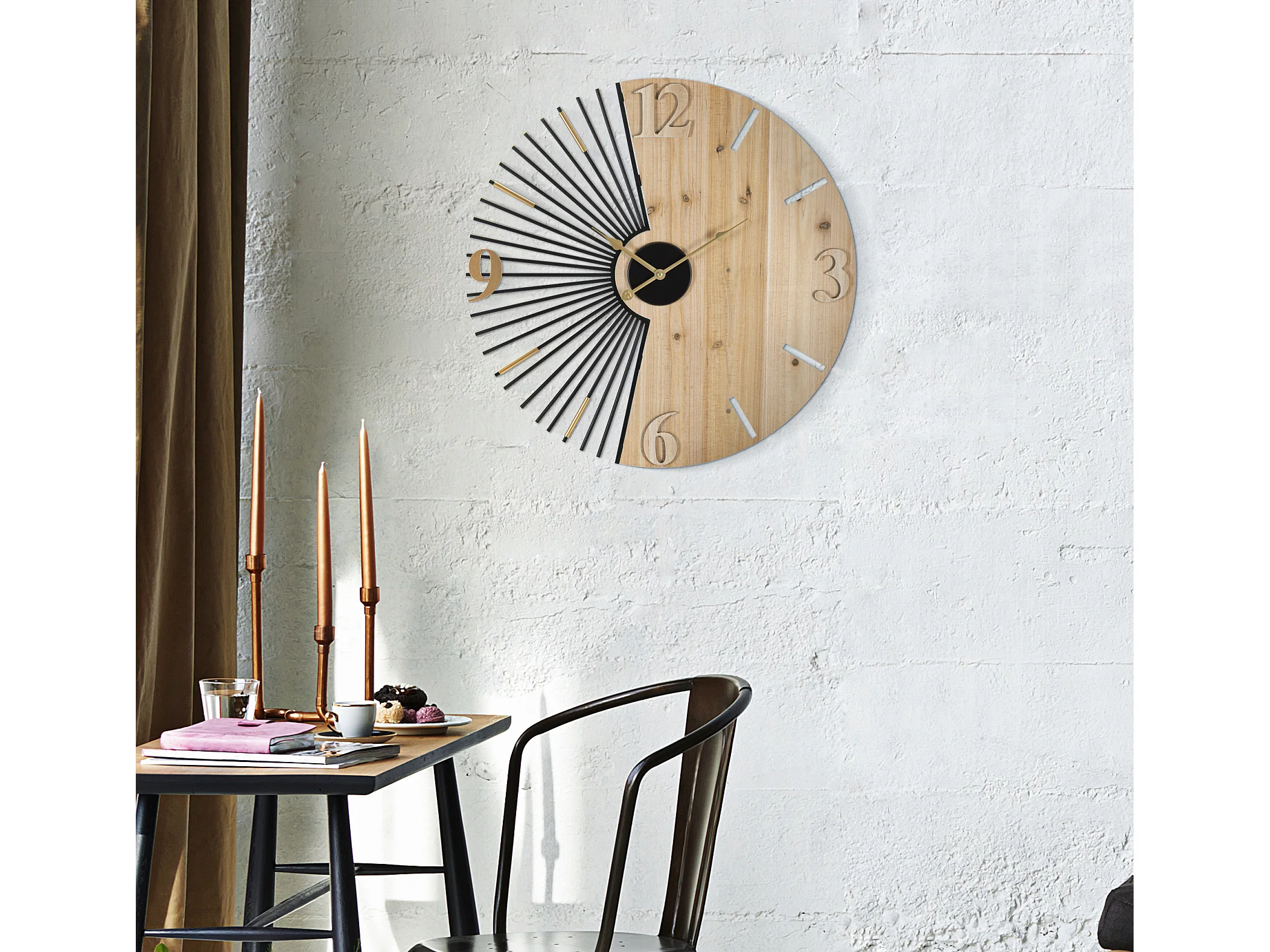 Orologio rotondo da parete in metallo e legno marrone Ø cm 60x3,5