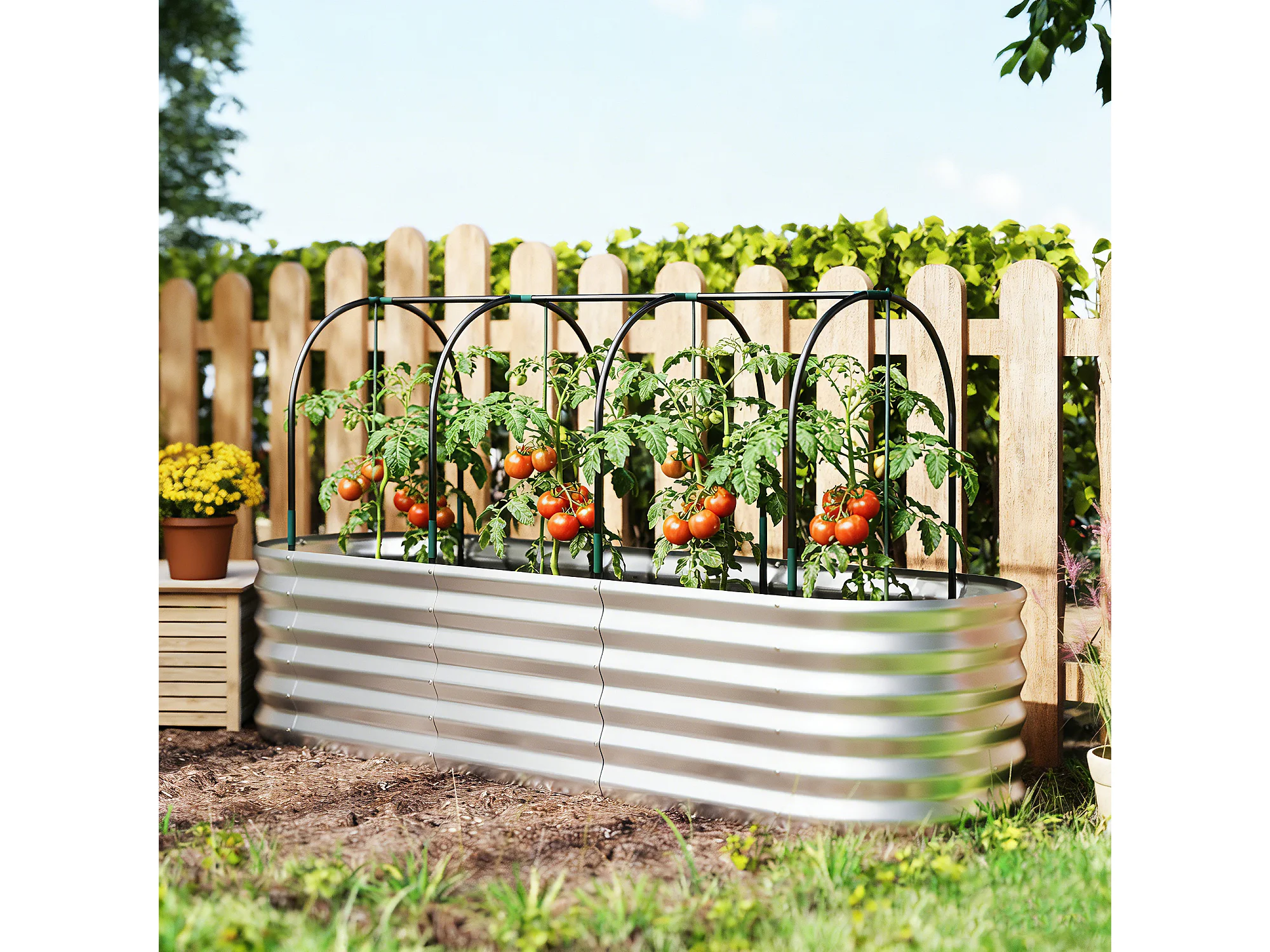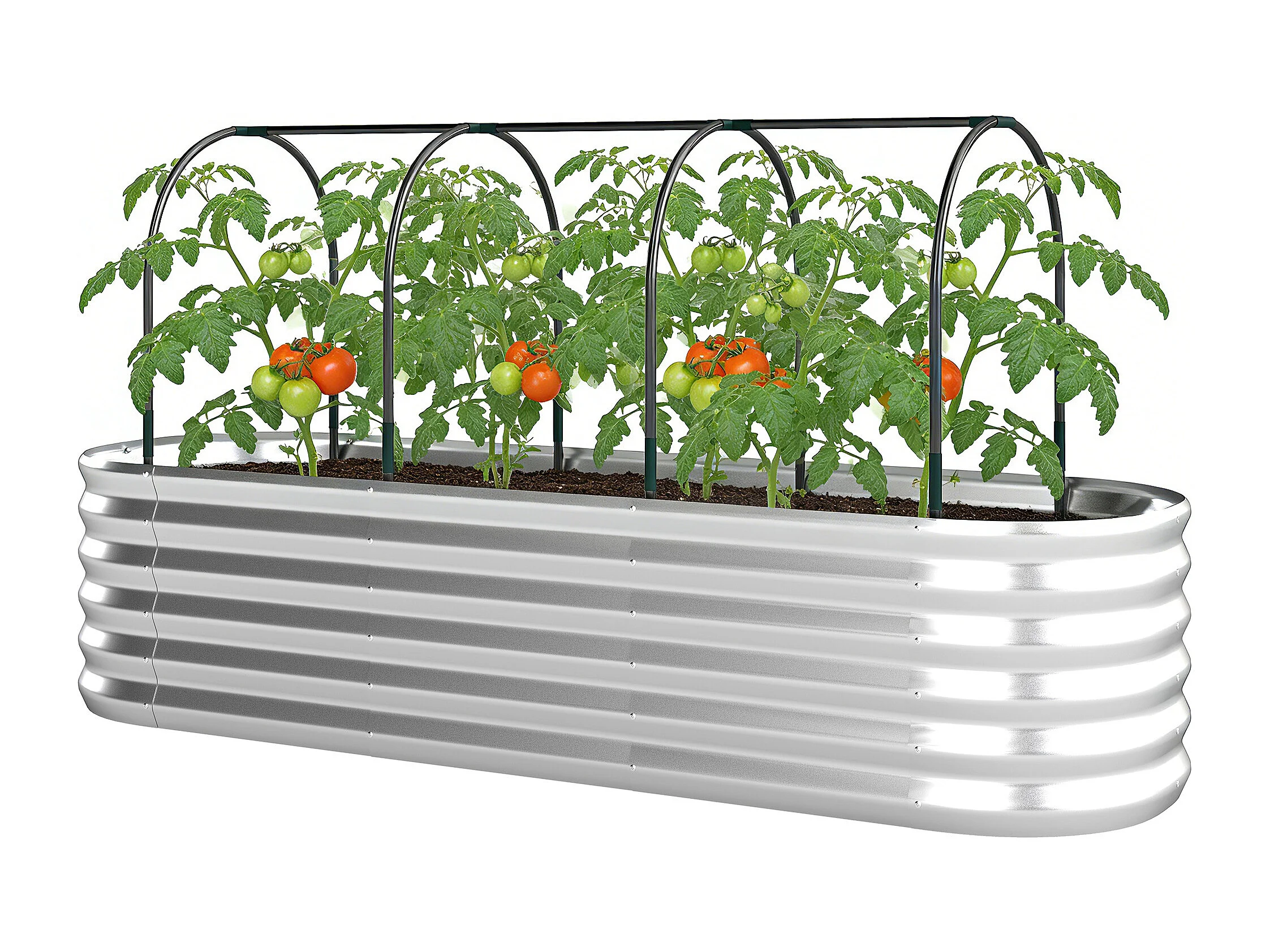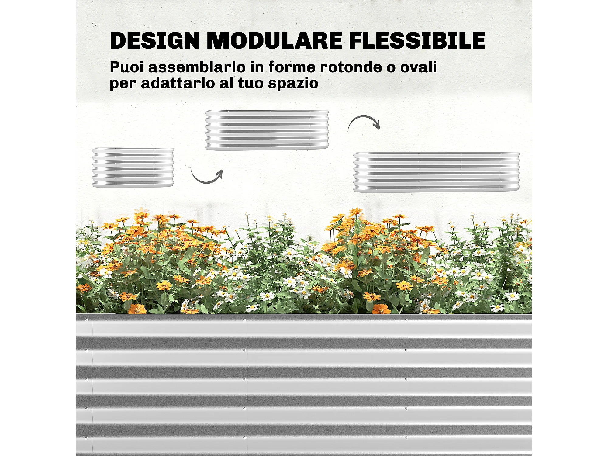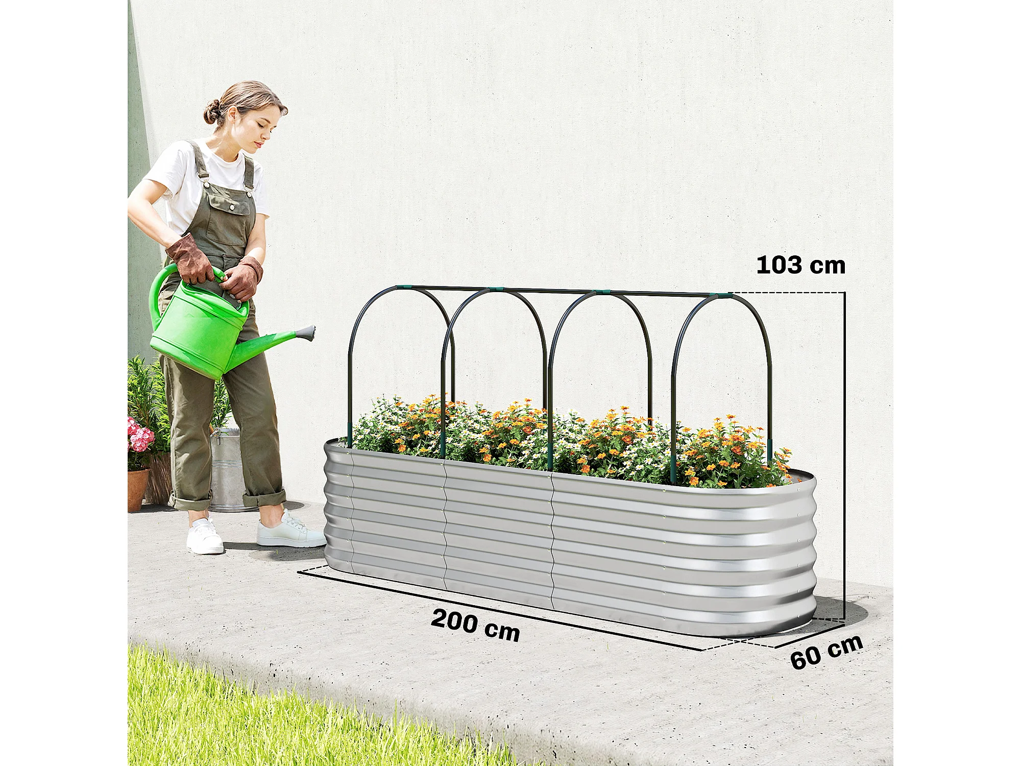 Orto rialzato con graticcio e serra in acciaio colore argento