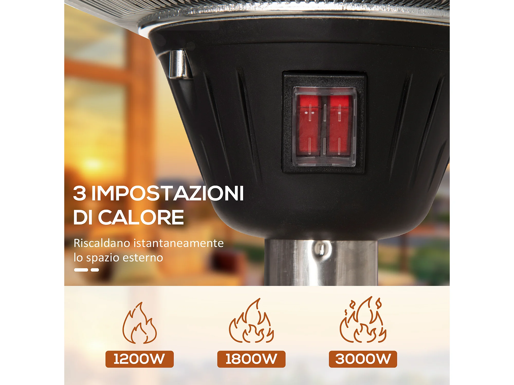 Outsunny Fungo Riscaldante da Esterno con 3 Temperature fino 3000W, Stufa a Infrarossi con Altezza Regolabile in Acciaio e Alluminio, Argento