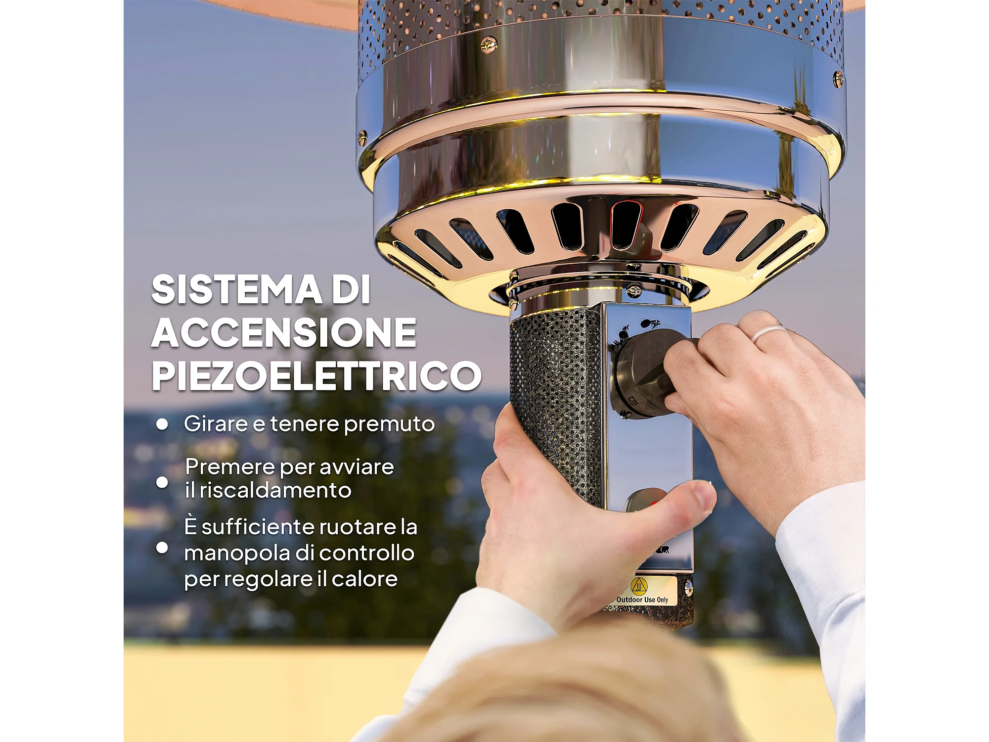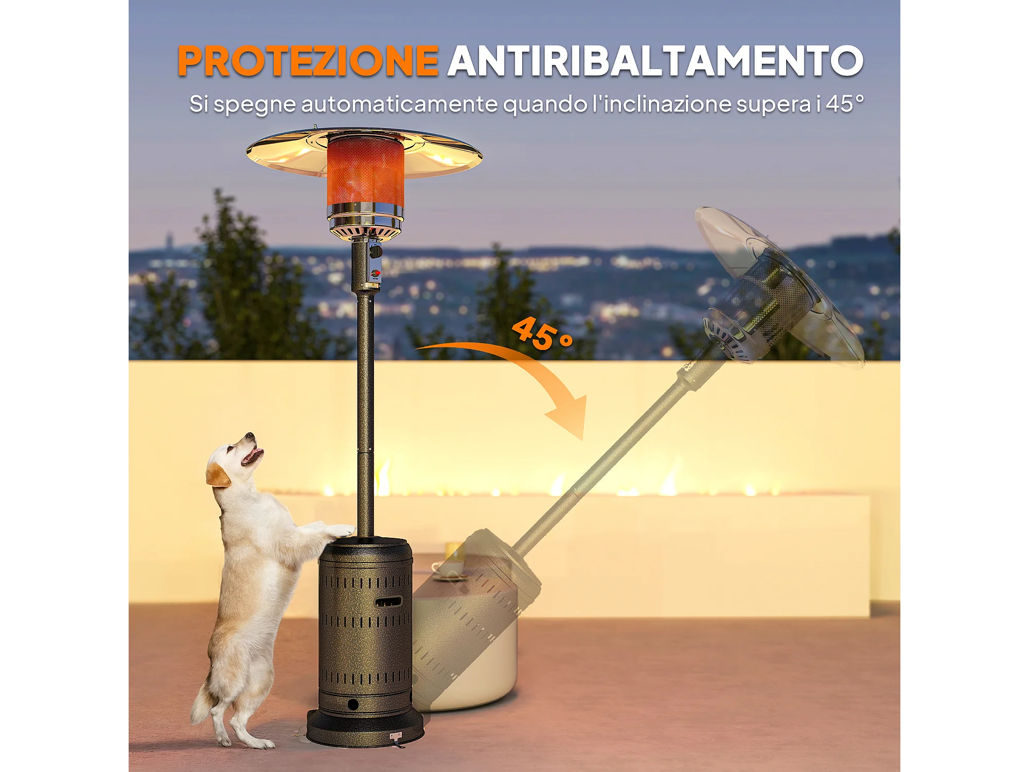 Outsunny Stufa a Gas/Propano da Esterno 11kw, con Spegnimento Automatico e Rotelle, Riscaldatore da Esterno Portatile, 82x82x223 cm