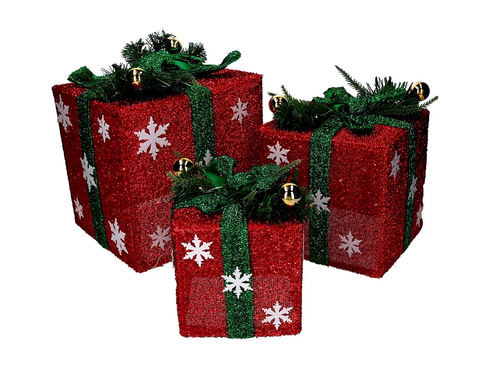 Pacco regalo fiocchi di neve 1-3 verde e rosso cm 25x25h30